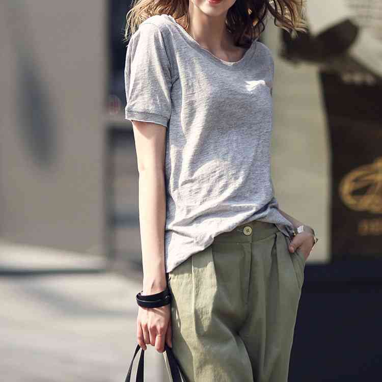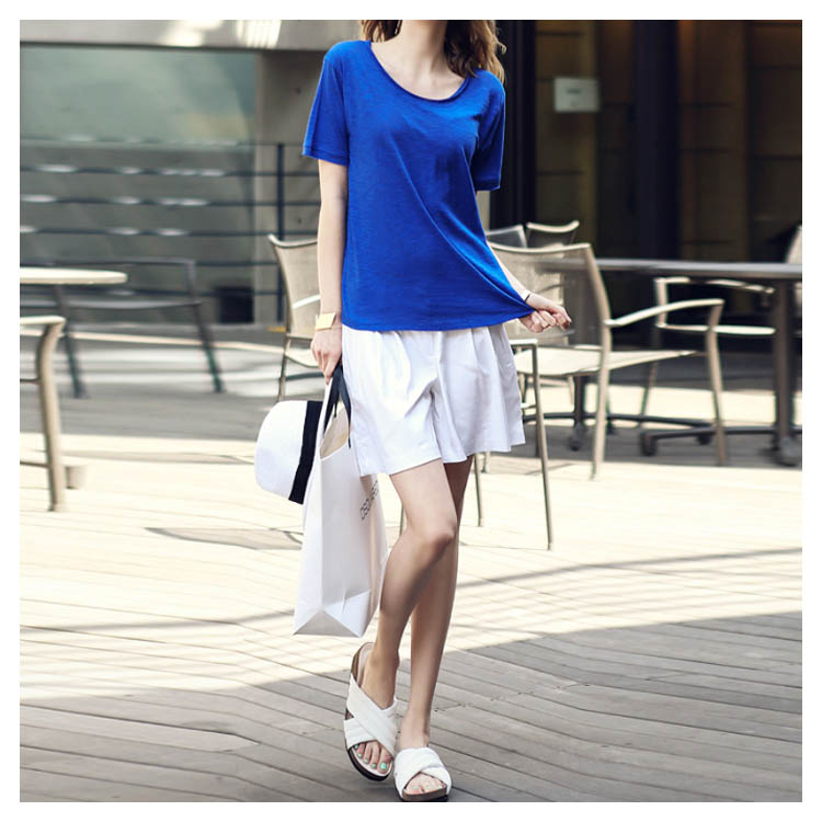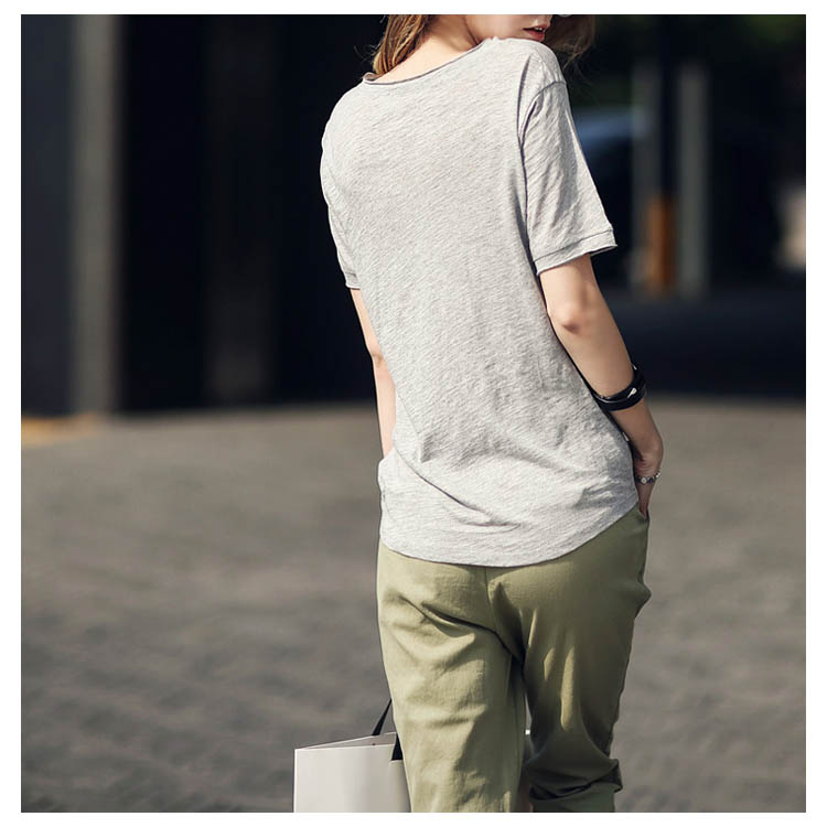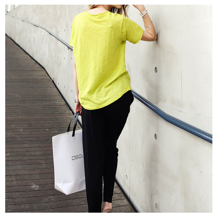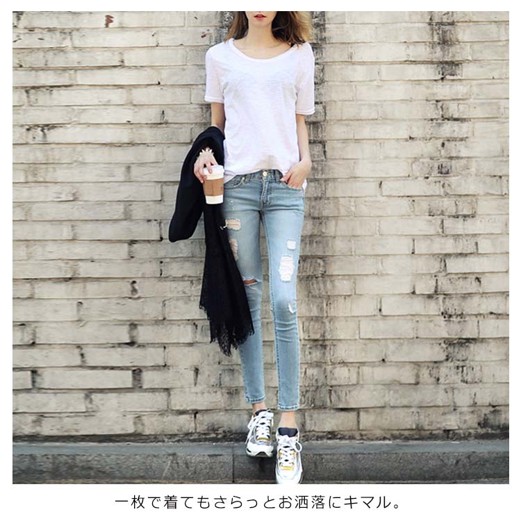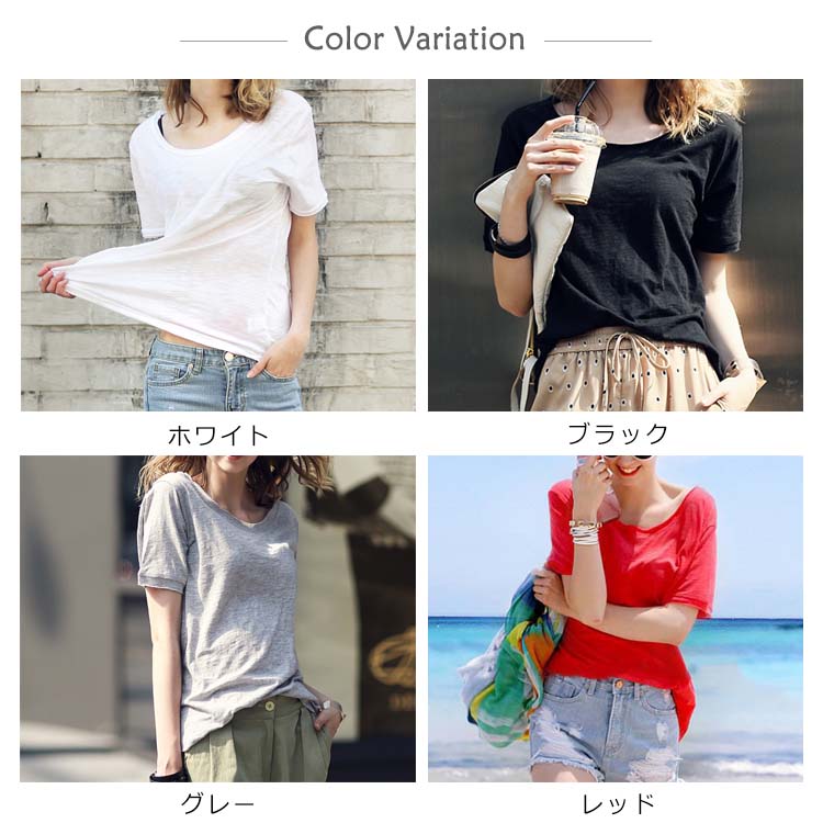 Tシャツ カットソー ラウンドネック トップス レディース ゆったり シンプル 無地 半袖 夏服 コットン 夏物