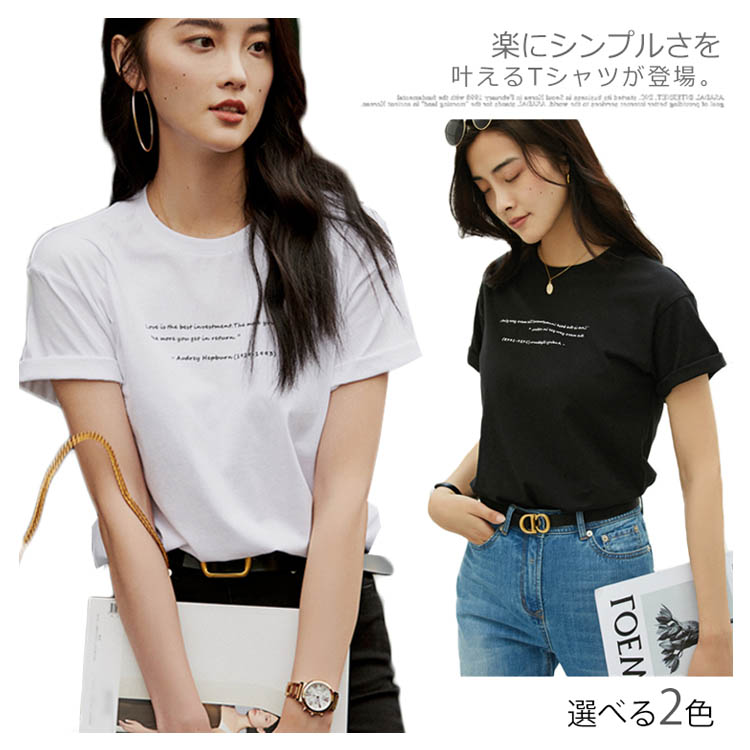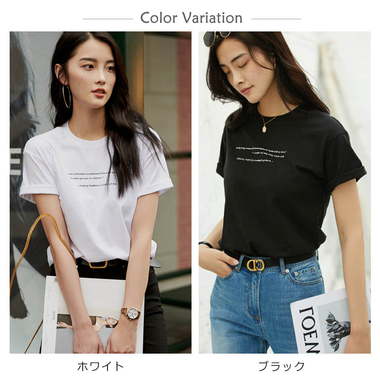 Tシャツ カットソー ラウンドネック トップス レディース ゆったり シンプル 無地 半袖 夏服 コットン 夏物 ホワイト ブラック
