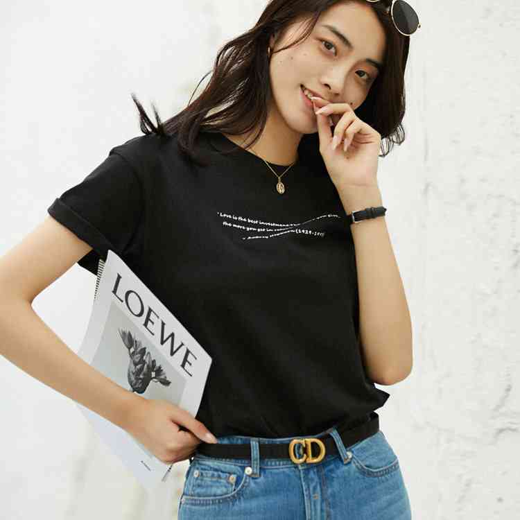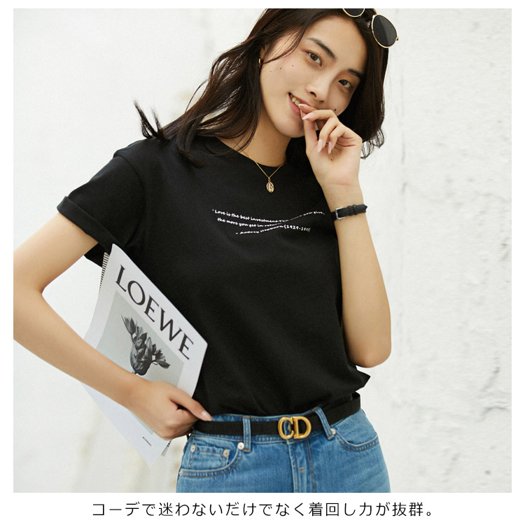 | 楽にシンプルさを叶えるTシャツが登場。 さらっとしたコットン生地は素肌に触れても心地よくご着用いただけます。 シンプルなプリントで女子のお洒落にキマル。 コルテラインは、開きすぎず狭すぎない女性らしいデザイン。 コーデで迷わないだけでなく着回し力が抜群。 | |
