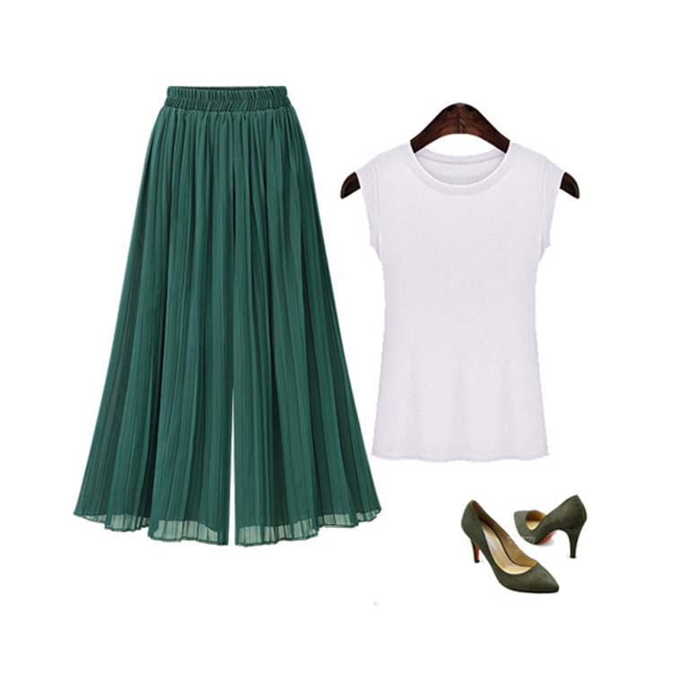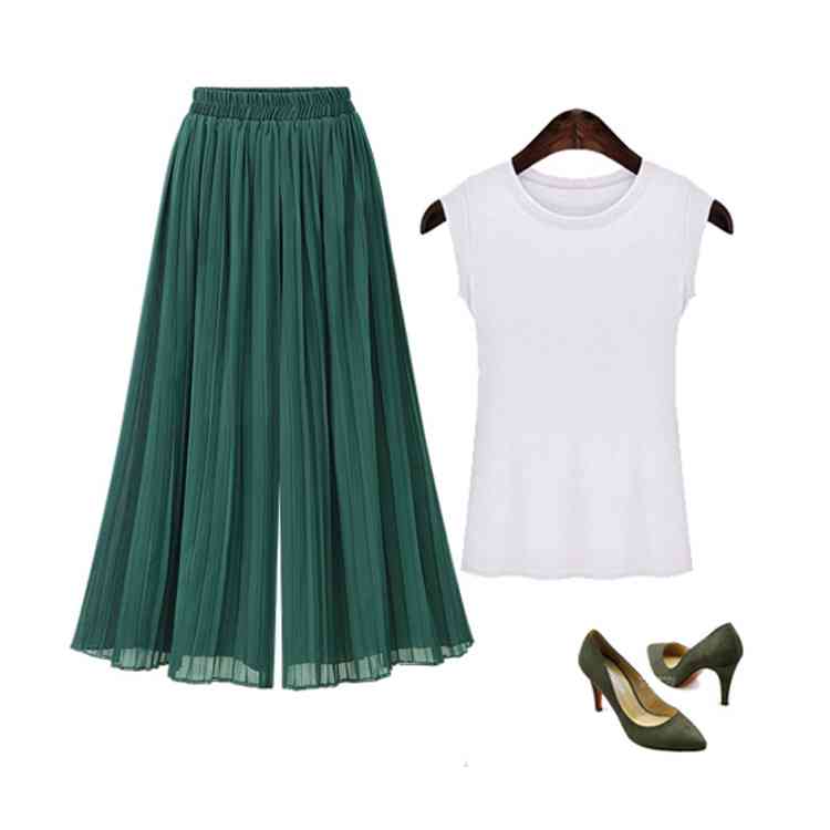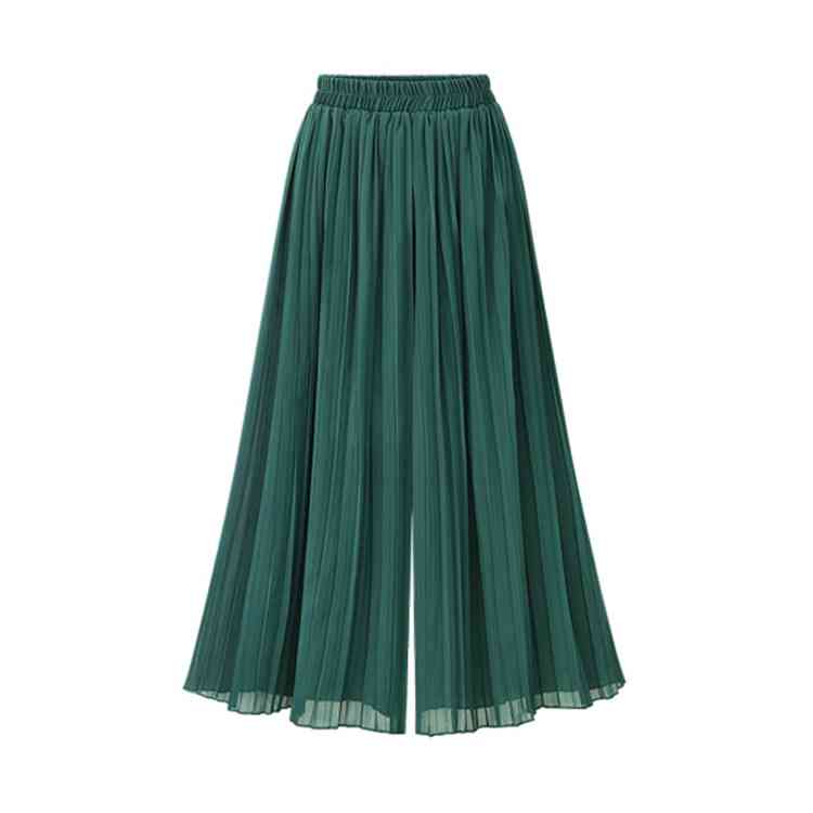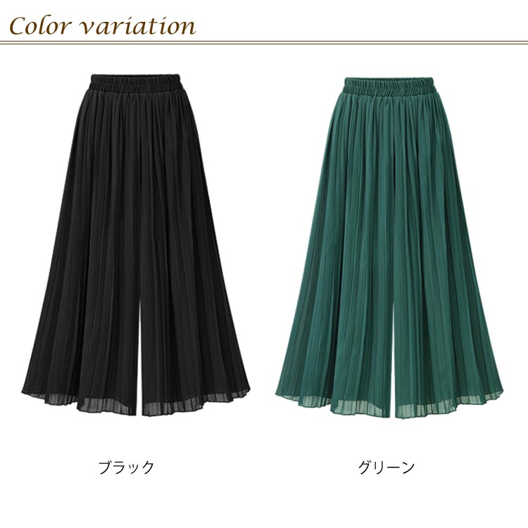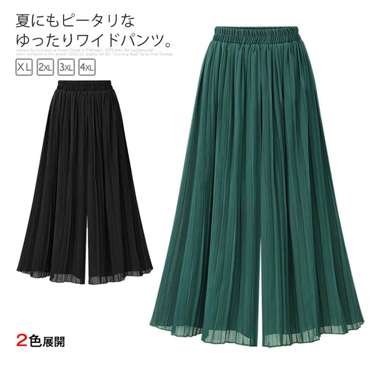 【XL-4XL】ワイドパンツ シフォンパンツ ボトムス レディース ロングパンツ プリーツパンツ ゆったり 大きいサイズ 体型カバー 夏服 シフォン グリーン ブラック
