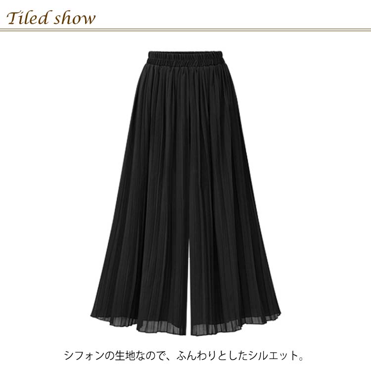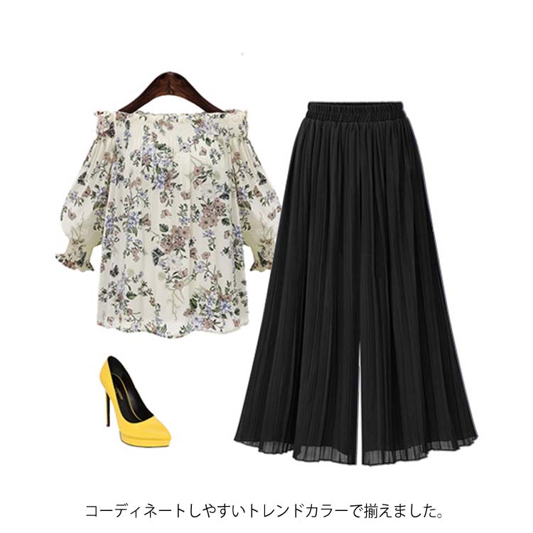 | 夏にもピータリなゆったりワイドパンツ。 シフォンの生地なので、ふんわりとしたシルエット。 スカートよりも楽に履ける人気のデザインです。 コーディネートしやすいトレンドカラーで揃えました。 | |