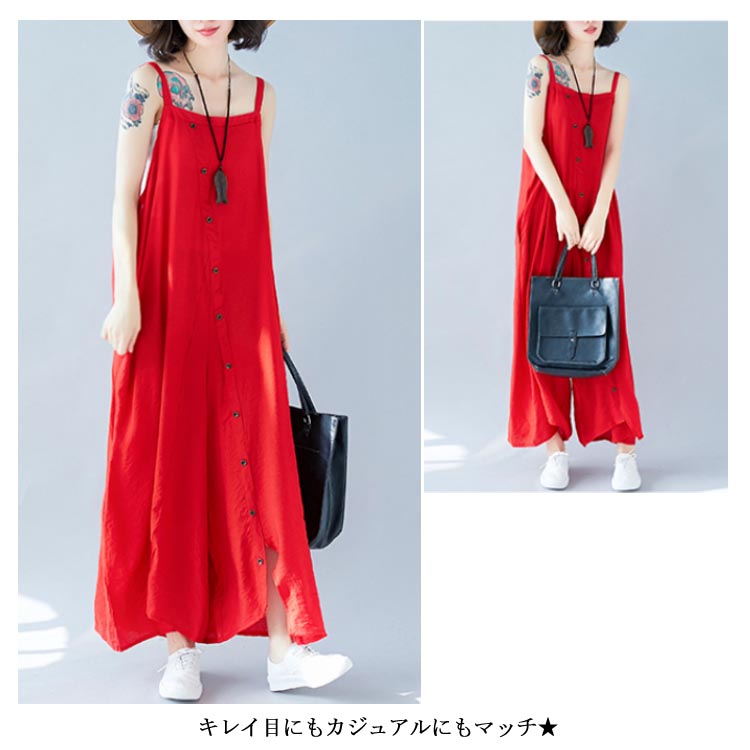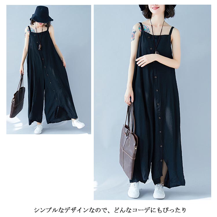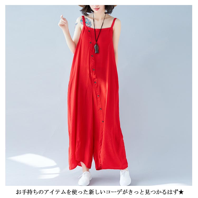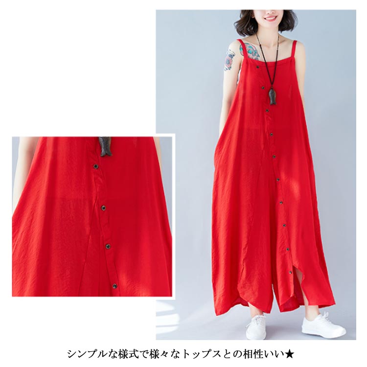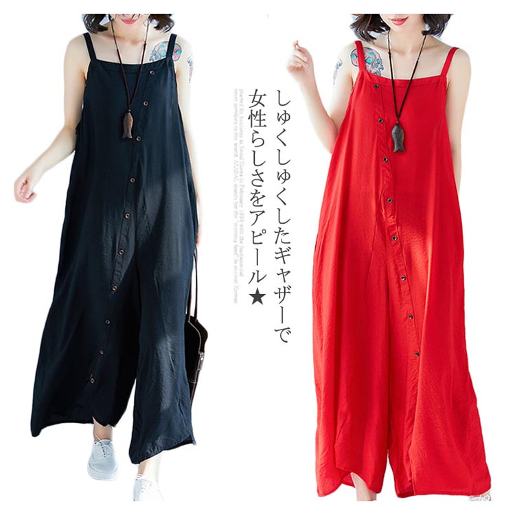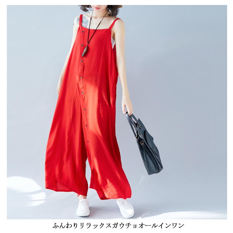 送料無料 サロペット レディース ガウチョパンツ オールインワン ガウチョオールインワン ロングパンツ マキシ丈 ポケット付き ゆったり お洒落 カジュアル リゾート リラックス 重ね着 体型カバー ボトムス 夏新作