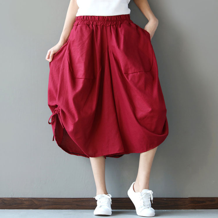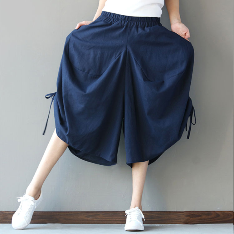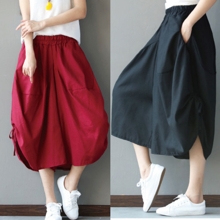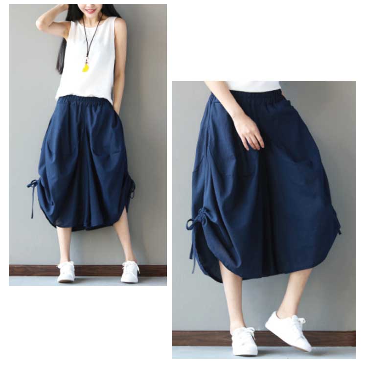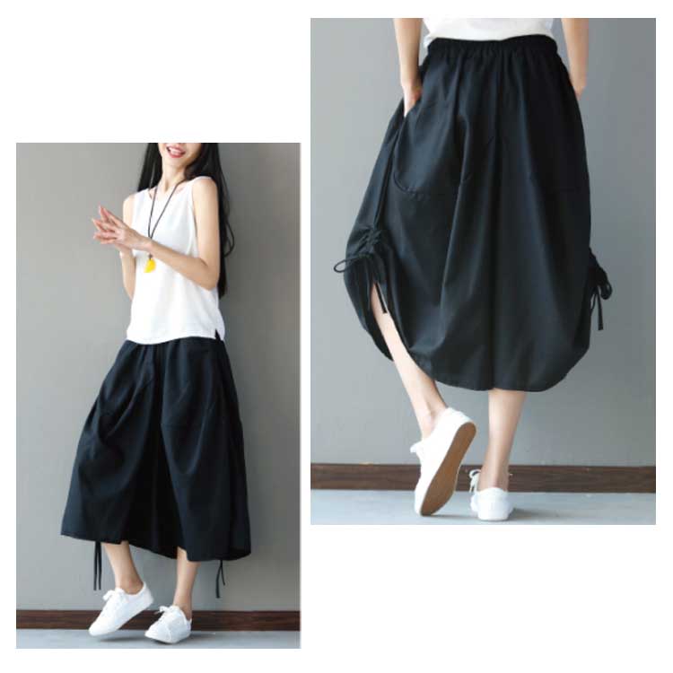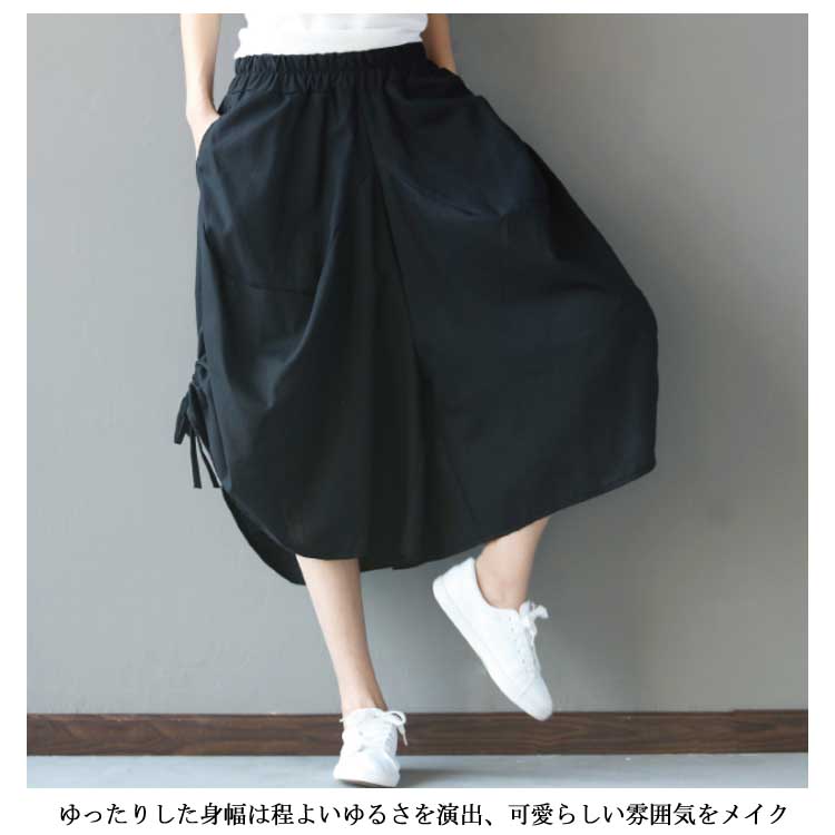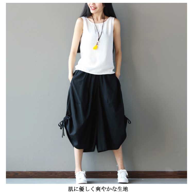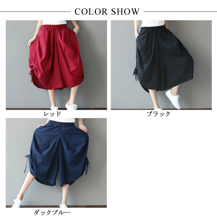 送料無料 ガウチョパンツ レディース ワイドパンツ フレアパンツ 七分丈パンツ ゆるパンツ 無地パンツ ポケット付き ボタン付き ハイウエスト ゴム入り ゆったり リラックス カジュアル キレイめ お洒落 体型カバー 着痩せ ボトムス 春物 夏物 夏新作