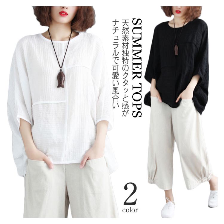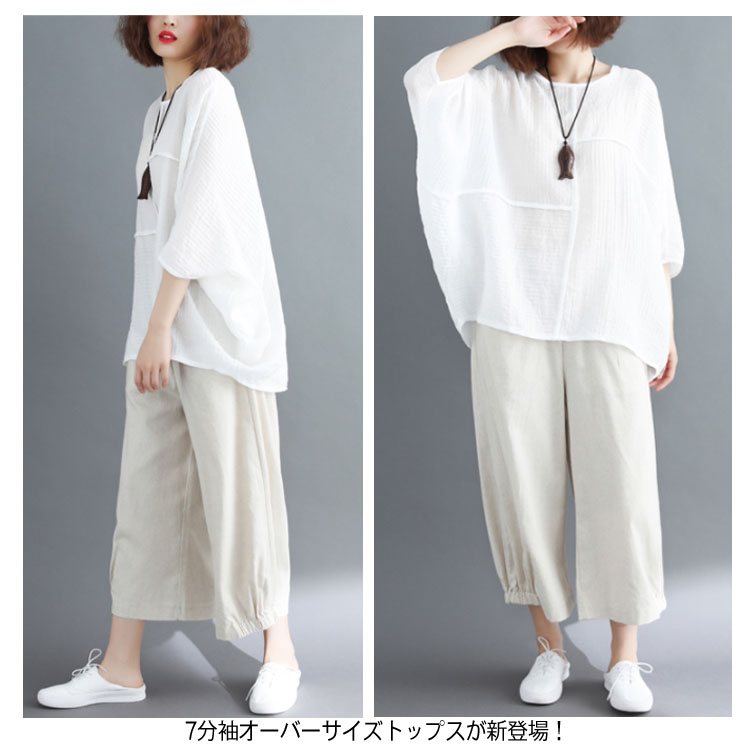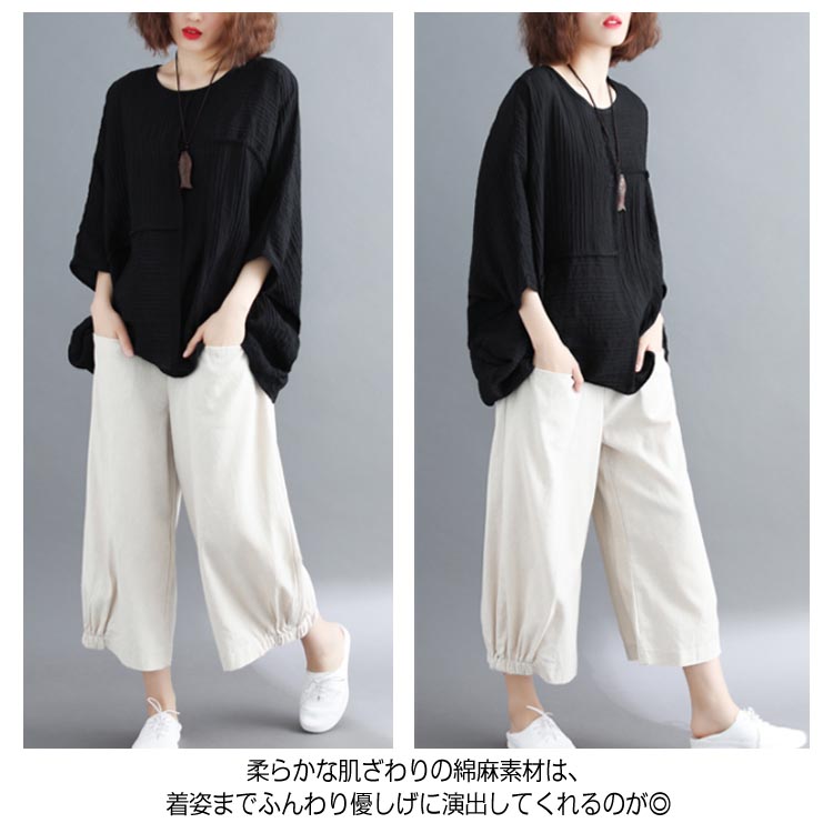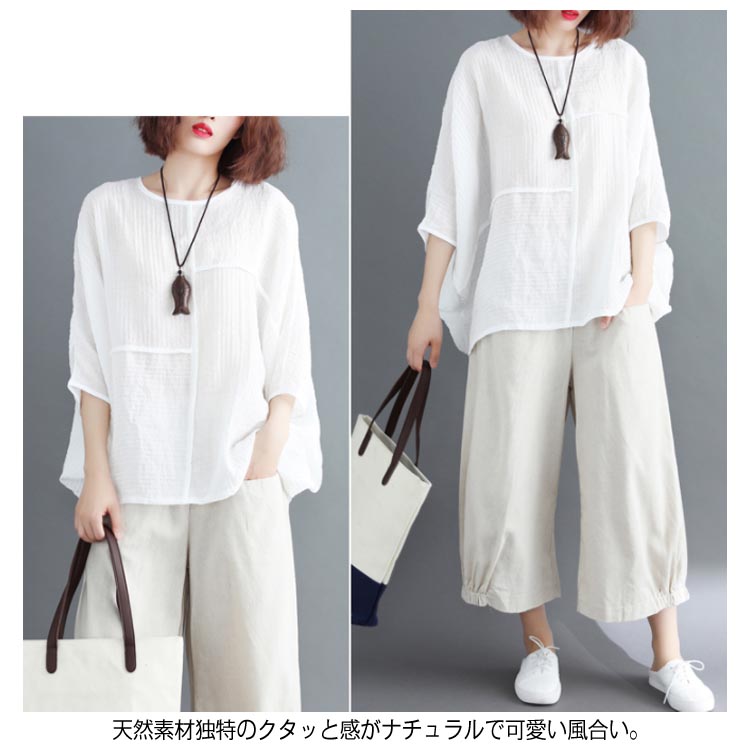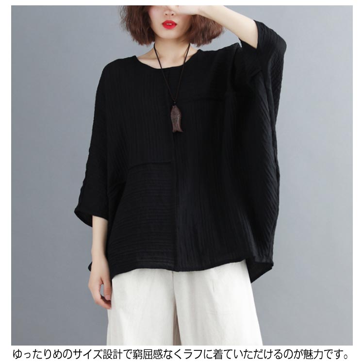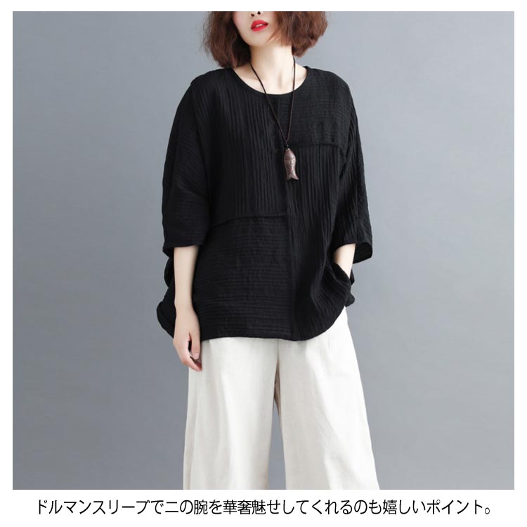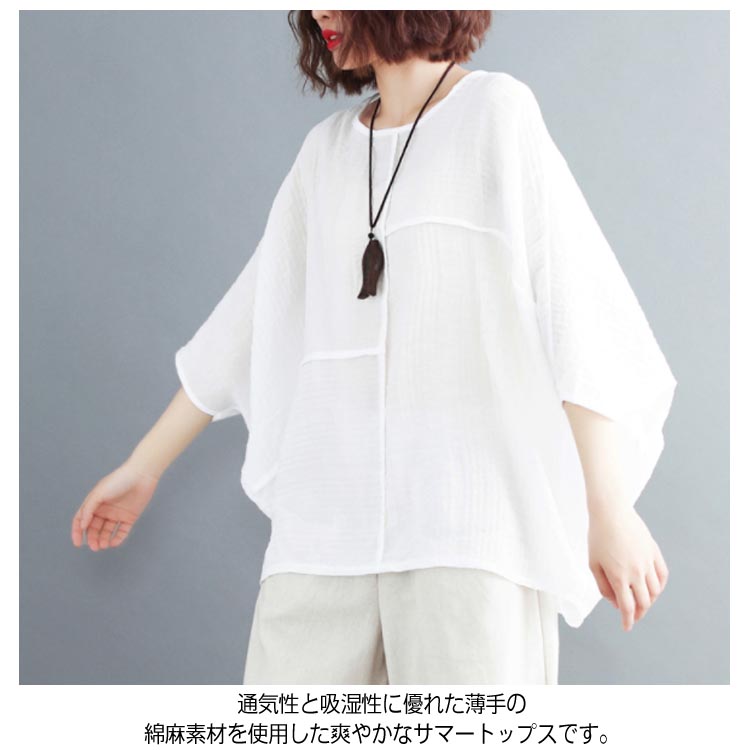 ドルマンスリーブ シャツ 七分袖 Tシャツ トップス リネンシャツ 7分袖 綿麻 シャツ Tシャツ リネン シャツ ナチュラル ゆったり レディース オーバーサイズ トップス
