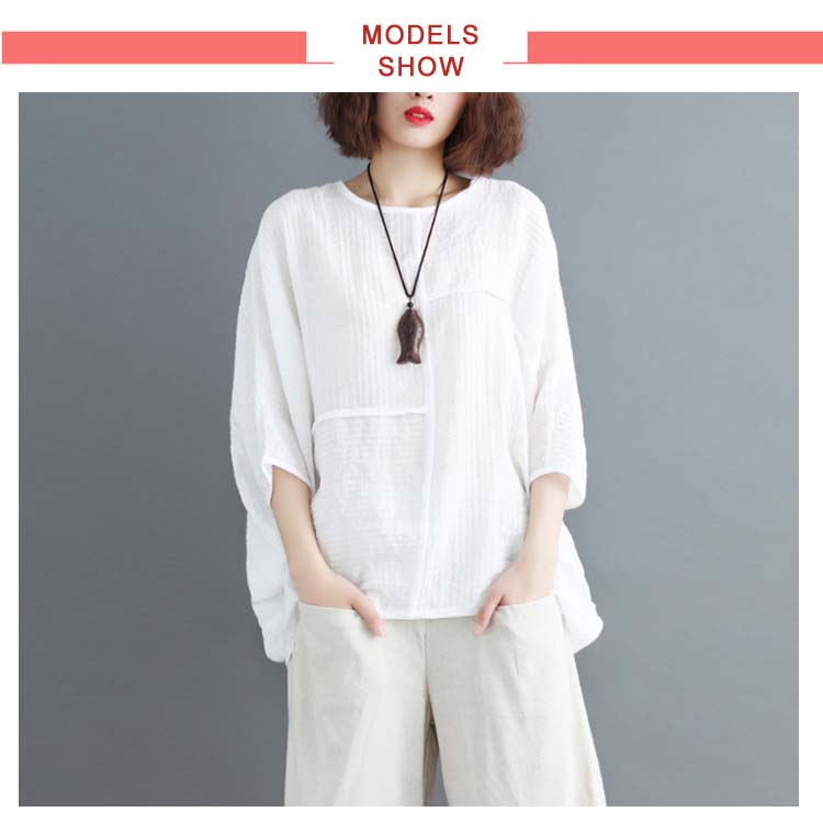 | 7分袖オーバーサイズトップスが新登場! 通気性と吸湿性に優れた薄手の綿麻素材を使用した爽やかなサマートップスです。 天然素材独特のクタッと感がナチュラルで可愛い風合い。 ゆったりめのサイズ設計で窮屈感なくラフに着ていただけるのが魅力です。 | |
