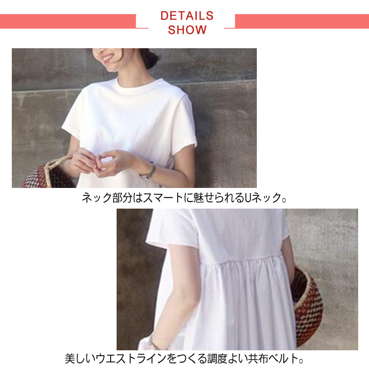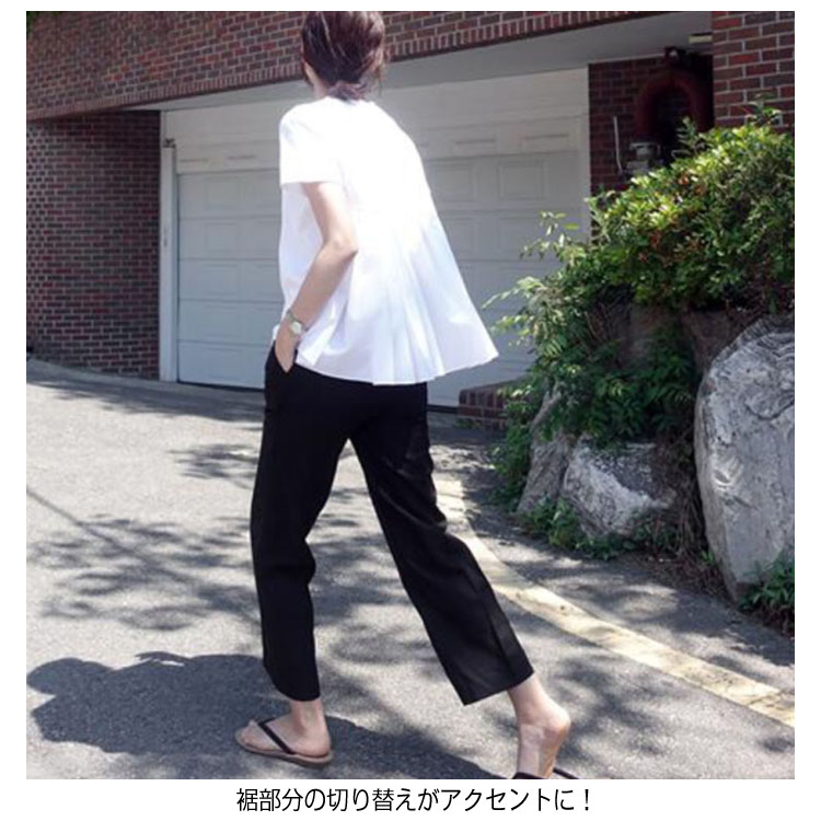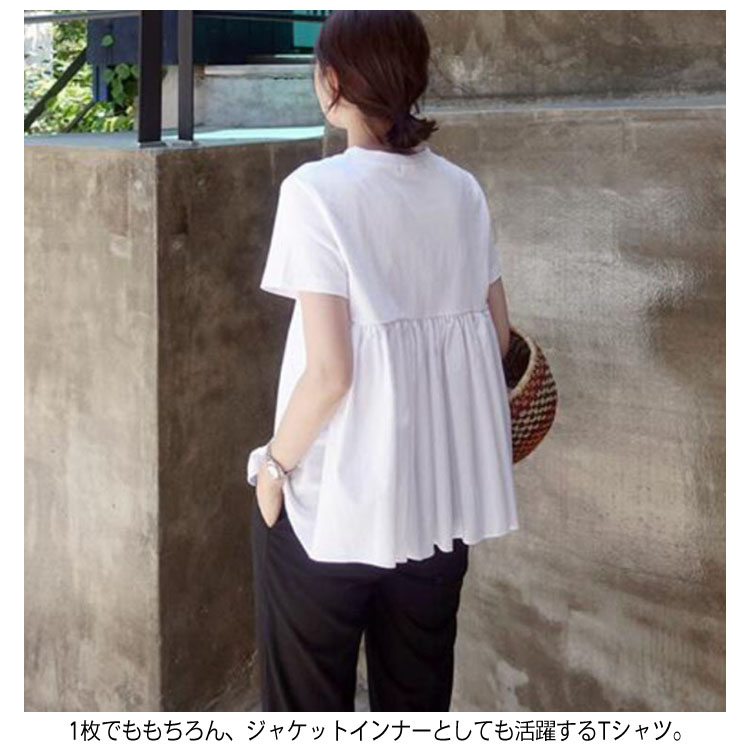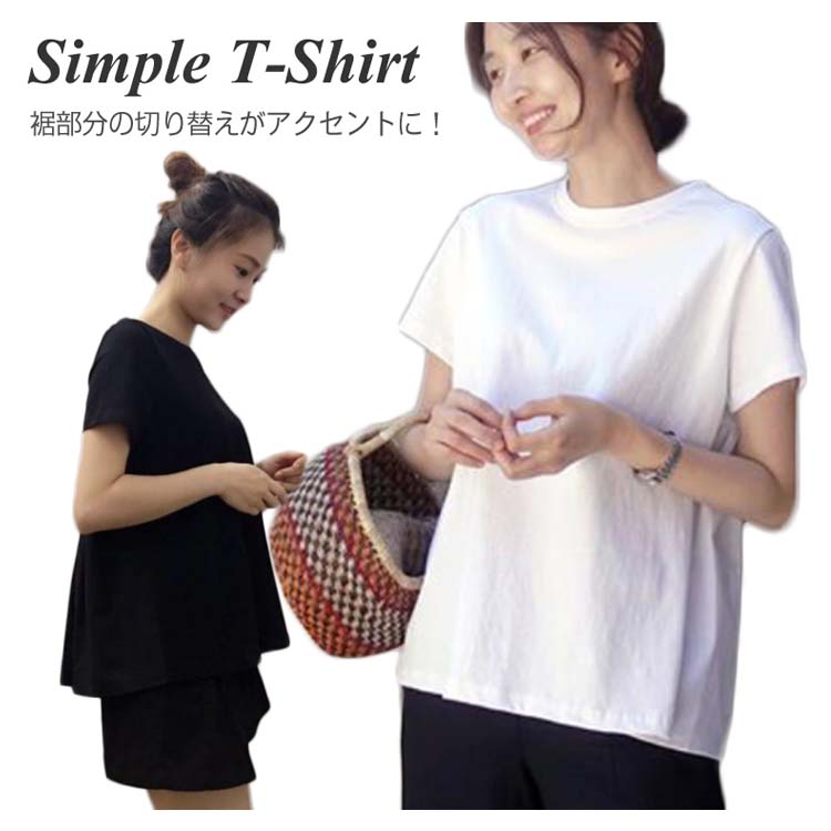 裾切り替え Tシャツ 半袖 Tシャツ トップス ブラウス レディース クールネック Tシャツ Uネック 半袖Tシャツ 無地 Tシャツ シンプル ベーシック Tシャツ 春夏 韓国ファッション