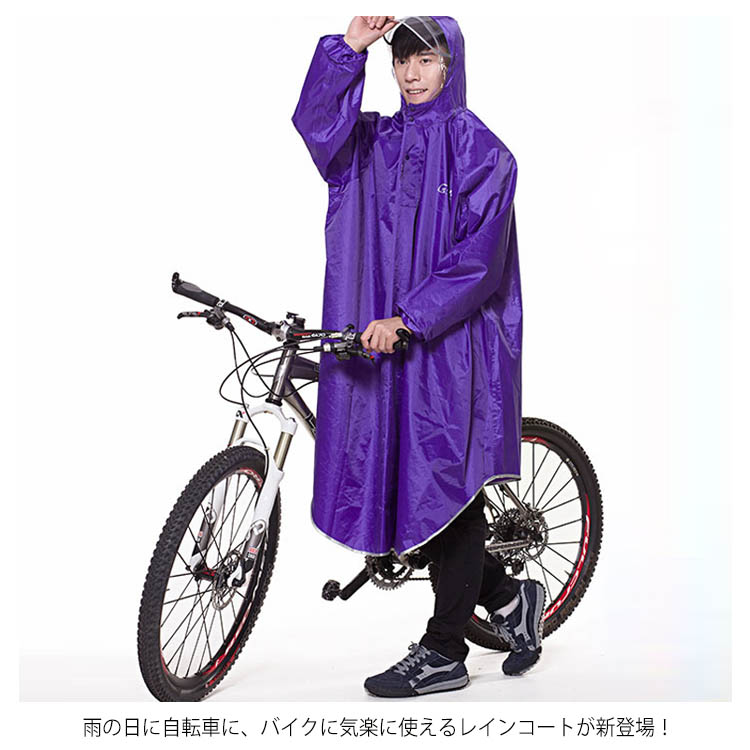 | 雨の日に自転車に、バイクに気楽に使えるレインコートが新登場! 柔らかくて通気性に優れた素材で快適な着心地! 突然の雨でも安心!さっと着れる!さっと脱げる!携帯にも便利! | |