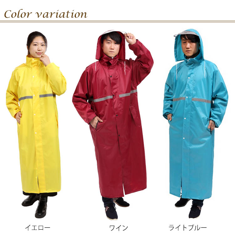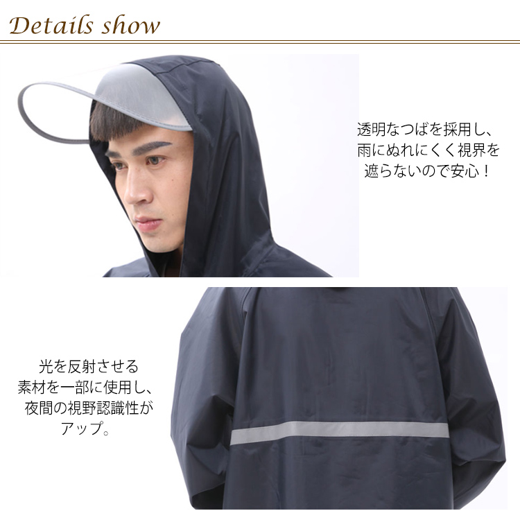 | 雨の日に自転車に、バイクに気楽に使えるレインコートが新登場! 透明な大きめのつばを採用し雨にぬれにくく視界を遮らないので自転車も安全に運転できます。 柔らかくて通気性に優れた素材で快適な着心地! 突然の雨でも安心!さっと着れる!さっと脱げる!携帯にも便利! | |