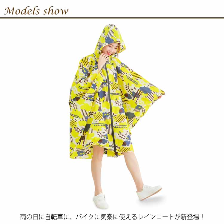 | 雨の日に自転車に、バイクに気楽に使えるレインコートが新登場! 柔らかくて通気性に優れた素材で快適な着心地! 突然の雨でも安心!さっと着れる!さっと脱げる!携帯にも便利! | |