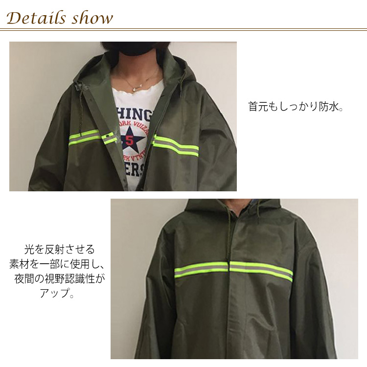 | 男女兼用レインコートが新登場! 柔らかくて通気性に優れた素材で快適な着心地! 突然の雨でも安心!さっと着れる!さっと脱げる!携帯にも便利! | |