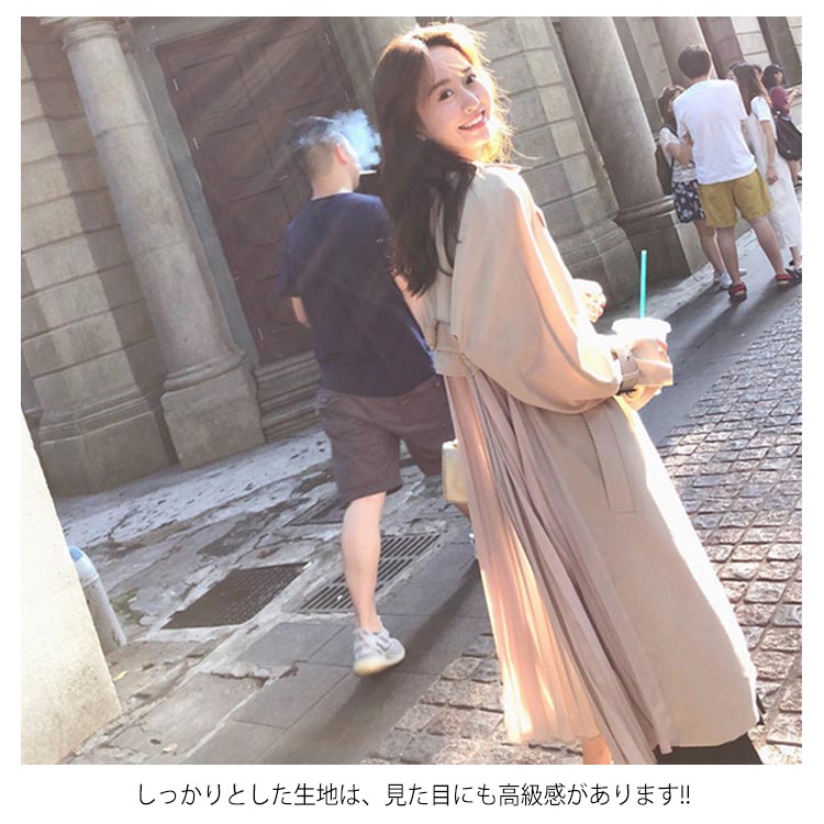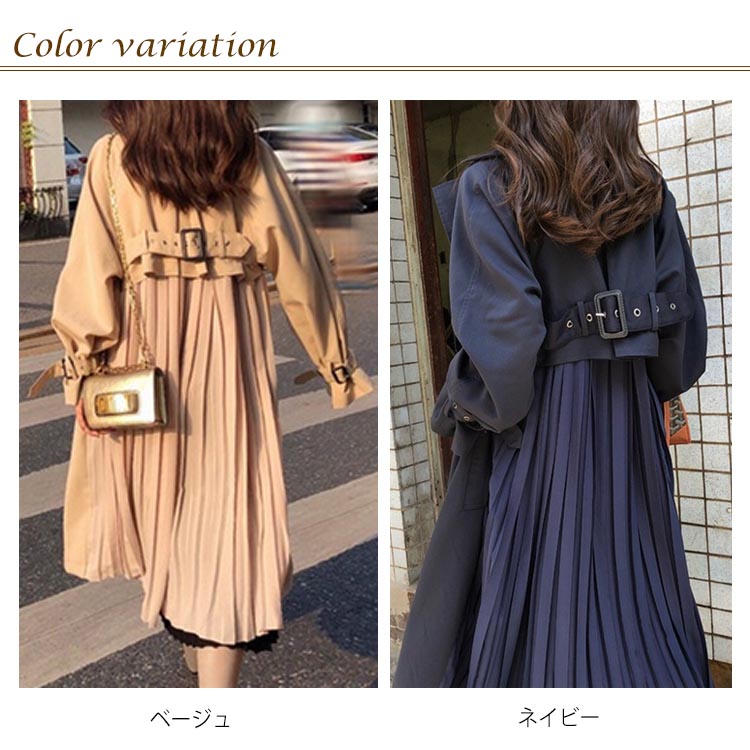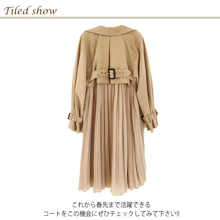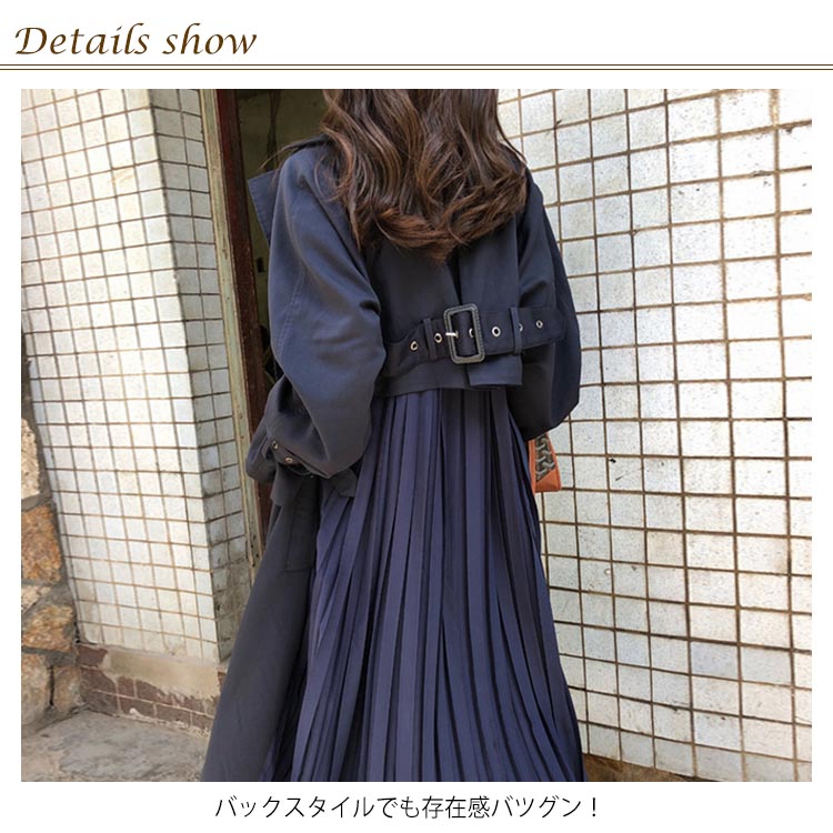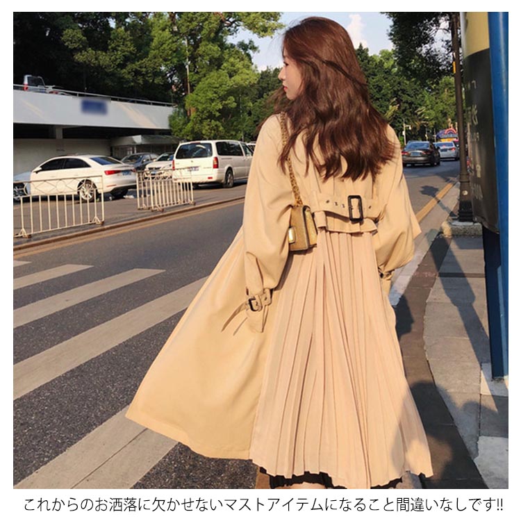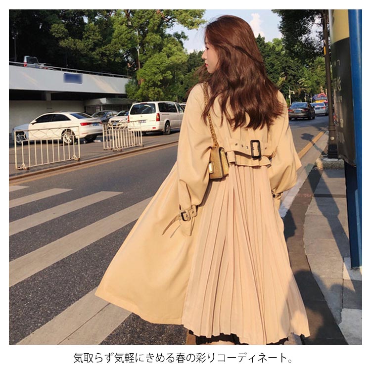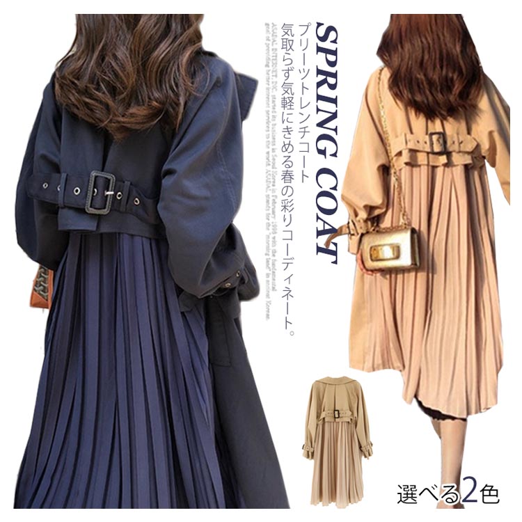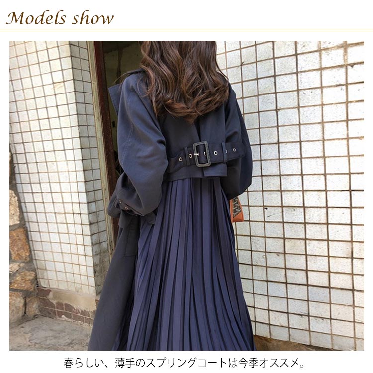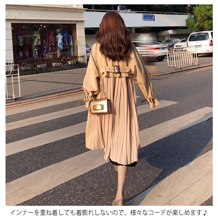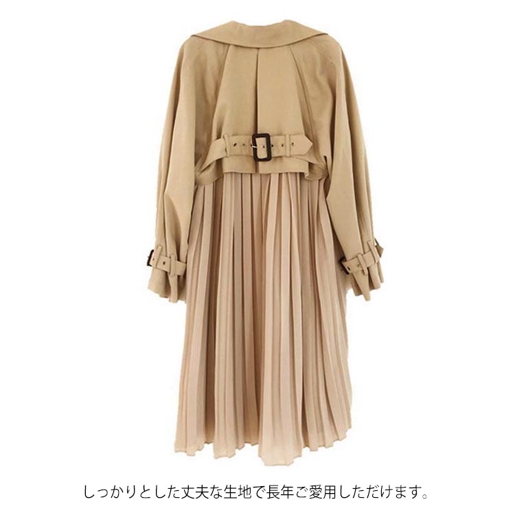 プリーツトレンチコート スプリングコート バックプリーツ トレンチコート ロング丈 レディース ロングコート 春 ジャケット コート アウター 大人 カジュアル 春 秋