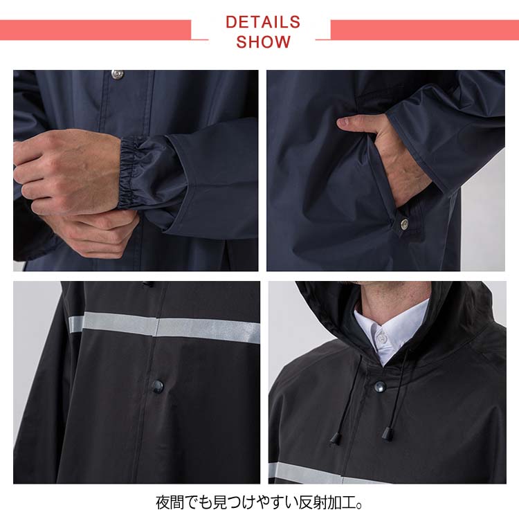 | レディースメンズ兼用のレインコートです。 撥水加工で、雨や風からしっかりガードします。 雨の日だっておしゃれにアウトドアを楽しもう! 突然の雨でも安心!さっと着れる!さっと脱げる!携帯にも便利! | |