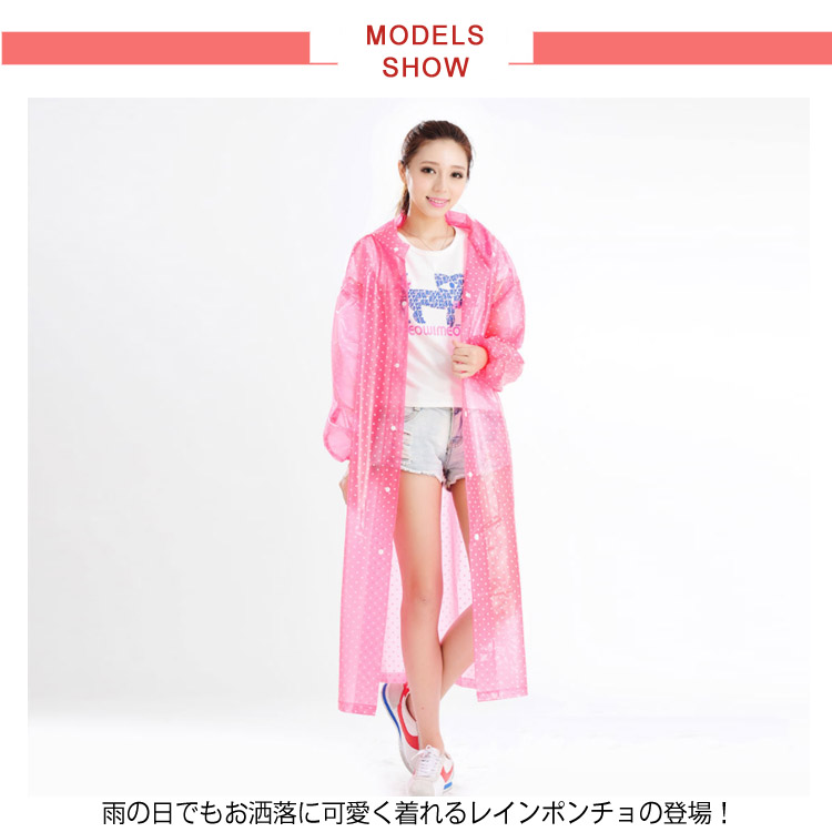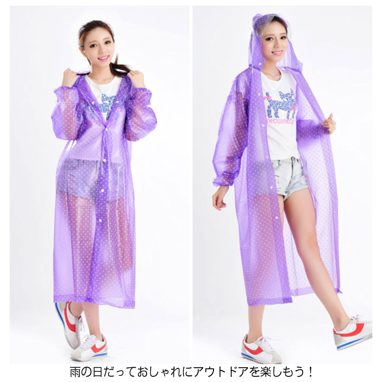 | 雨の日でもお洒落に可愛く着れるレインポンチョの登場! クリアタイプなので重たい印象にならず涼しげ♪ 撥水加工で、雨や風からしっかりガードします。 雨の日だっておしゃれにアウトドアを楽しもう! | |