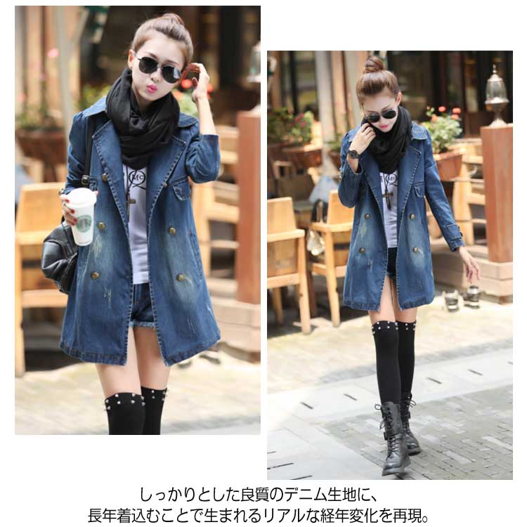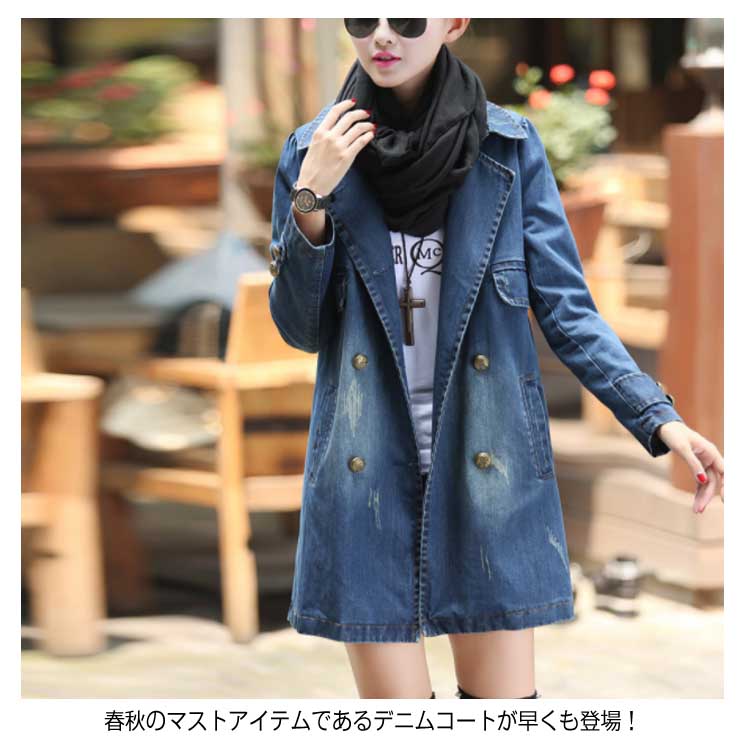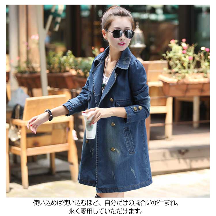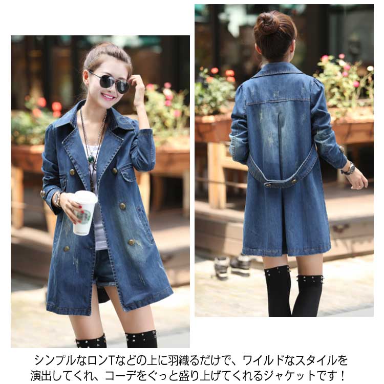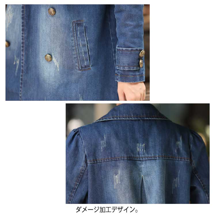 デニムコート レディース デニム トレンチコート スプリングコート Gジャン デニム ジャケット ロングコート チェスターコート カジュアル 秋 春 大人 上品
