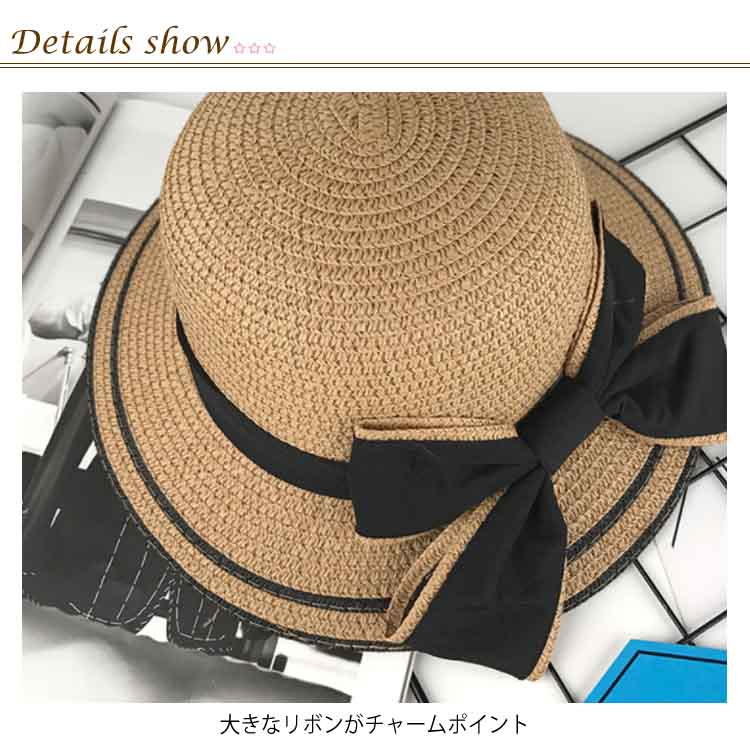 | リボンモチーフが大人可愛いつば広麦わら帽子。 大きめリボンがアクセントに◎ 夏らしい涼しげ素材でこれからの季節の日差し対策にイチオシのアイテムです♪ リボンで可愛らしさを演出していますので、何でも合わせるので街中でもリゾートでも素敵に決まります。 小さく丸めてバックに入れて持ち運べるから携帯便利! | |