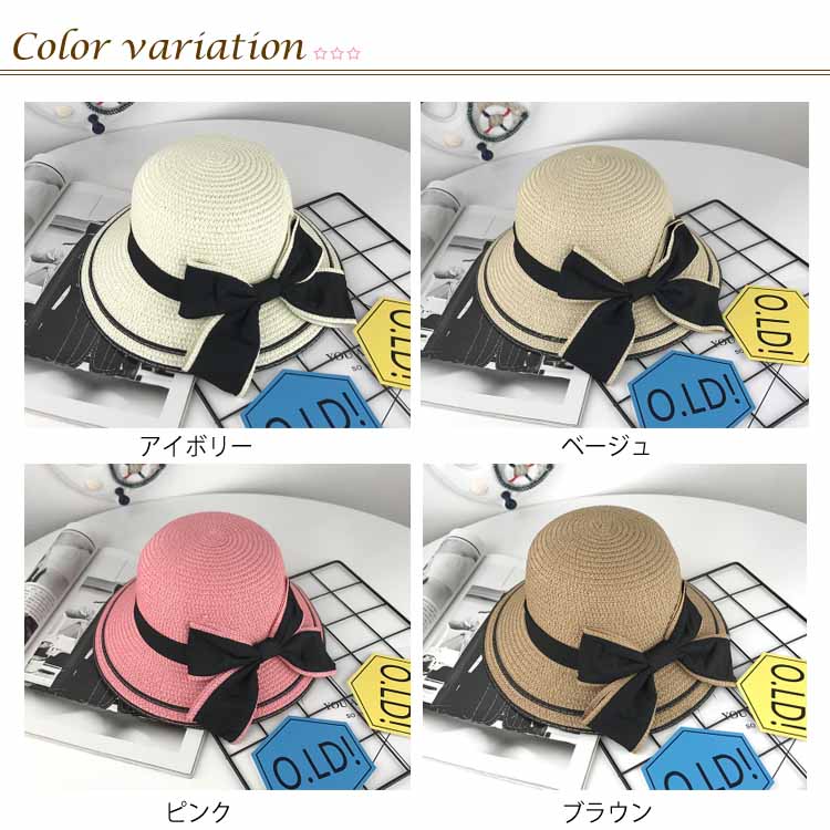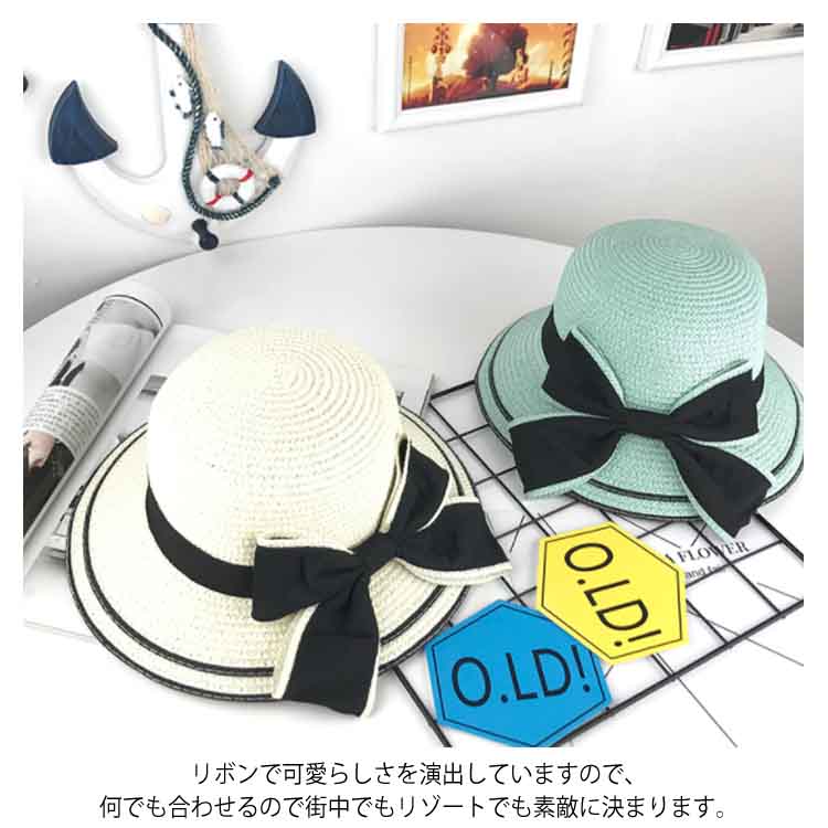 送料無料 親子ペアルック 麦わら帽子 帽子 つば広 ハット リボン キッズ レディース 日焼け防止 つば広帽 ストローハット ぼうし 帽子 uv対策 子供 夏 レジャー 海 リゾート 日差し対策 新作