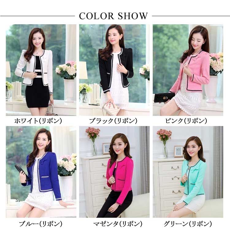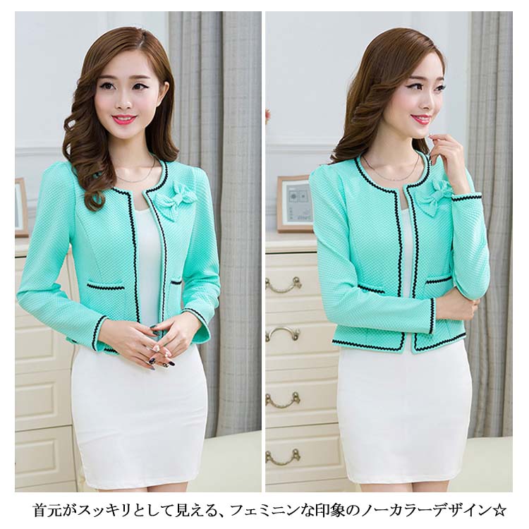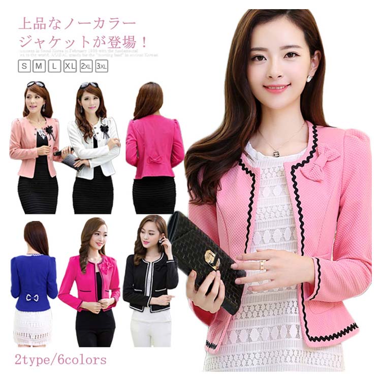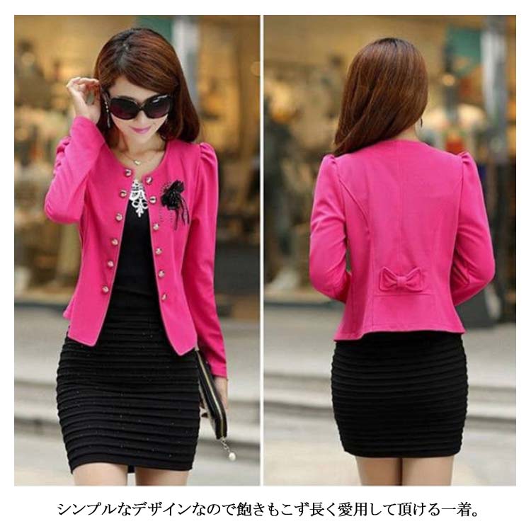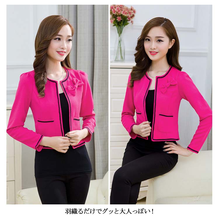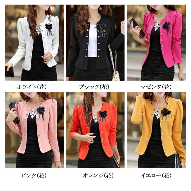 ノーカラー ジャケット レディース リボン コサージュ ジャケット スーツジャケット お宮参り 羽織 ショート丈 ジャケット テーラードジャケット ノーカラー ショートジャケット