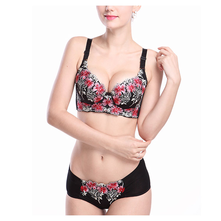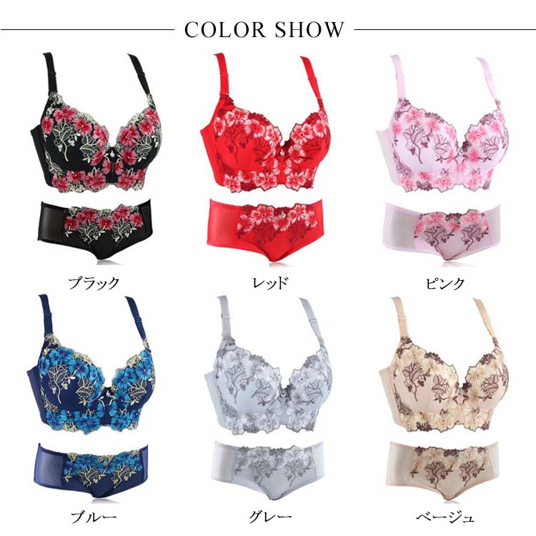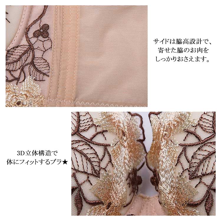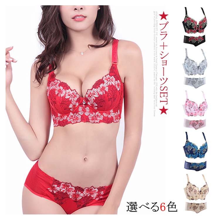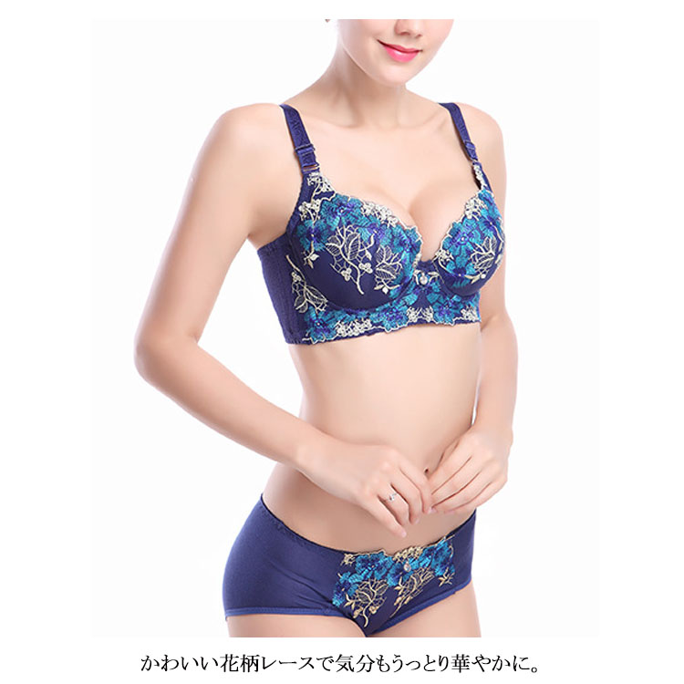 ブラ&ショーツセット ブラジャー ワイヤー入り 3/4カップ 谷間メイク ブラ ブラジャー 脇肉 谷間 美胸 脇高 脇高ブラ バストアップ 補正 花柄 レース アンダーウエア ブラショーツ 美バスト ショーツ セット 下着