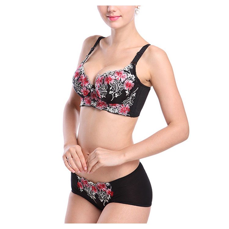 | ★ブラ+ショーツSET★ 背中のぶよ肉・バストの下垂れ・貧乳・脇のハミ肉などの女性の悩みを一気に解決するなブラが登場♪ バストの型崩れを防ぎ、美しい形をキープすることができるブラジャー。 前中心を低く設定することで、谷間のきれいな盛り胸を演出。 かわいい花柄レースで気分もうっとり華やかに。 | |