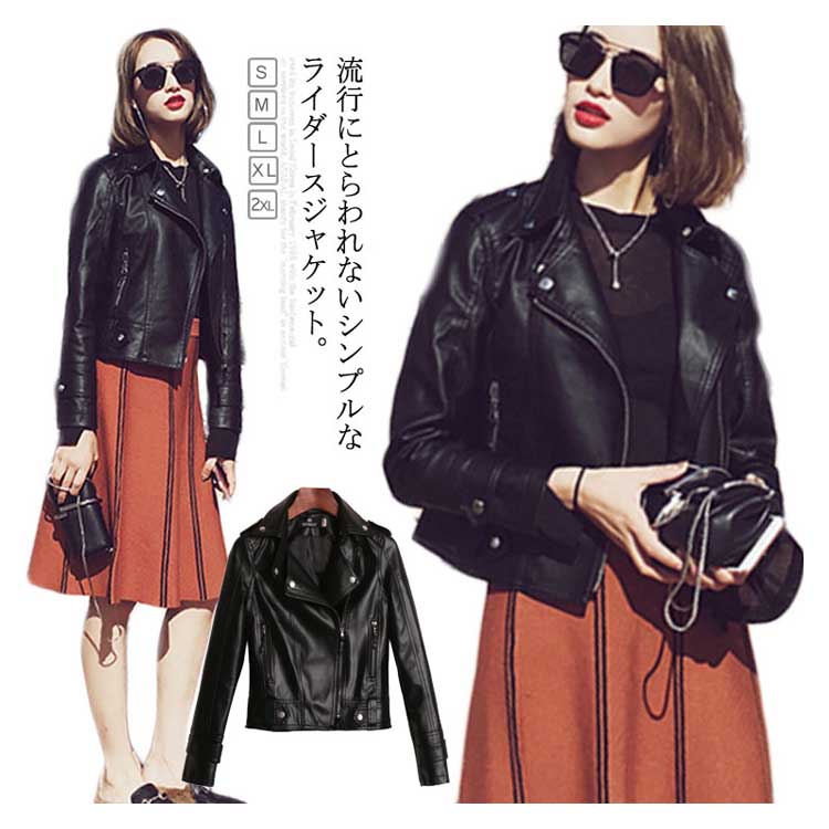 レディース PU レザージャケット ライダースジャケット PU レザー フェイクレザー ジャケット ショット丈 長袖 ジャケット