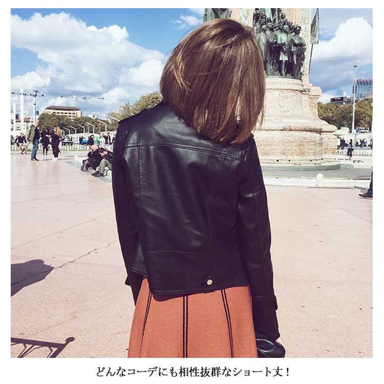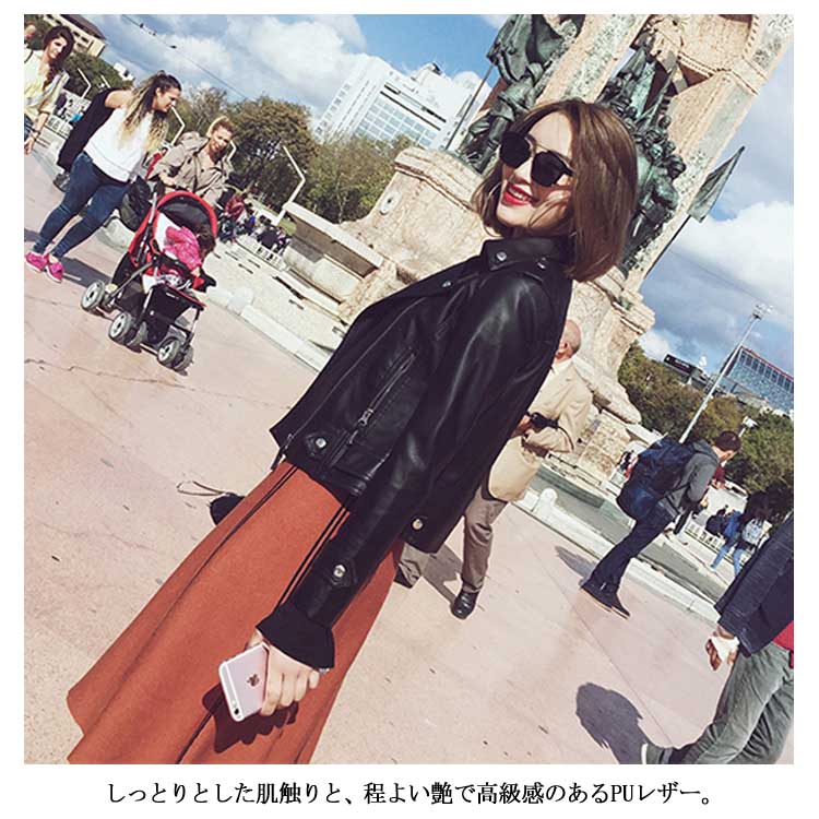 | 流行にとらわれないシンプルなライダースジャケット。 しっとりとした肌触りと、程よい艶で高級感のあるPUレザー。 どんなコーデにも相性抜群なショート丈! デイリーのコーデにプラスするだけでカッコ良くスタイルUP☆ COOLにキマる♪お出掛けスタイルの新定番!! | |