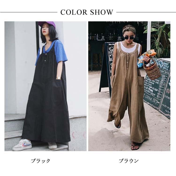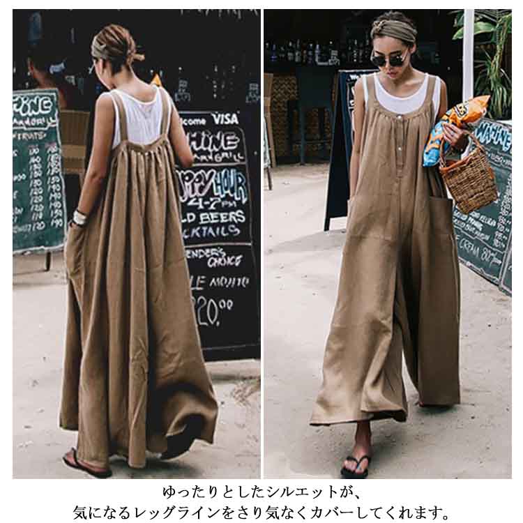 サロペットパンツ ワイドパンツ 綿麻 リネン サロペット オールインワン オーバーオール レディース オールインワン ガウチョパンツ 春夏 オーバーオール おしゃれ