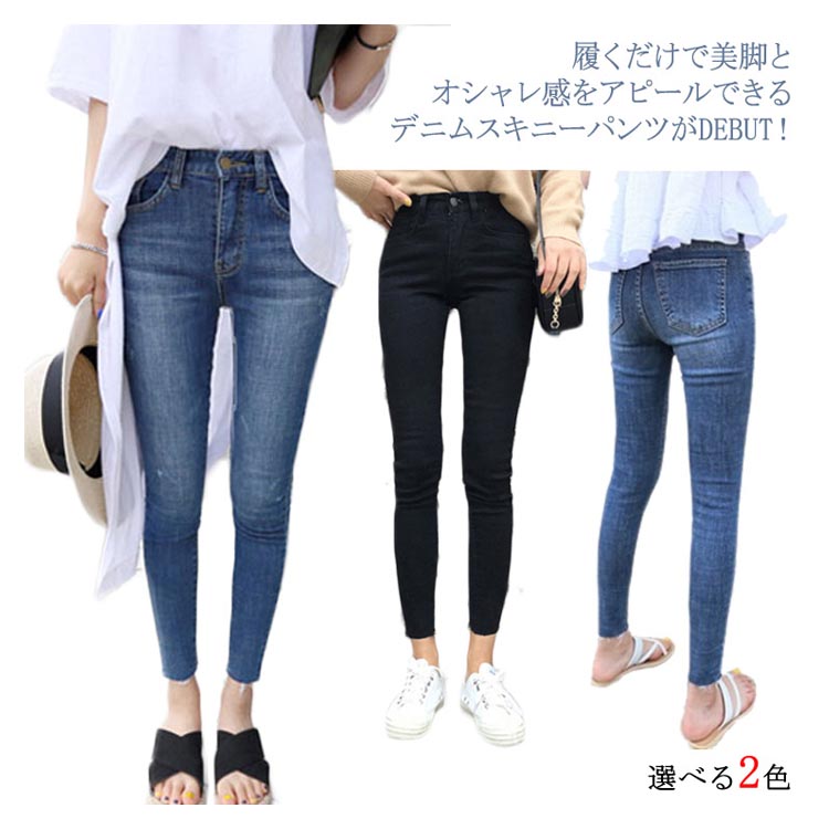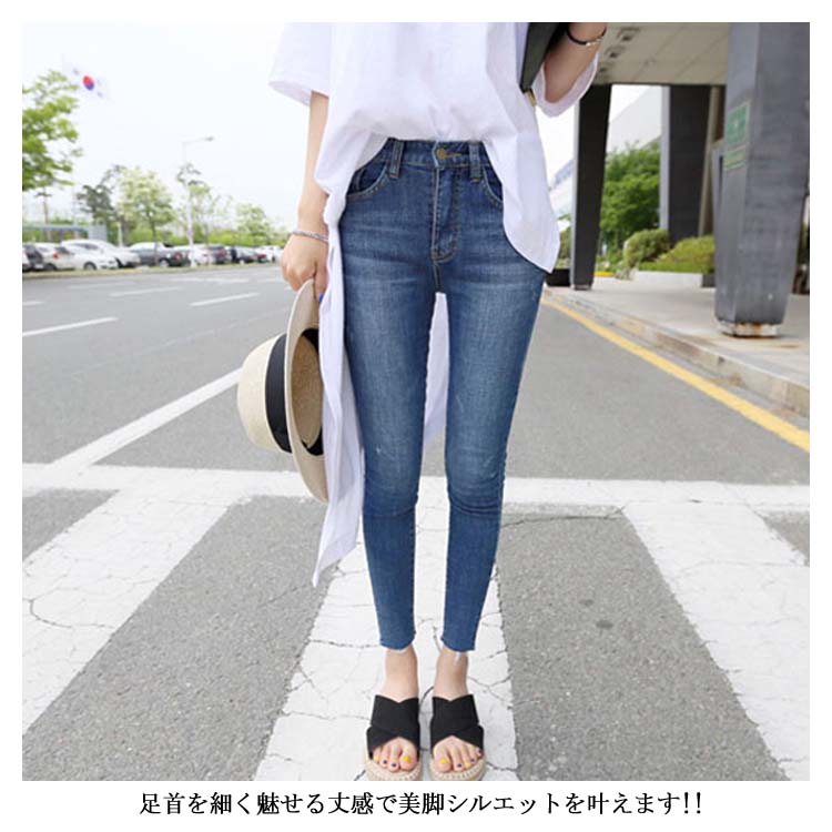 スキニー ジーンズ デニムパンツ レディース デニム スキニーパンツ 切りっぱなし ストレッチ デニムパンツ 9分丈 デニム スリムパンツ ストレッチ パンツ ジーンズ ジーパン 大人