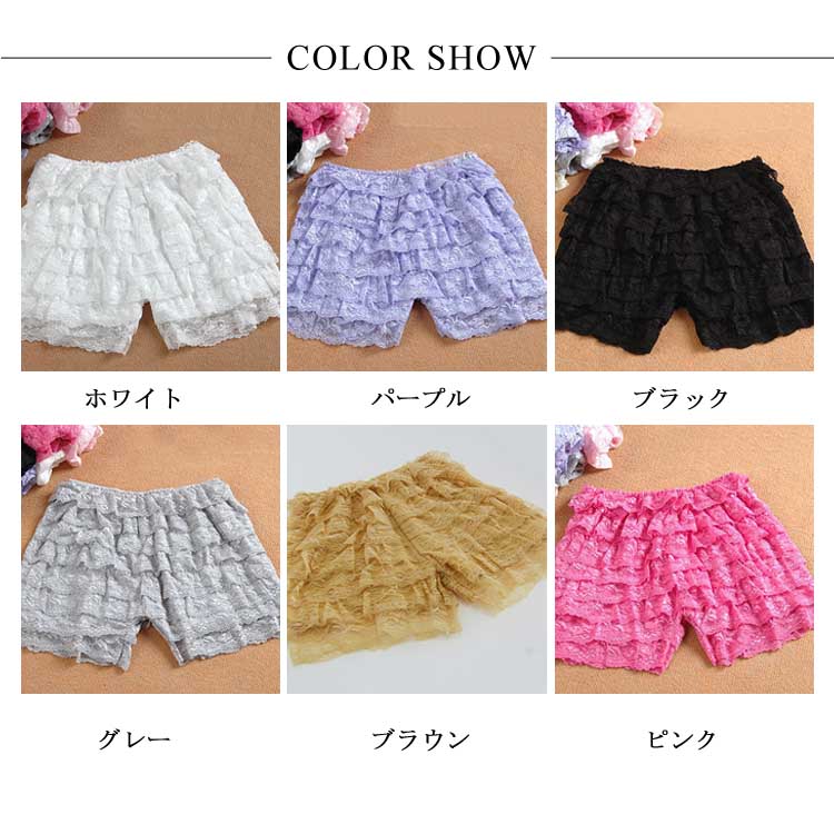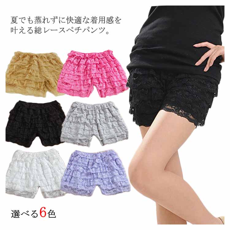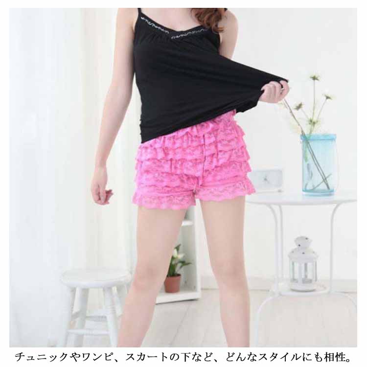 総レース ぺチパンツ レディース 8段フリル ペチコート インナーパンツ フリル レースパンツ ショートパンツ 3分丈 ショーツ ショートパンツ 快適 下着 インナー ルームウェア チラ見え防止