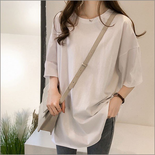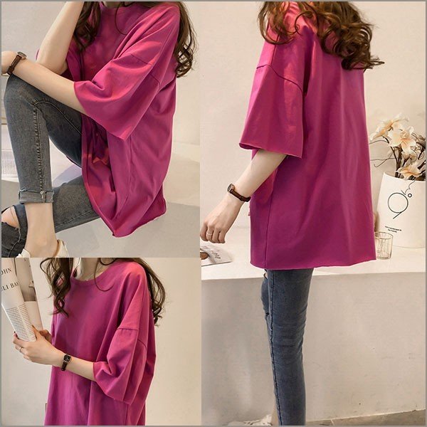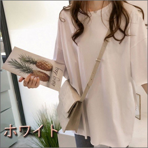 送料無料 当日発送ポイント消化 Tシャツ プラウス チュニック ゆったり 5分袖 半袖 ロング丈 カジュアル レディース 無地
