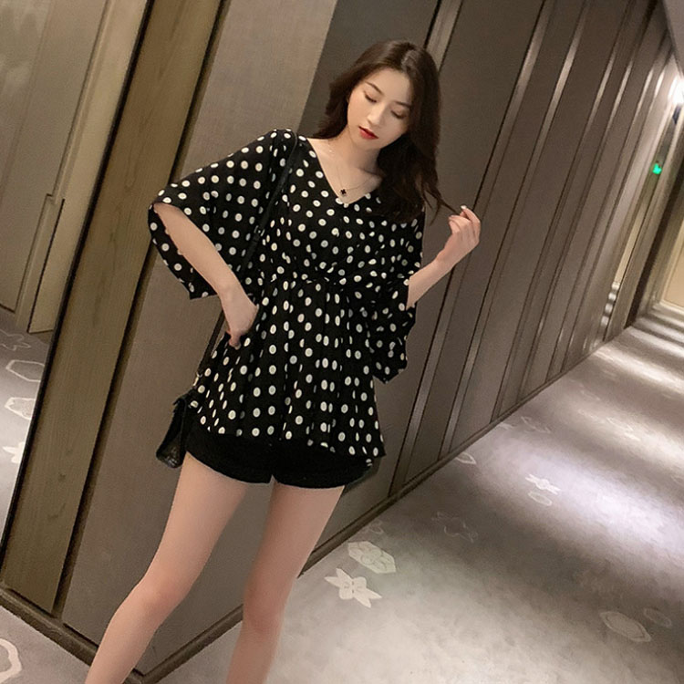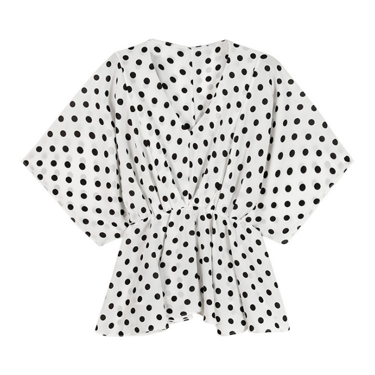 送料無料 シャツ ドット柄 Vネック シフォンシャツ ブラウス バットスリーブ ゆったりサイズ レディース トップス 上品 レディース 大人女子 シフォン