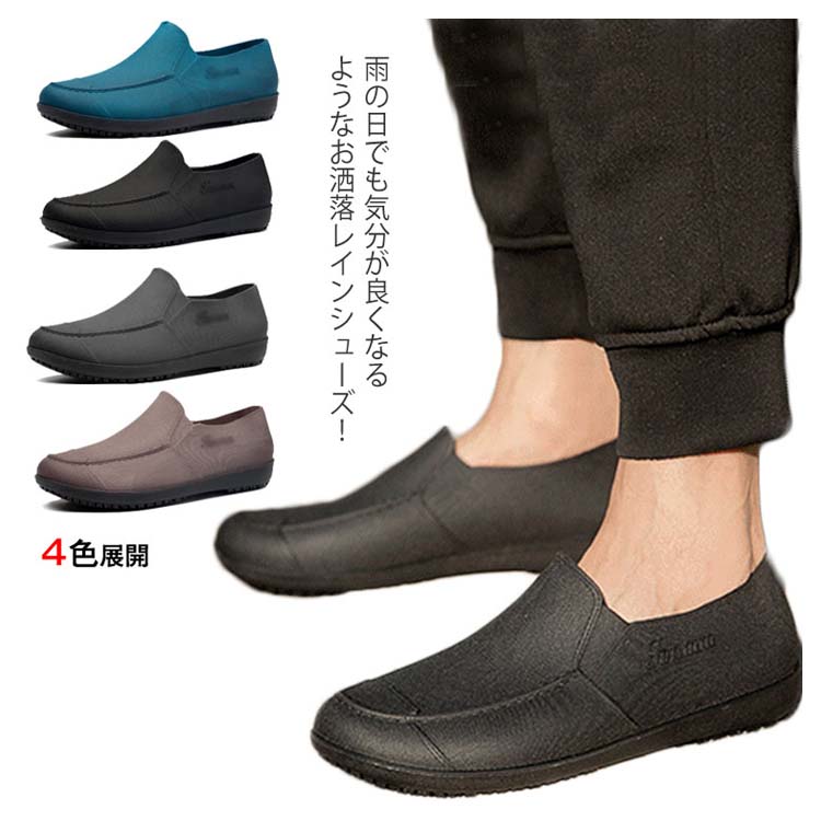 送料無料 レインシューズ メンズ ショート 梅雨対策 雨靴 シューズ 防水 防滑 晴雨兼用 紳士靴 男性用