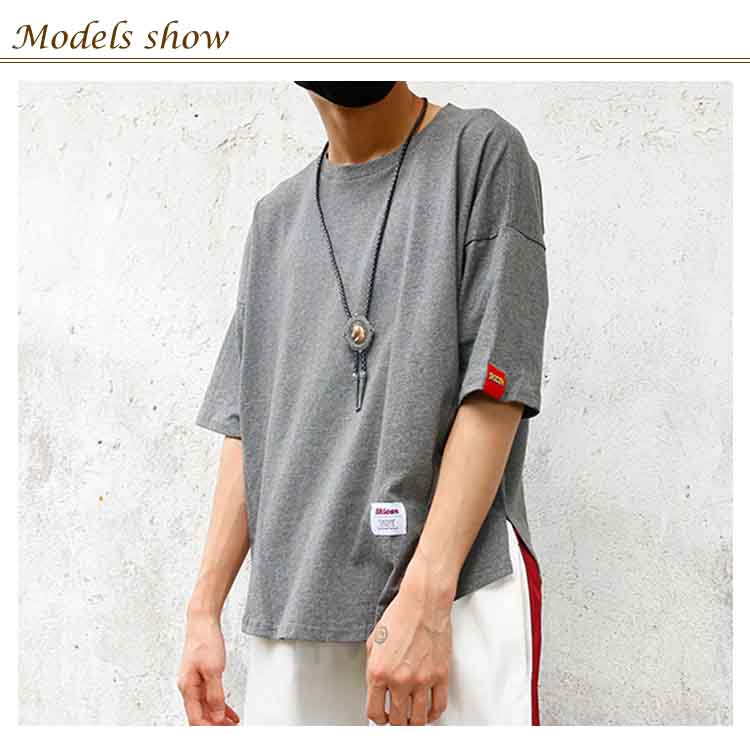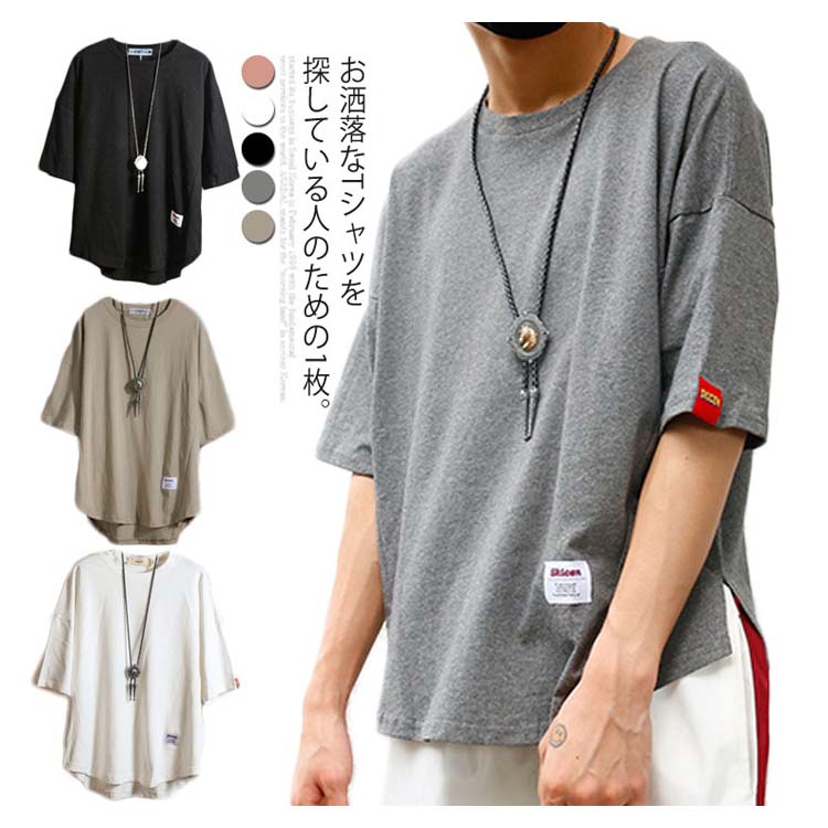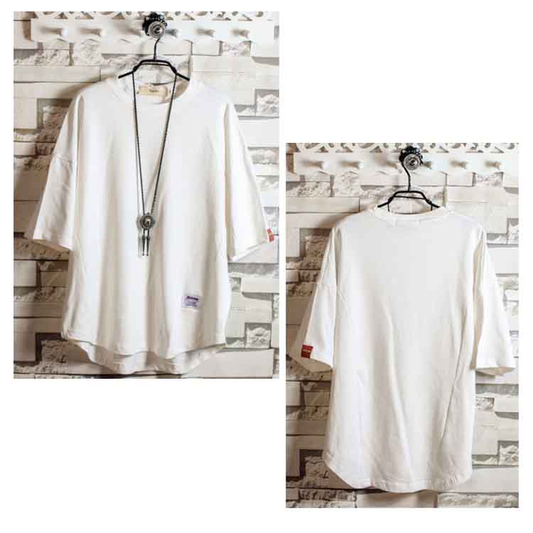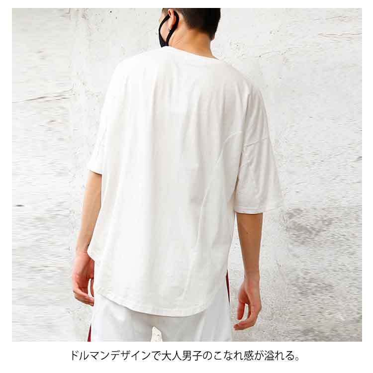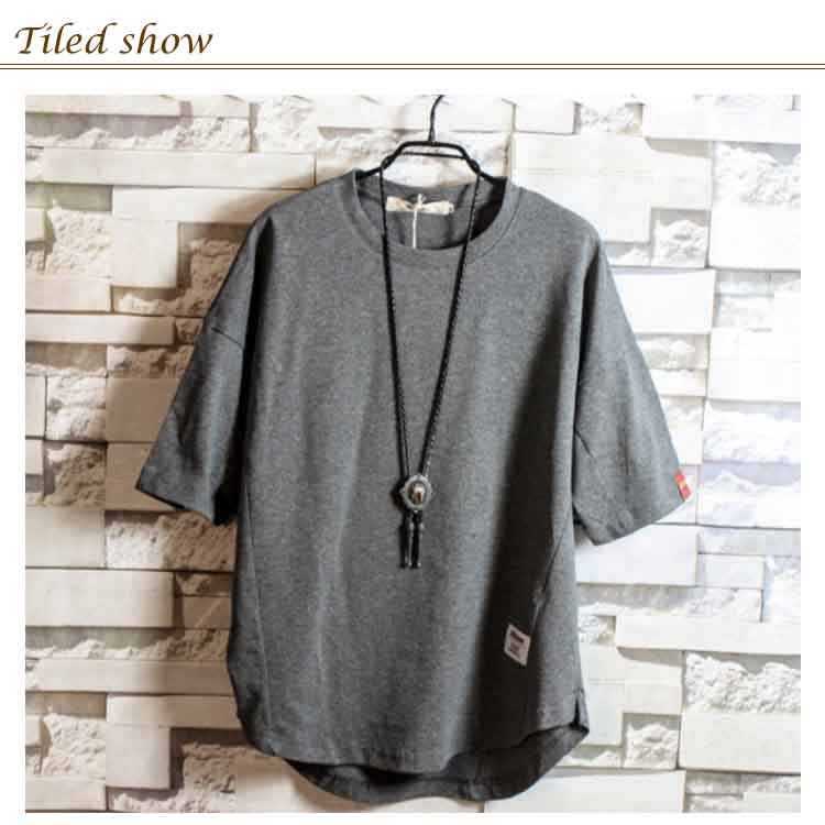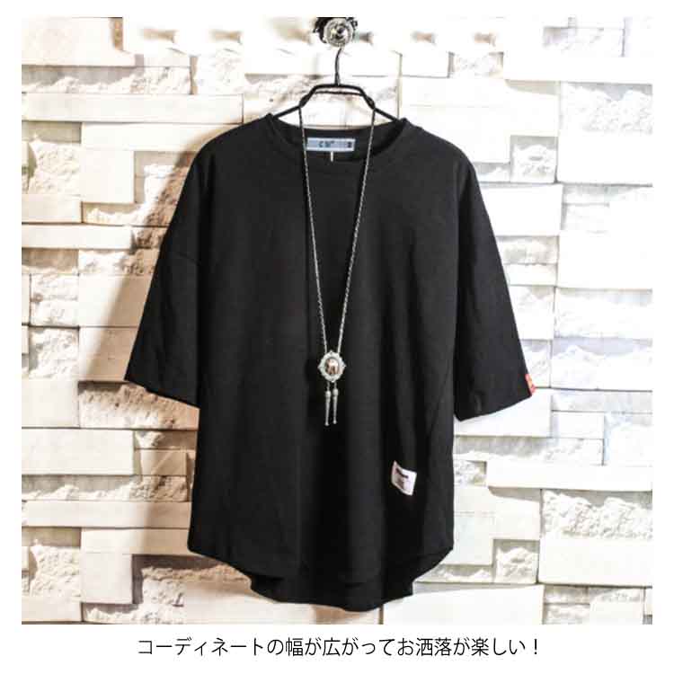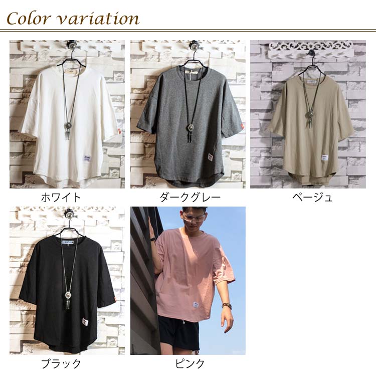 送料無料 Tシャツ ドルマン メンズ 5分丈 プルオーバー 全5色 トップス ラウンドネック カジュアルTシャツ ゆったり 大きいサイズ 薄手 シンプル