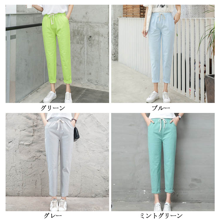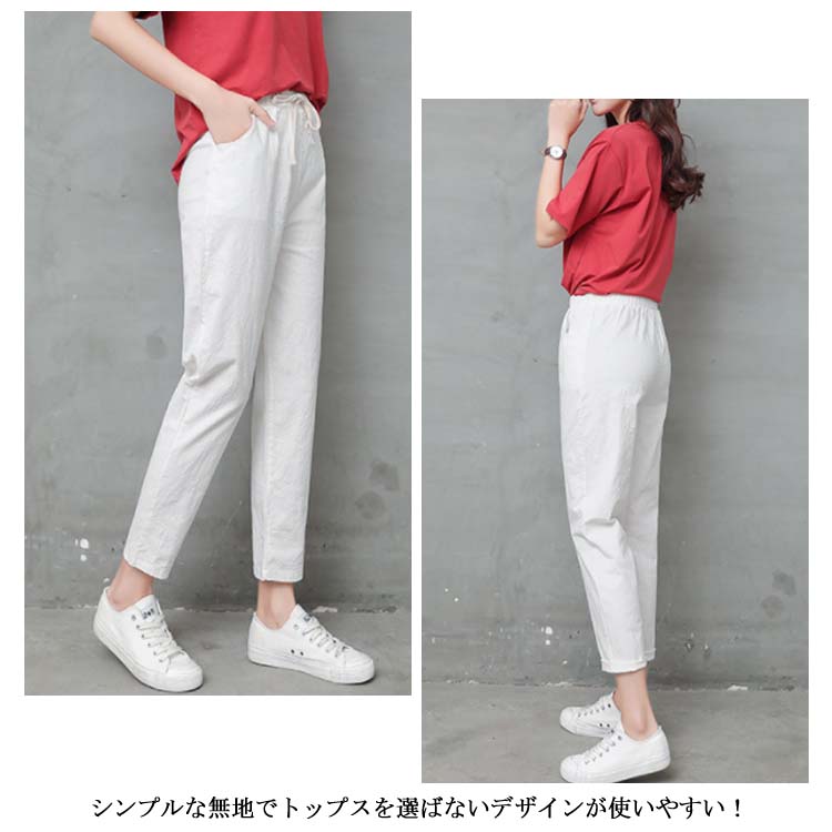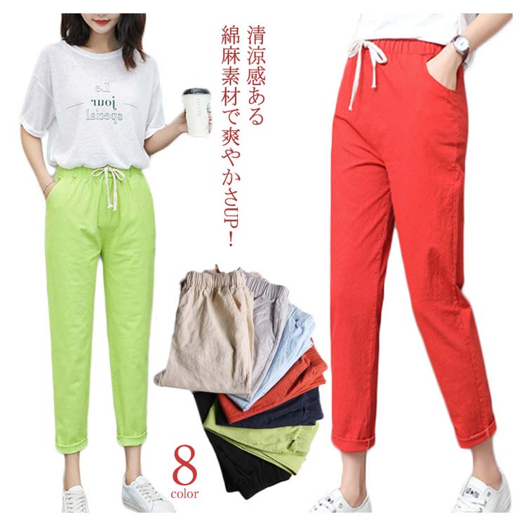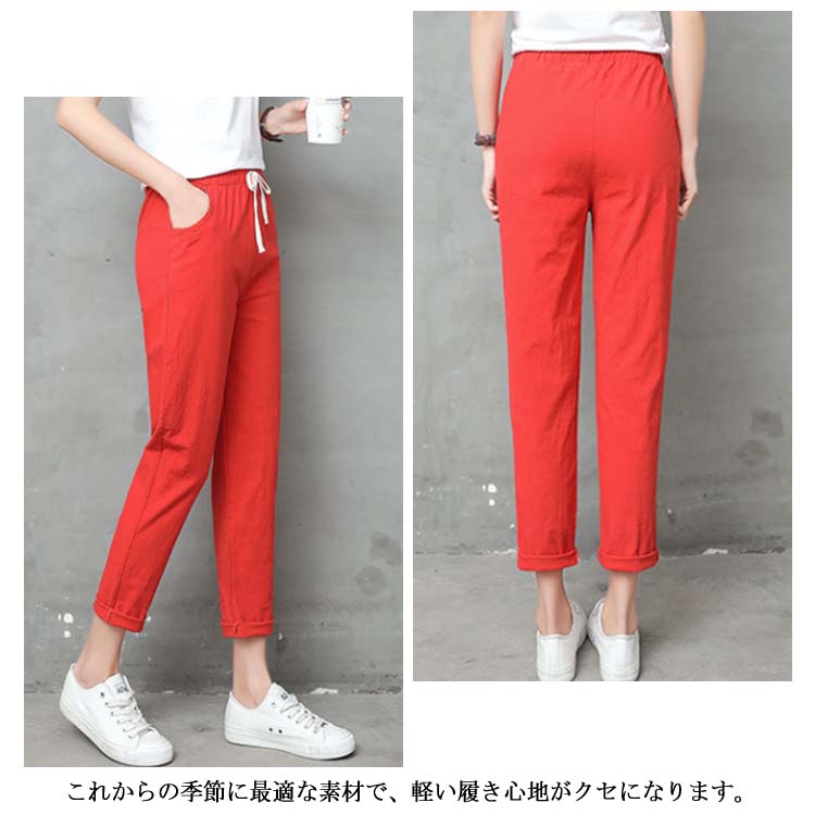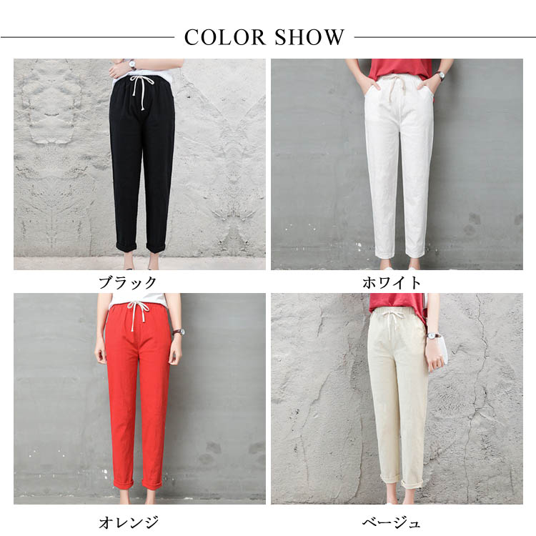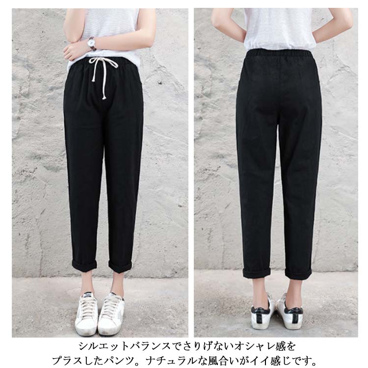 9分丈パンツ リネン パンツ サルエルパンツ レディース 綿麻パンツ チノパンツ ロールアップ 綿麻 リネン パンツ イージーパンツ ロングパンツ リラックス パンツ ルームウェア