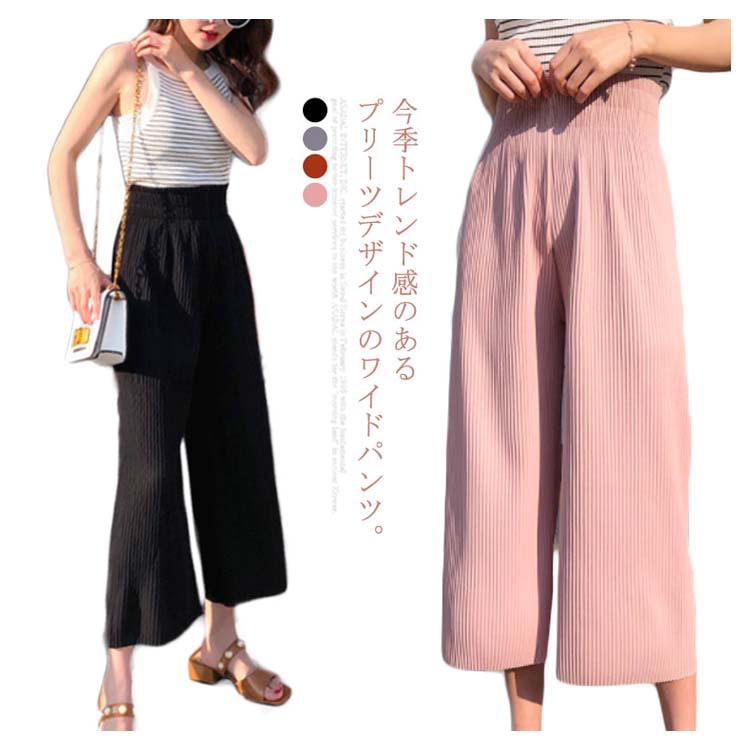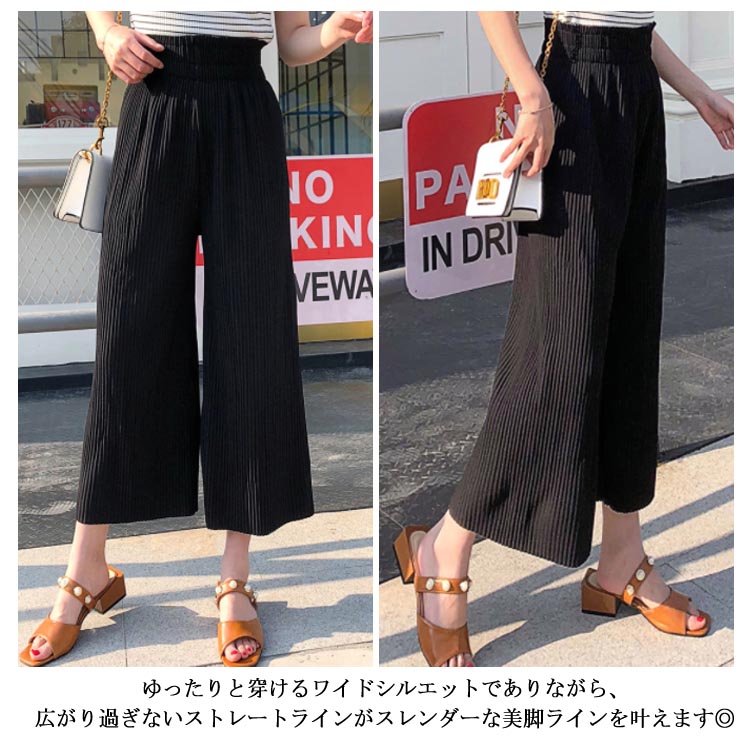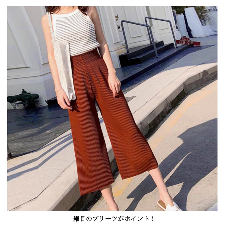 ワイドパンツ プリーツ パンツ レディース ガウチョパンツ ロングパンツ ストレート ワイドパンツ ボトムス パンツ