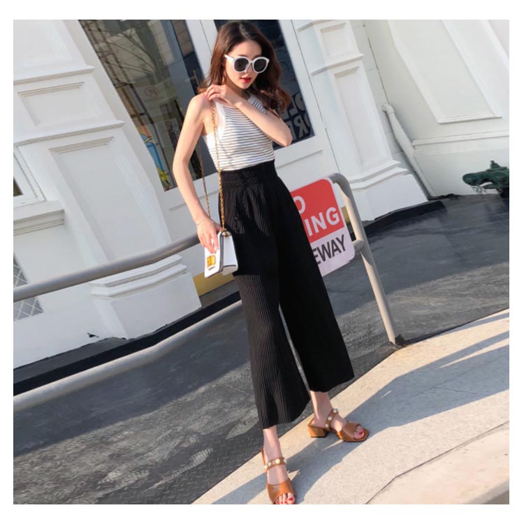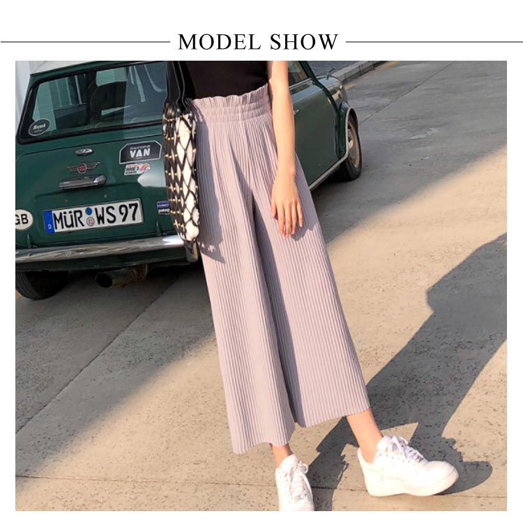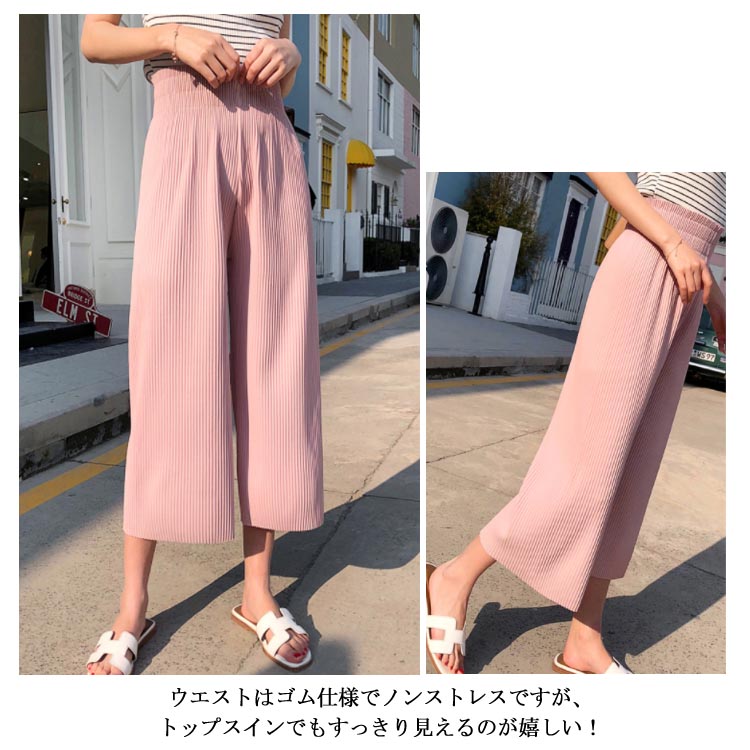 | 今季トレンド感のあるプリーツデザインのワイドパンツ。 細目のプリーツがポイント! ゆったりと穿けるワイドシルエットでありながら、広がり過ぎないストレートラインがスレンダーな美脚ラインを叶えます◎ ウエストはゴム仕様でノンストレスですが、トップスインでもすっきり見えるのが嬉しい! | |