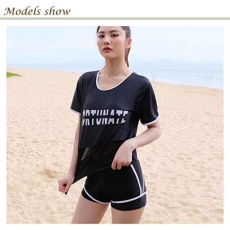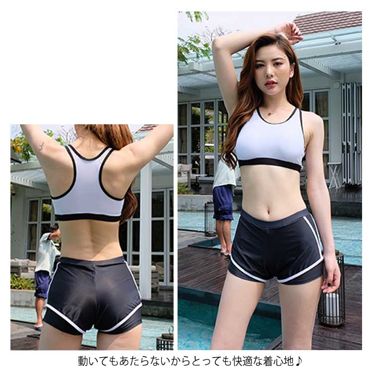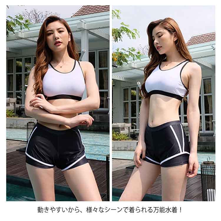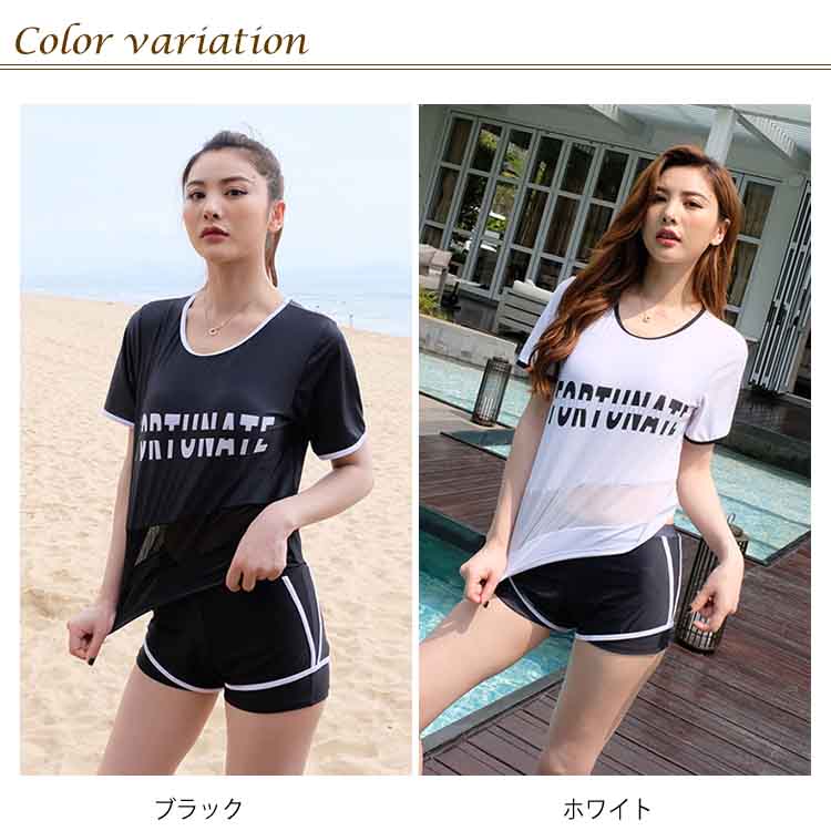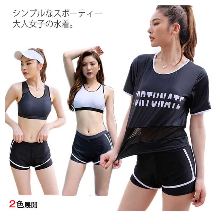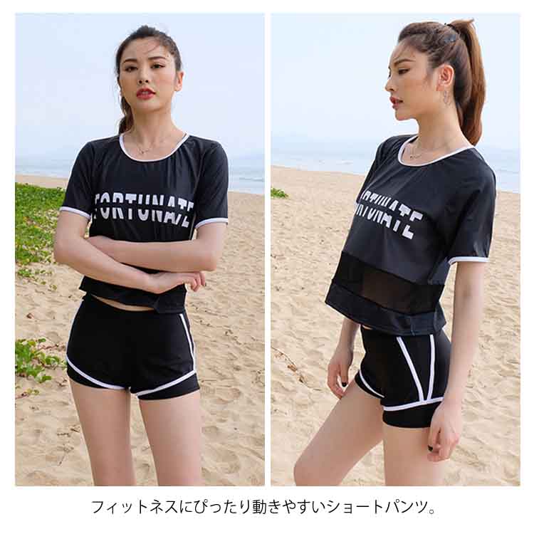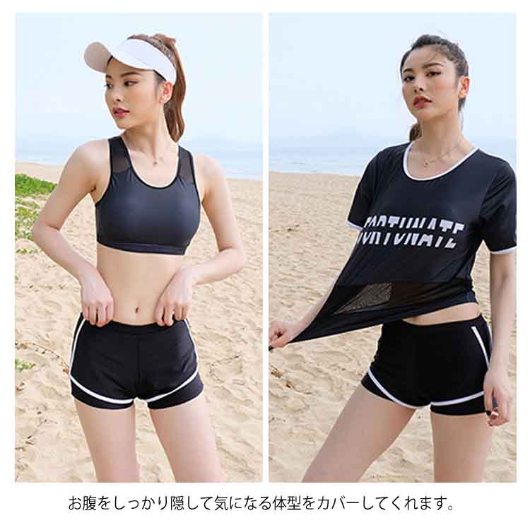 送料無料 水着 レディース フィットネス ショートパンツ Tシャツ 3点セット お洒落 体型カバー 大きいサイズ 大人可愛い パッド付 大人女子 スポーツ水着
