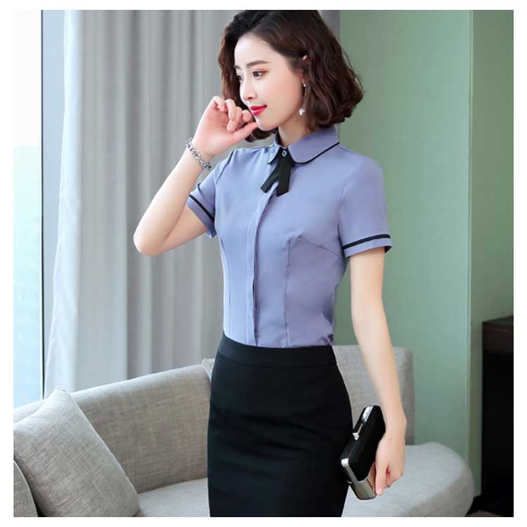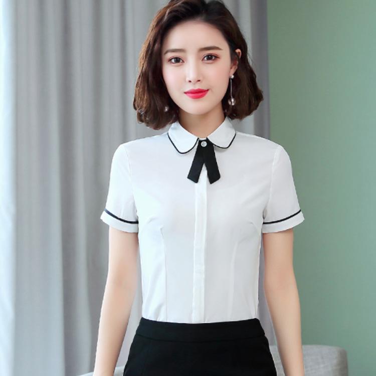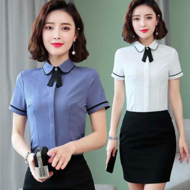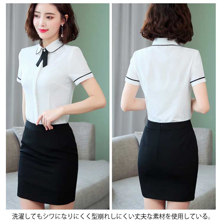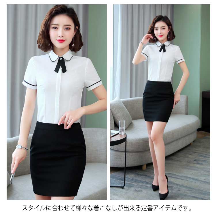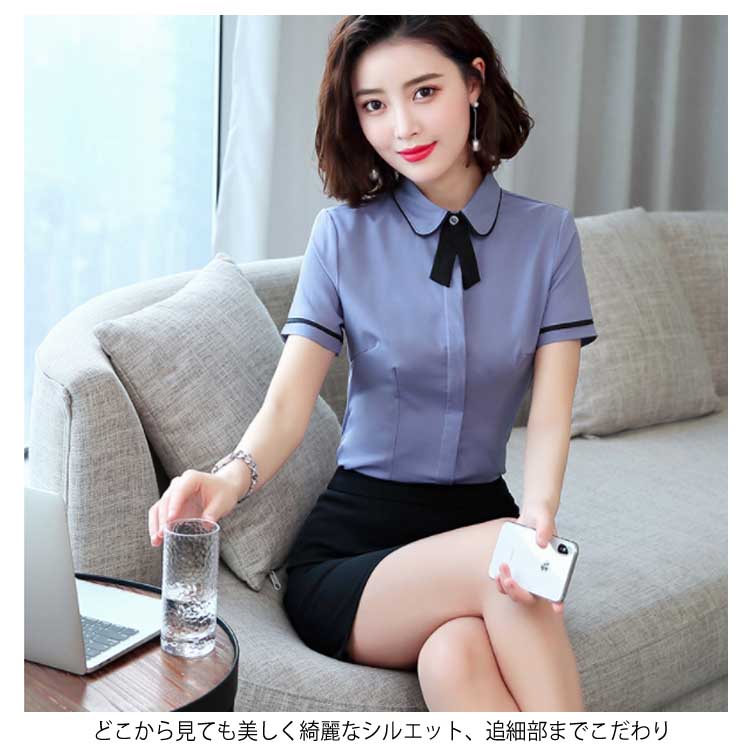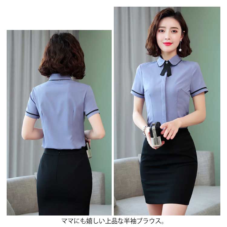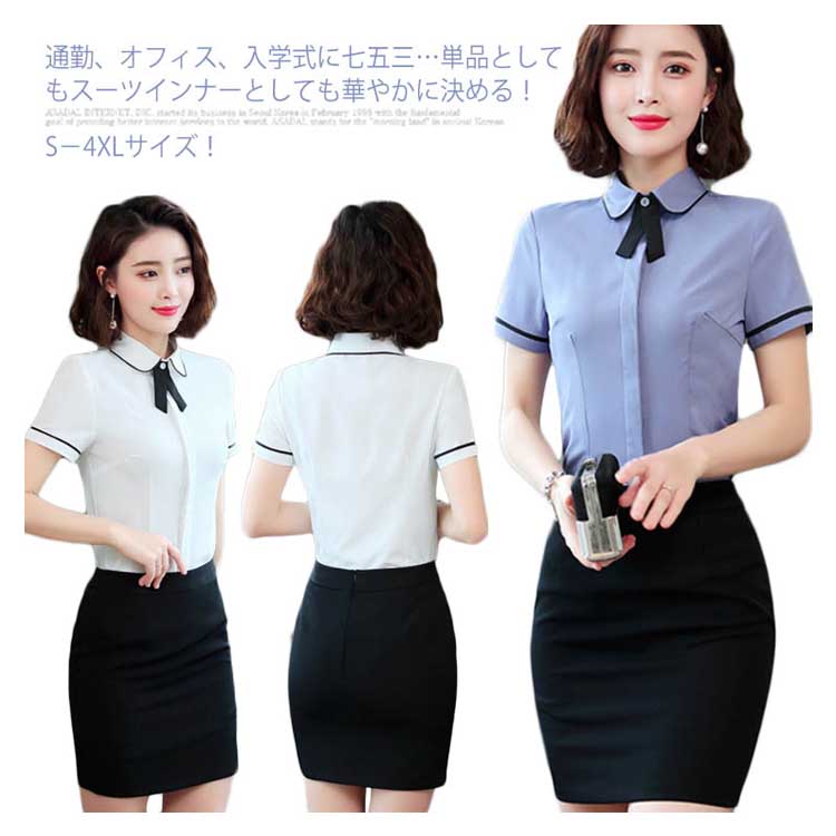 《送料無料》S-4XLサイズ!夏服 シャツ ブラウス レディース 半袖シャツ リボン付き フォーマルシャツ スーツインナー 白 ホワイト ブルー 通勤 おしゃれ 可愛い 大きサイズ
