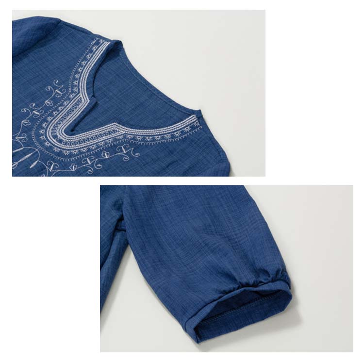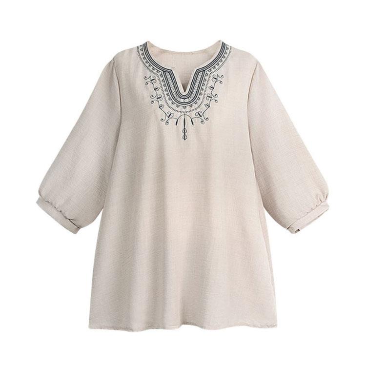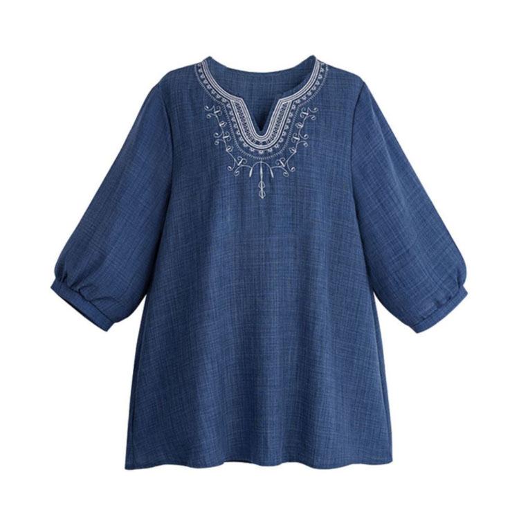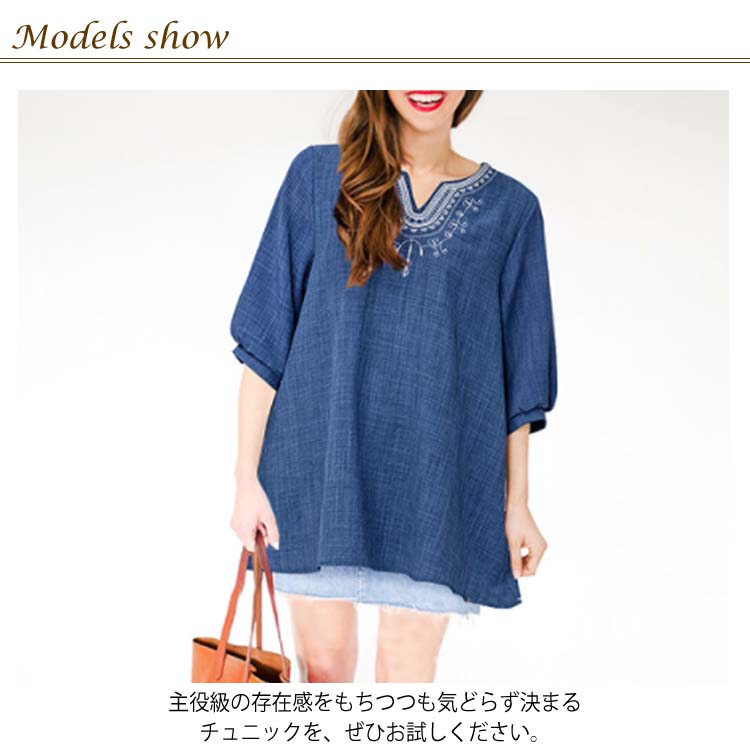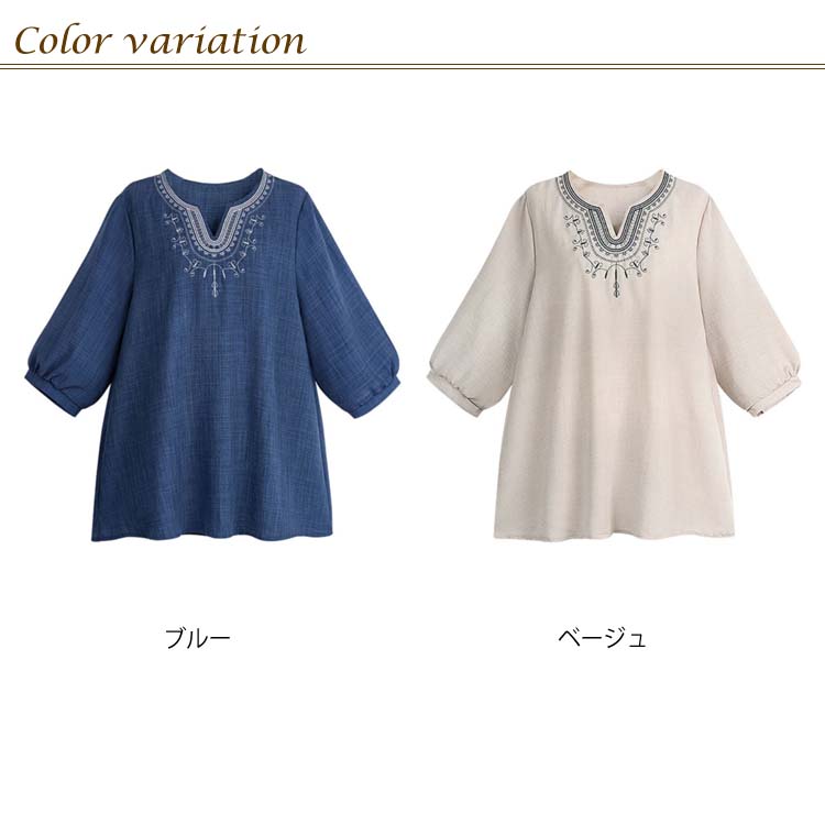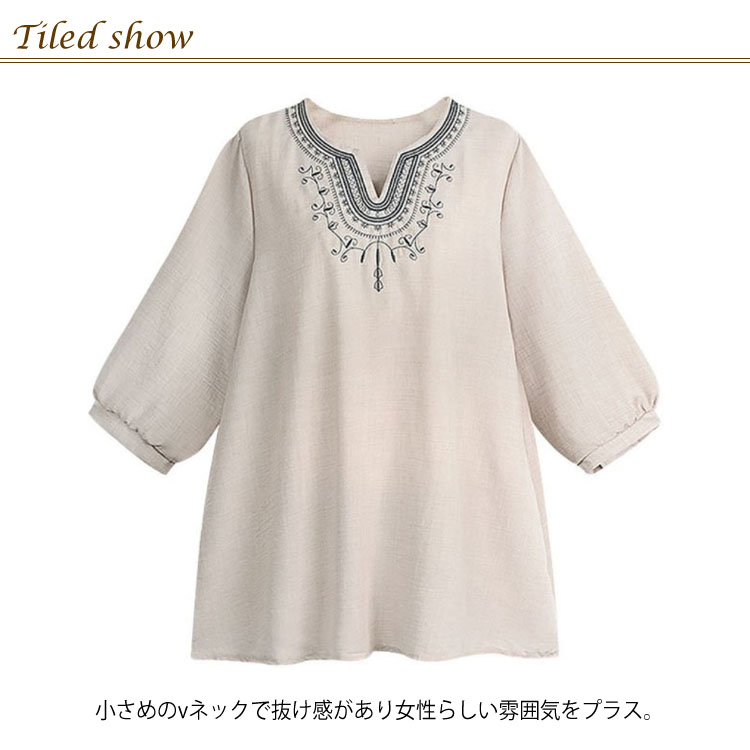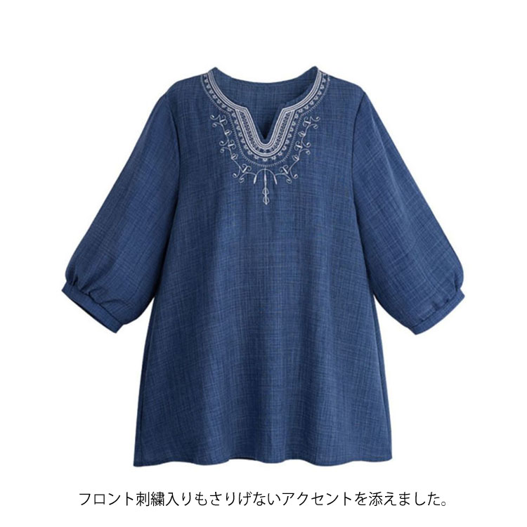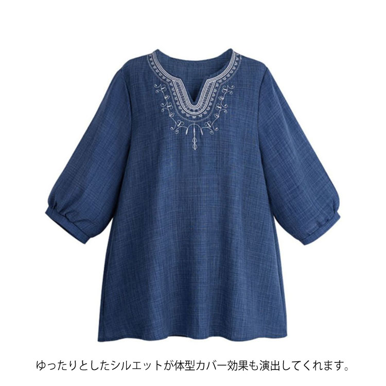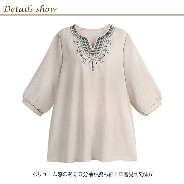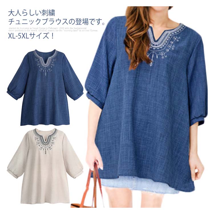 《送料無料》XL-5XLサイズ!刺繍チュニックブラウス チュニック レディース 五分袖 七分袖 刺繍 エスニック トップス ブラウス 春 夏 おしゃれ 可愛い カジュアル ナチュラル ベージュ ネービー