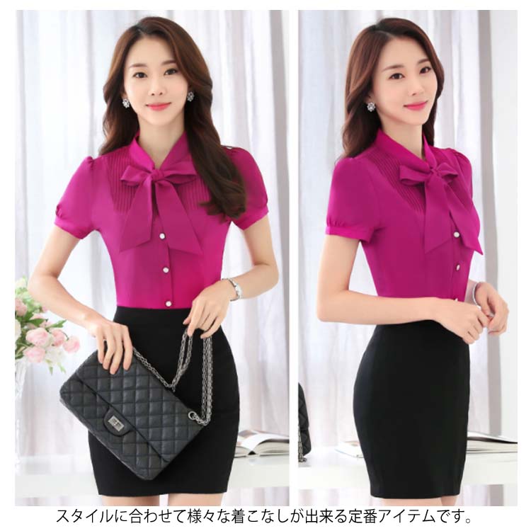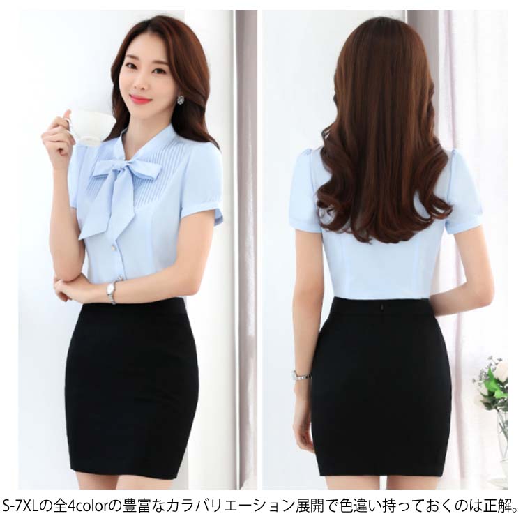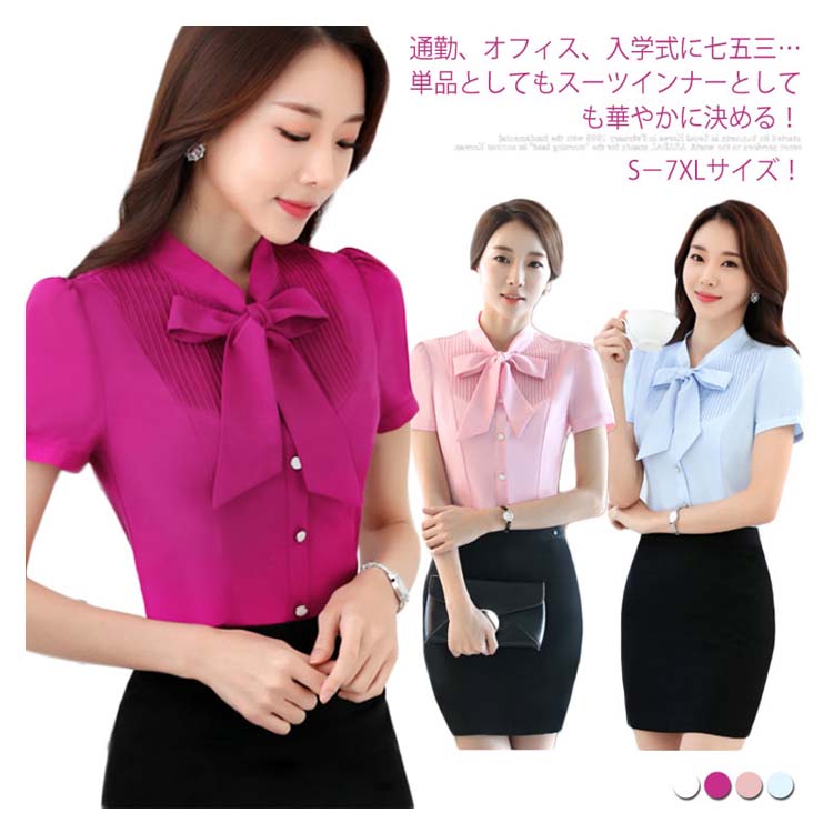 | S-7XLサイズ!通勤、オフィス、入学式に七五三…単品としてもスーツインナーとしても華やかに決める! ママにも嬉しい上品な半袖ブラウス。 フロントにはボウタイリボン付きがフェミニンな顔周りを演出してくれます。 どこから見ても美しく綺麗なシルエット、追細部までこだわり 洗濯してもシワになりにくく型崩れしにくい丈夫な素材を使用している。 S-7XLの全4colorの豊富なカラバリエーション展開で色違い持っておくのは正解。 スタイルに合わせて様々な着こなしが出来る定番アイテムです。 | |