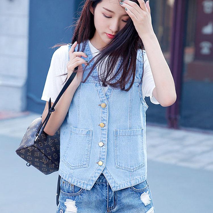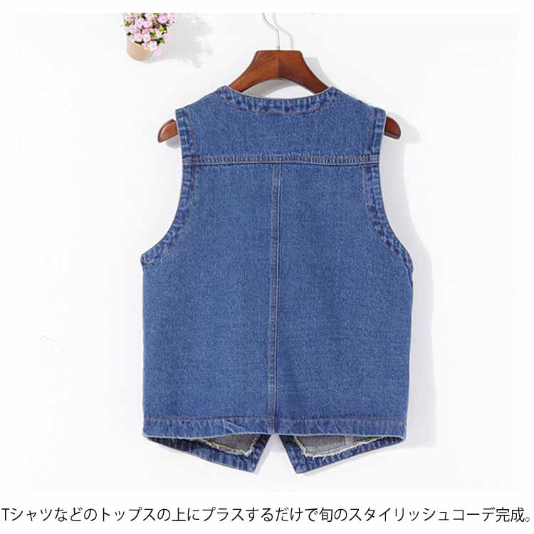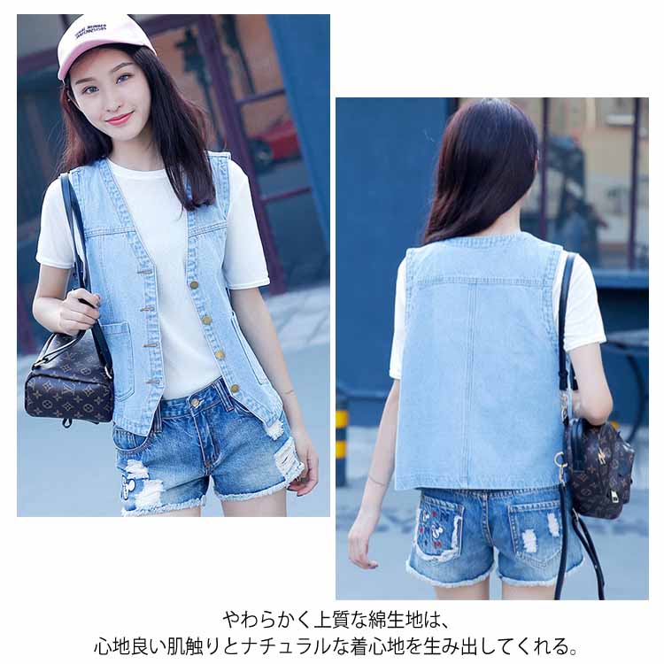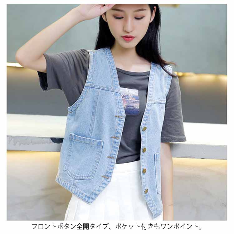 《送料無料》全2色×5サイズ!デニムジャケット デニムジレ デニム ジレ ベスト レディース デニムアウター Vネック ノースリーブ 薄手 羽織り 春 夏 秋 大きサイズ