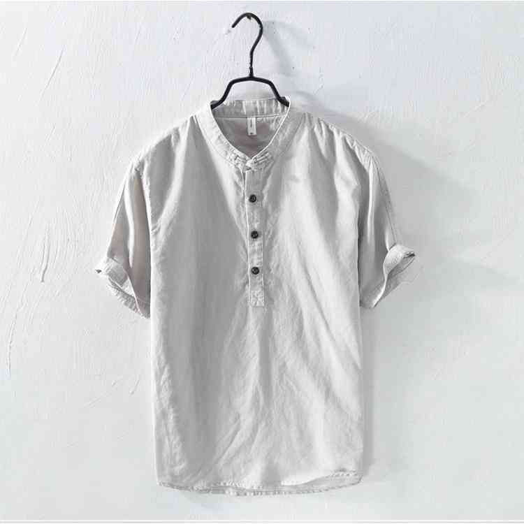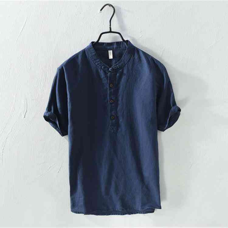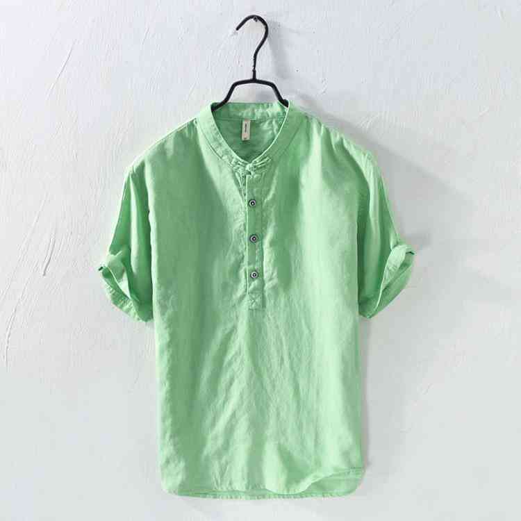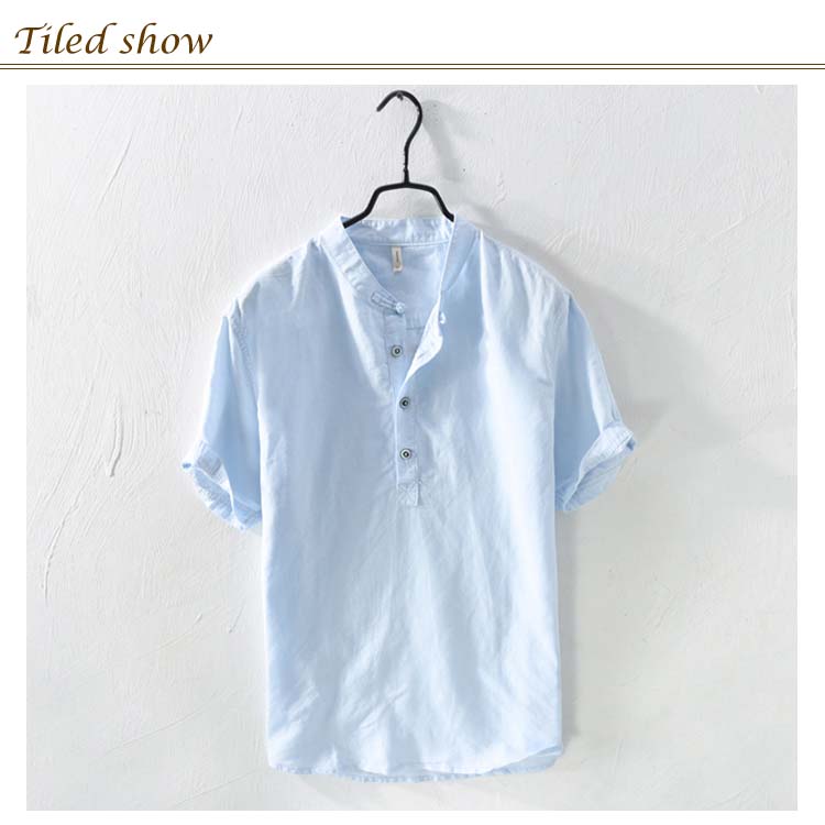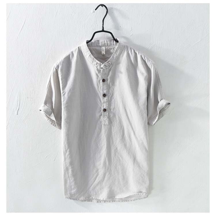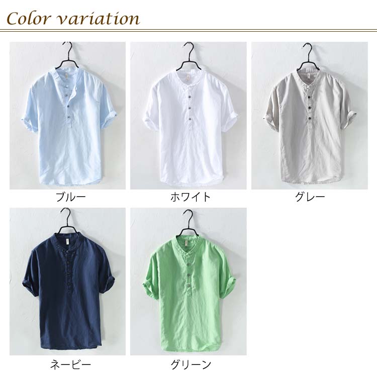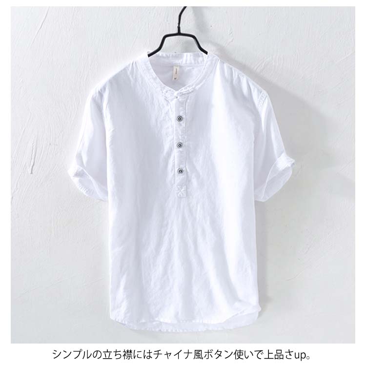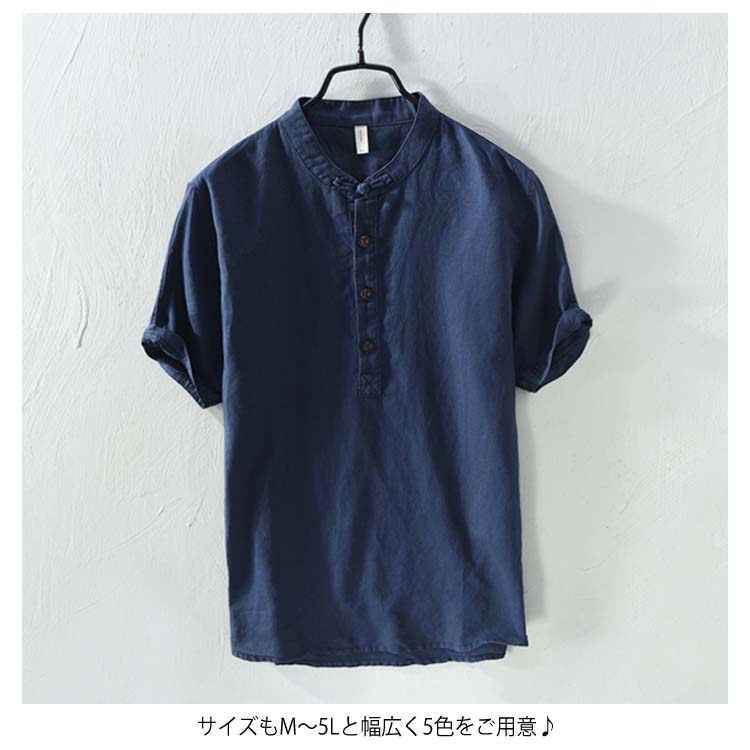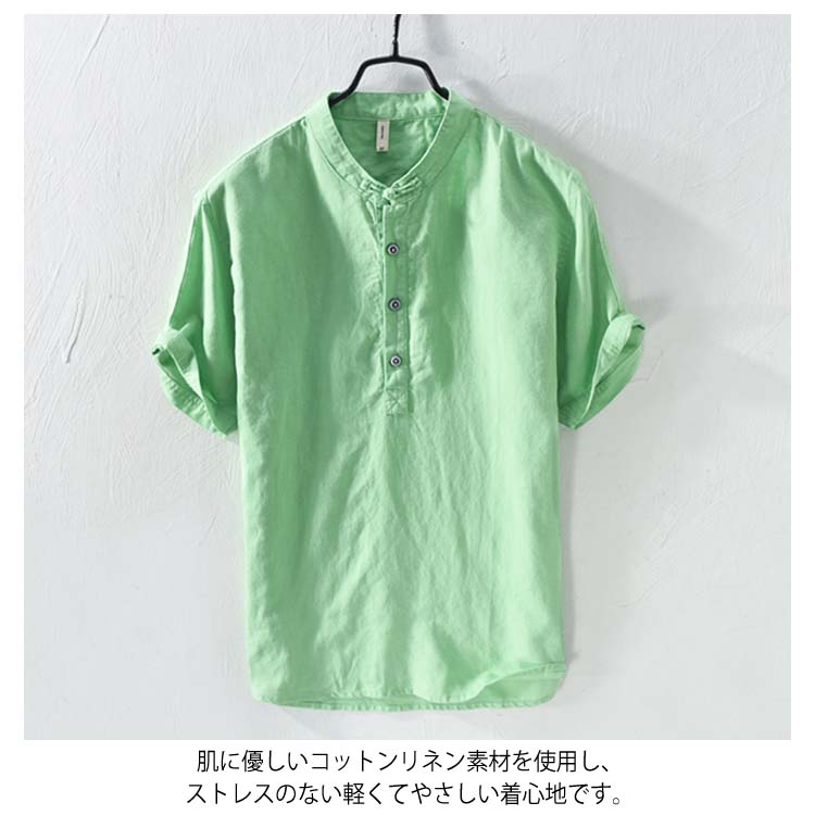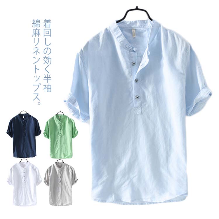 《送料無料》全5color×6サイズ!シャツ メンズ リネンシャツ メンズシャツ 半袖シャツ 立ち襟 トップス リネン tシャツ 半袖 綿麻 夏服 男性用 カジュアル 無地 メンズファッション
