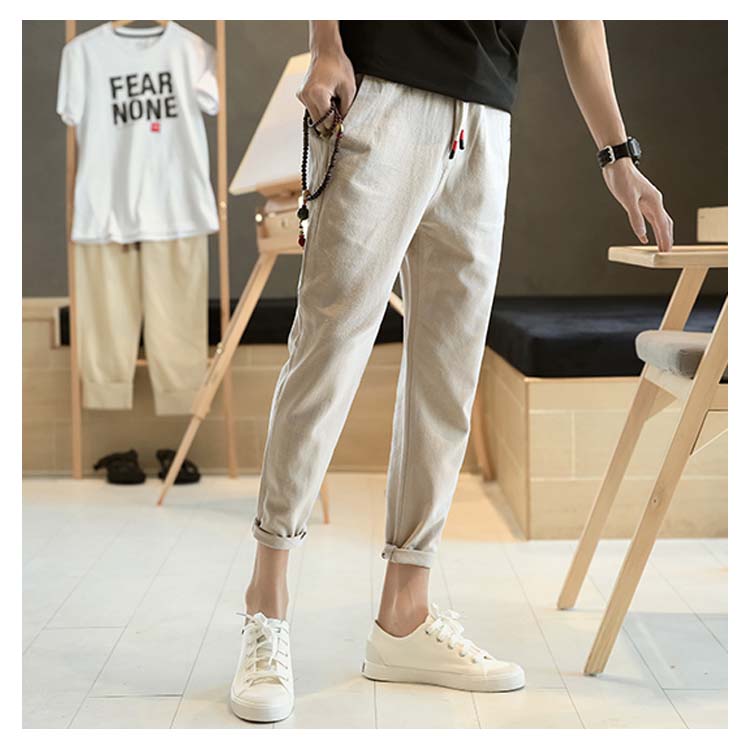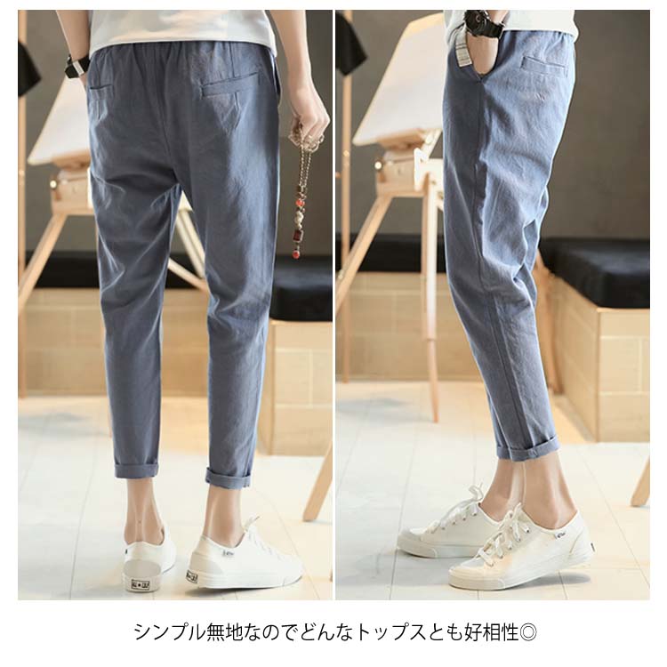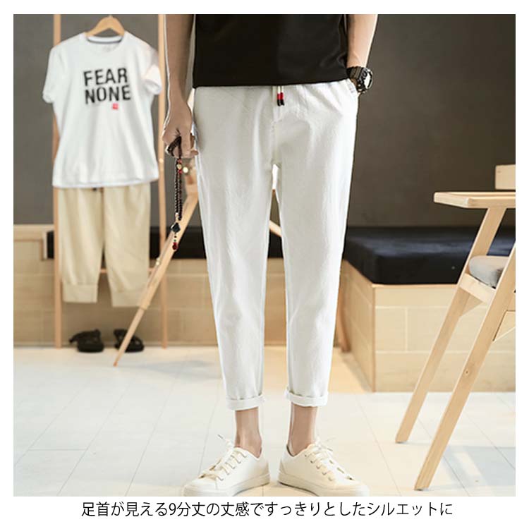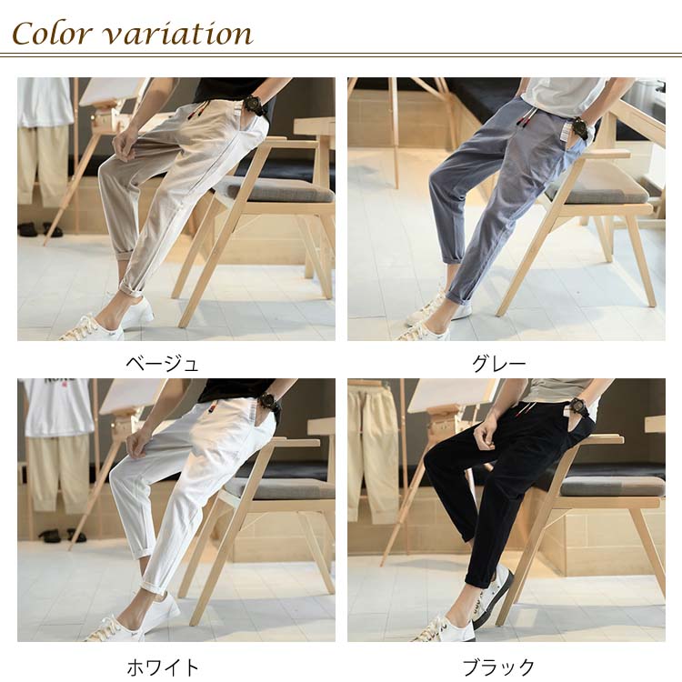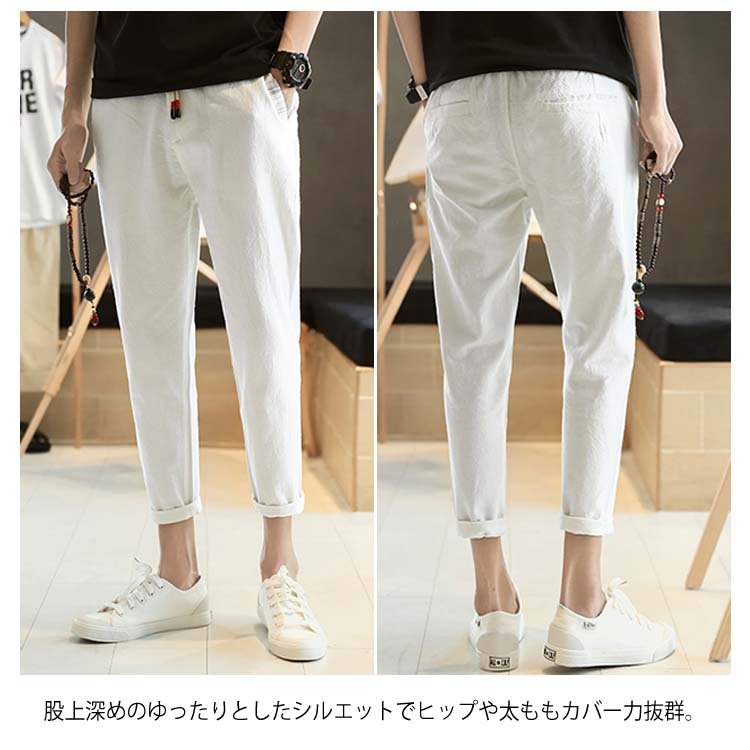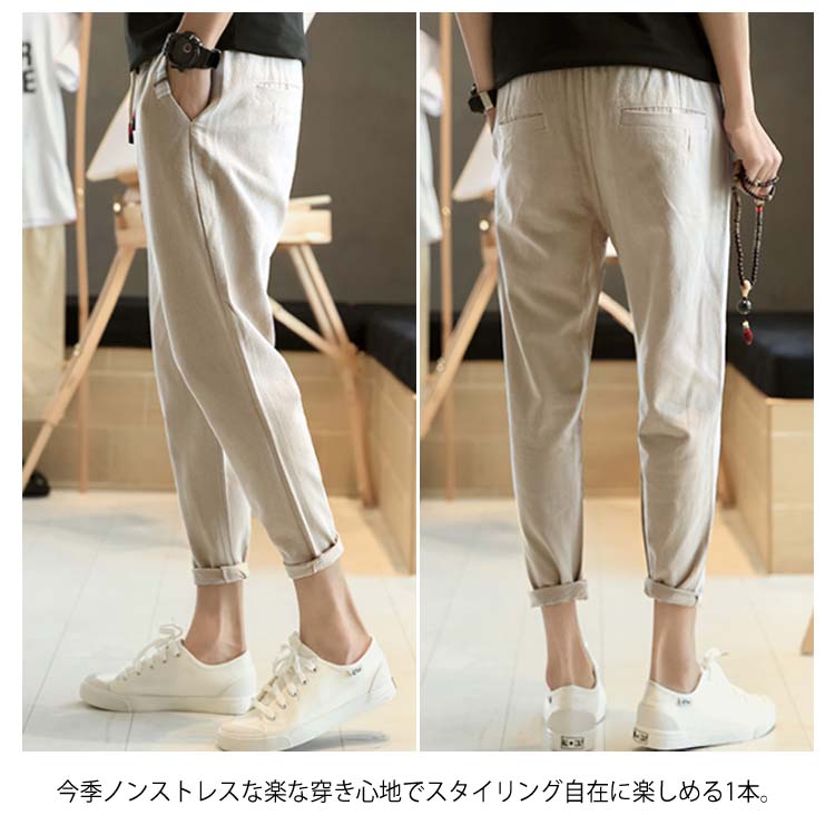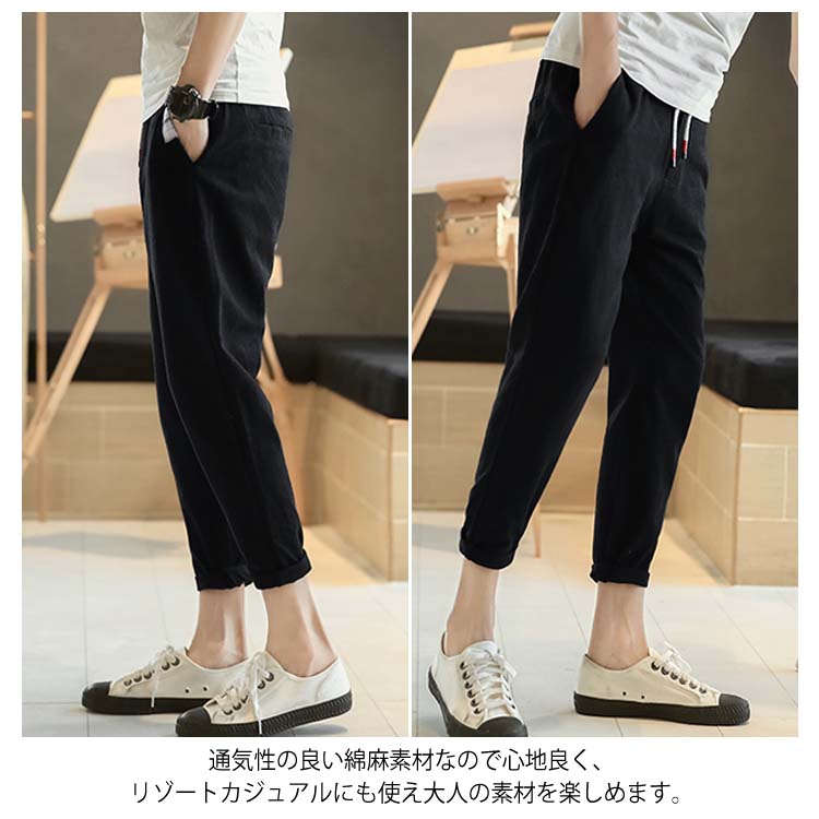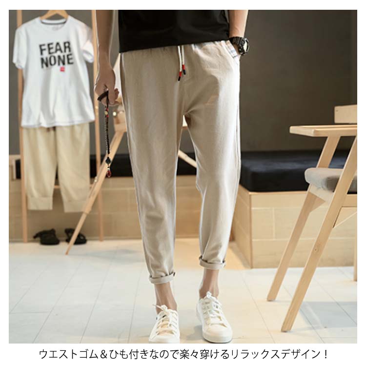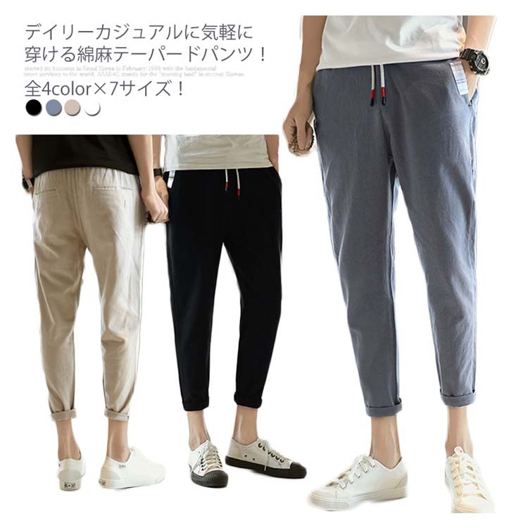 《送料無料》全4color×7サイズ!綿麻 サルエルパンツ メンズ リネンパンツ リネン ロングパンツ テーパードパンツ 9分丈 シンプル 無地 春 夏