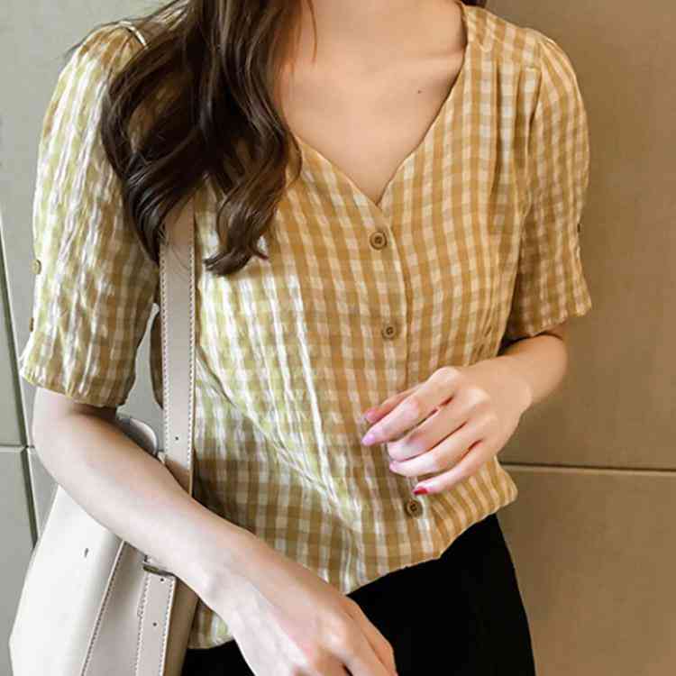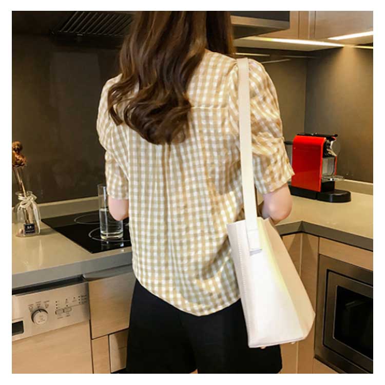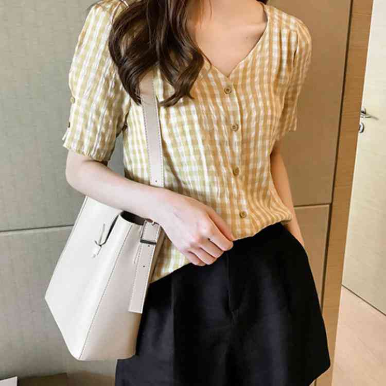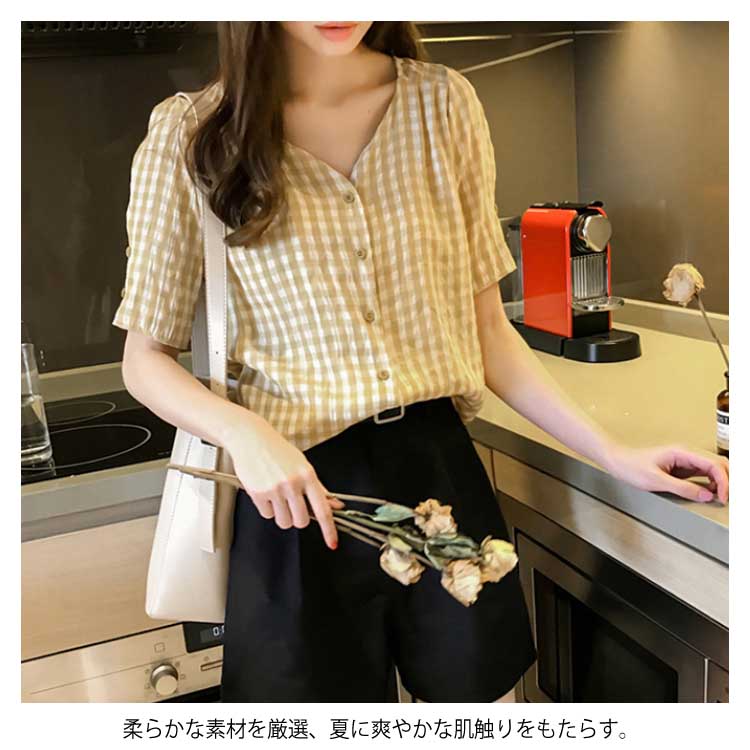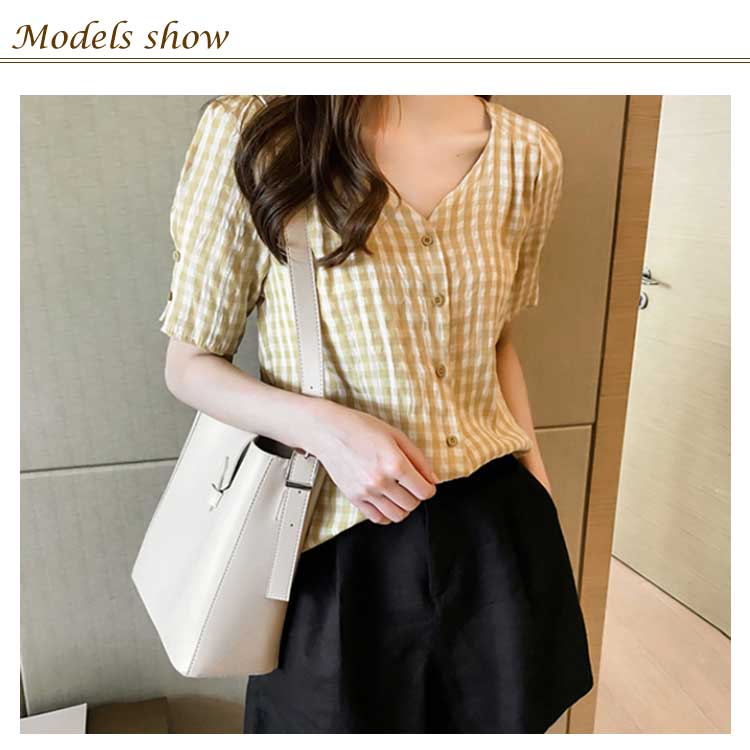 | 旬の流行先取り!ベーシックなチェック柄シャツ。 柔らかな素材を厳選、夏に爽やかな肌触りをもたらす。 ナチュラルなチェック柄でレトロ感を漂わせる。 ちょうど良いVネックでデコルテをキレイに見せてくれます☆ ベーシックなシルエットなので、どんなスタイルにも合わせやすい。 | |