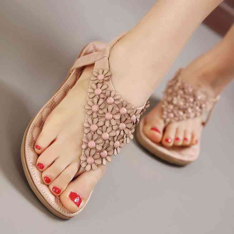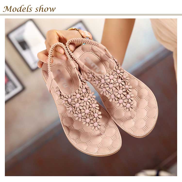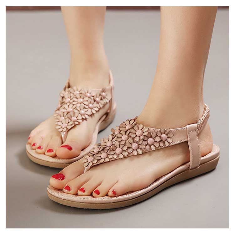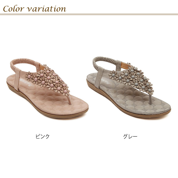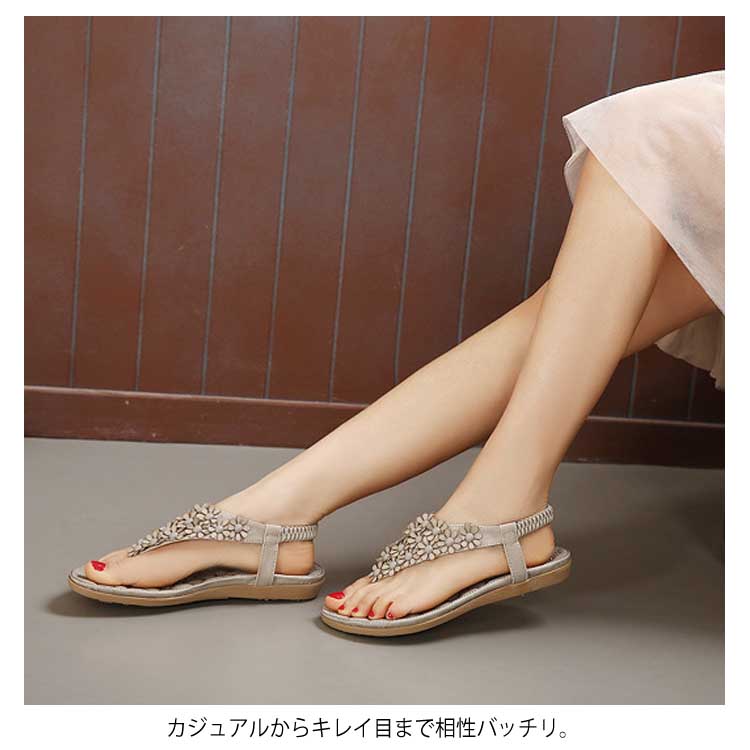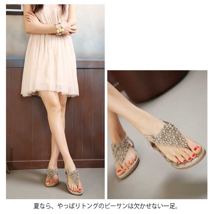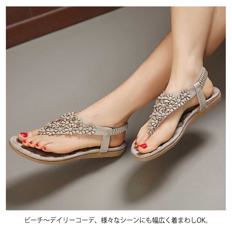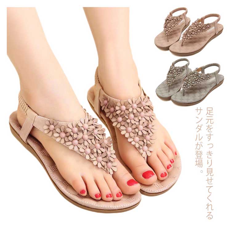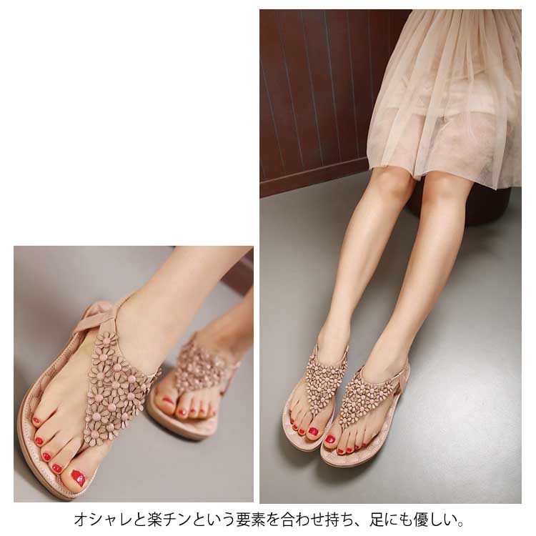 送料無料 サンダル ビーチサンダル レディース シューズ 歩きやすい 疲れにくい 大きいサイズ べったん 花飾り 可愛い ローヒール ファッション 美脚