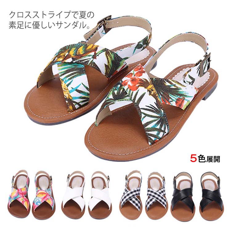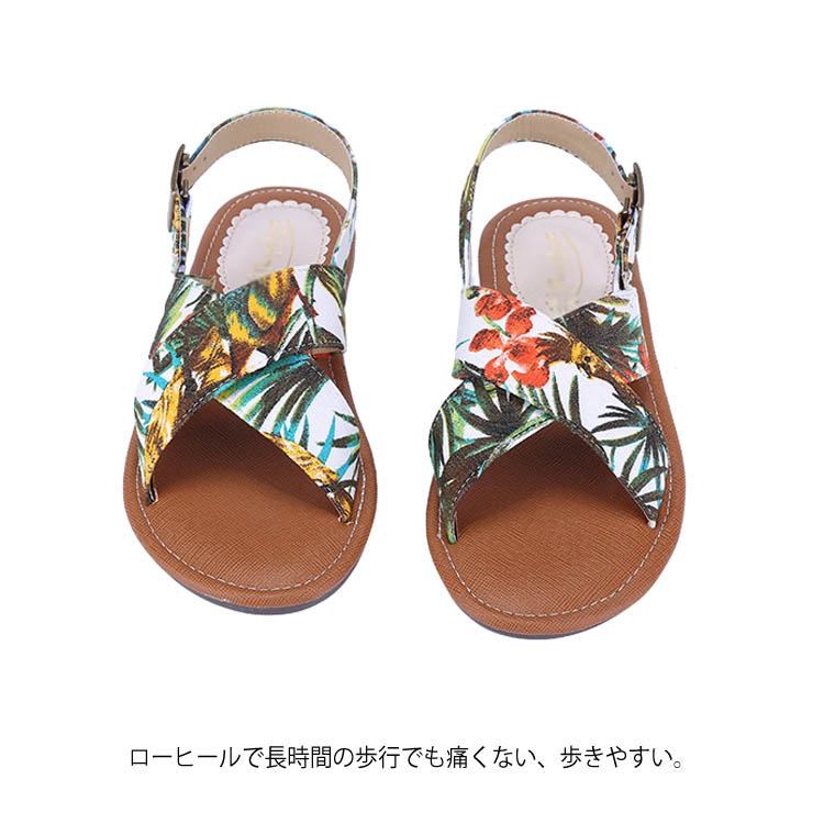送料無料 サンダル レディース シューズ 歩きやすい 疲れにくい 大きいサイズ べったん シンプル 花柄 可愛い ローヒール ファッション 美脚