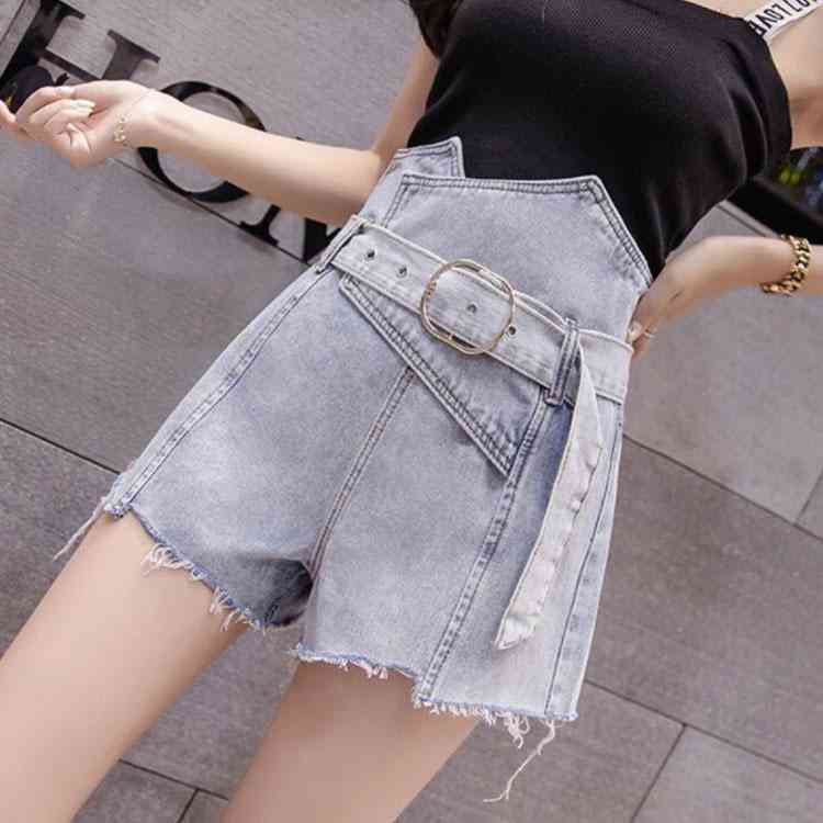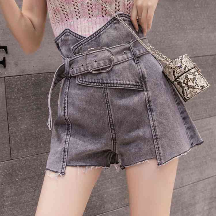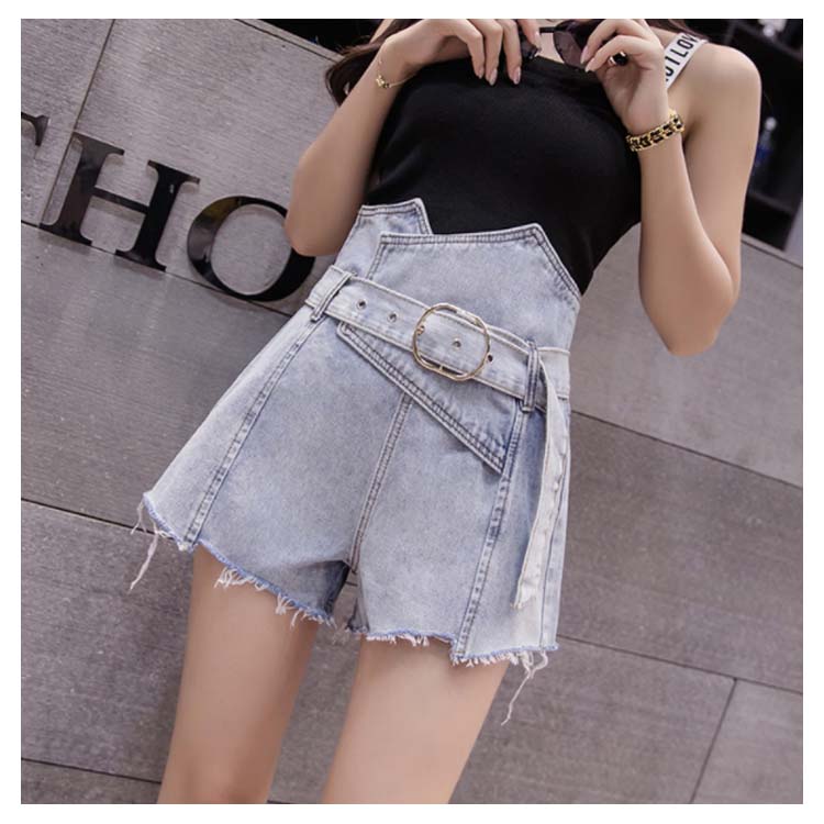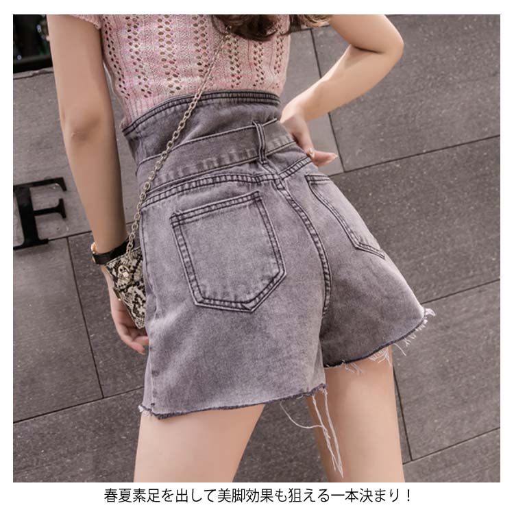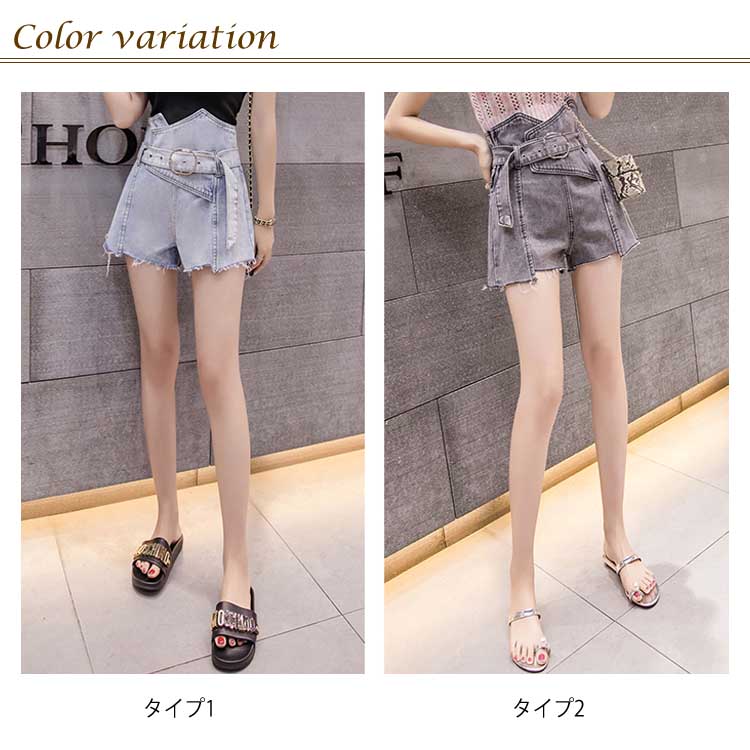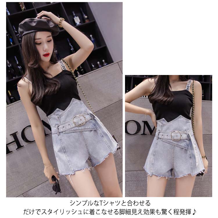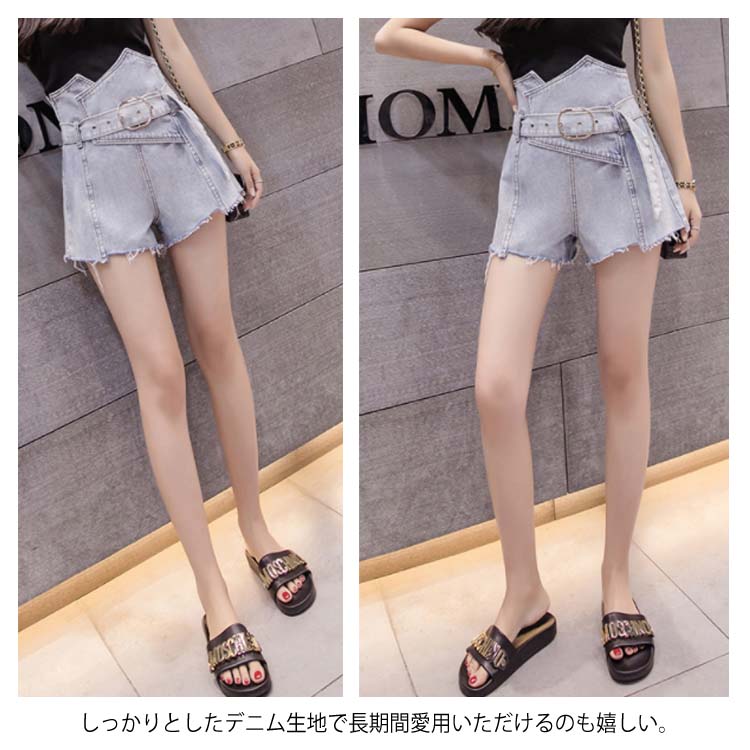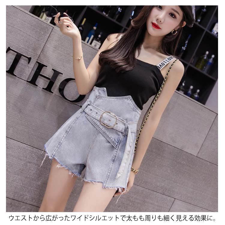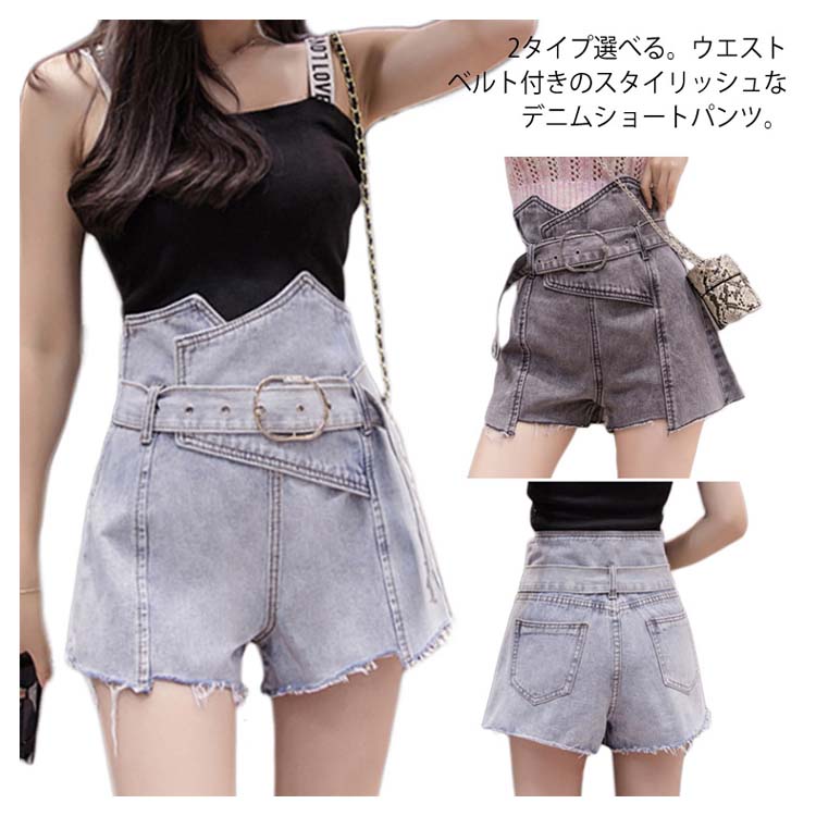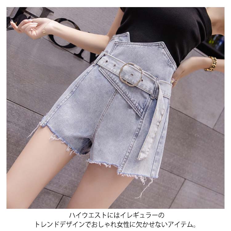 送料無料 2タイプ選べる!イレギュラー ハイウエストショートパンツ 切りっぱなし デニムショートパンツ デニム ショートパンツ ハイウエスト 夏 ボトムス レディース ワイド 美脚 ベルト付き