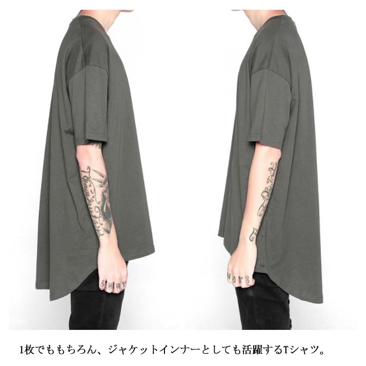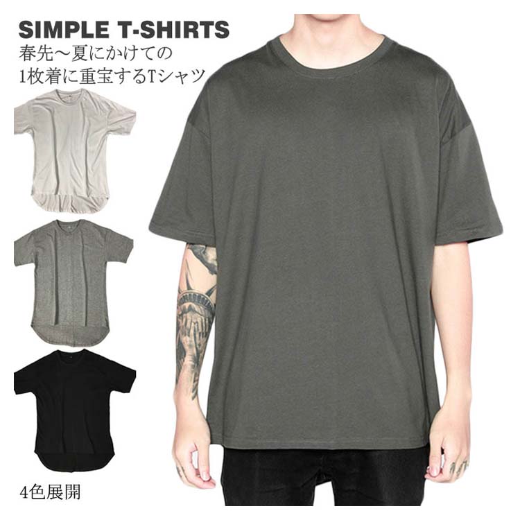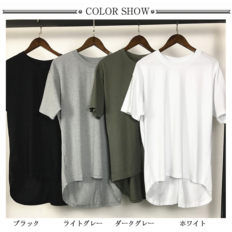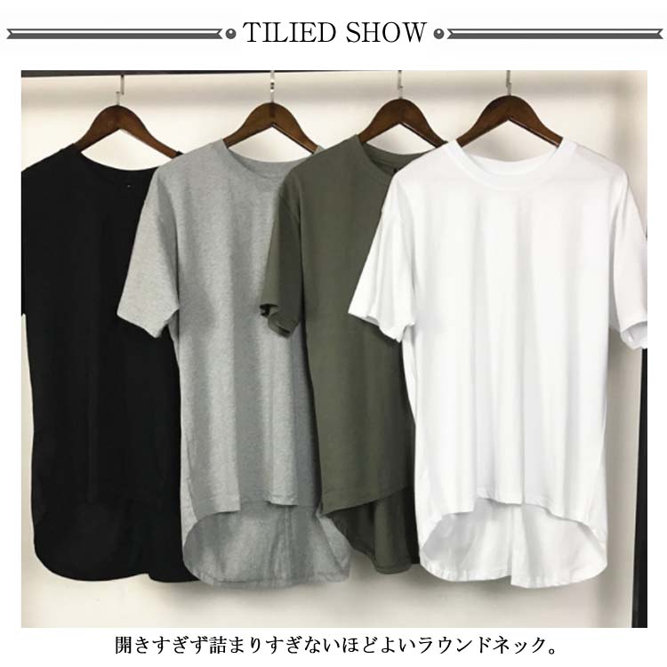前後で異なる丈感 無地 Tシャツ メンズ Uネック Tシャツ トップス 半袖Tシャツ クールネック ストリート 半袖 Tシャツ ゆったり プルオーバー カットソー 夏男 春 夏 夏服 夏物