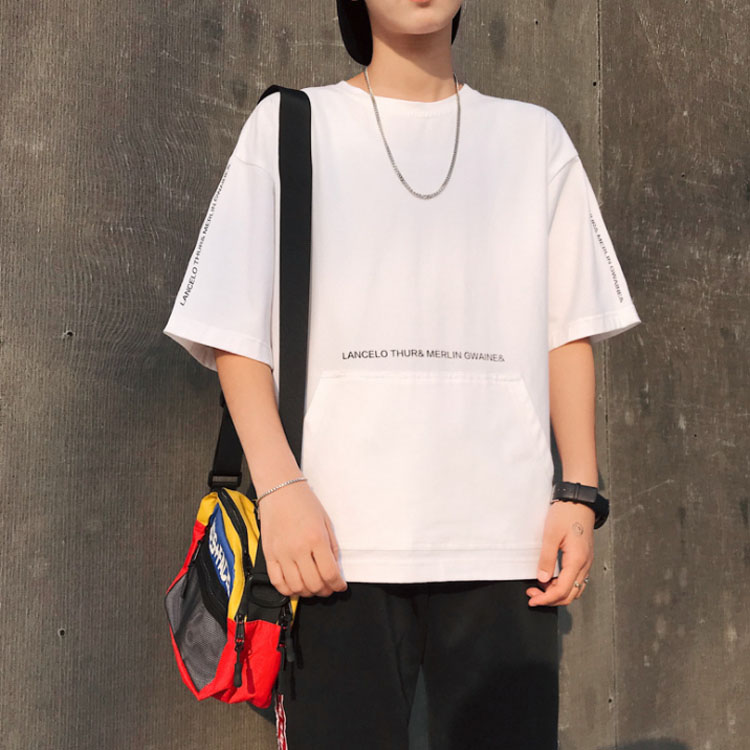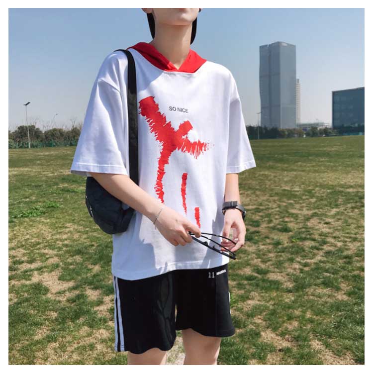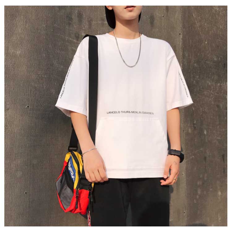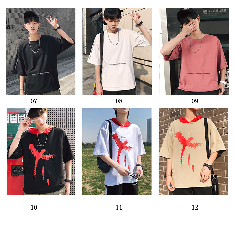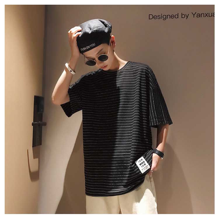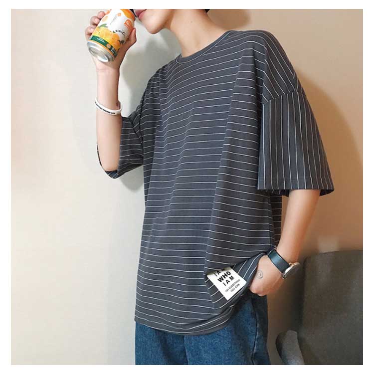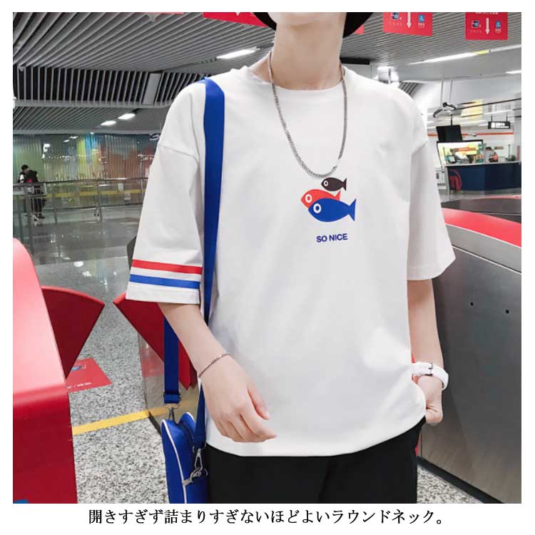 Tシャツ メンズ 半袖Tシャツ 5分袖 Tシャツ Uネック 英文字 ボーダー柄 Tシャツ 半袖 プルオーバーパーカー プルオーバーパーカ トップス クールネック ストリート ゆったり 夏男 春 夏 夏服 夏物