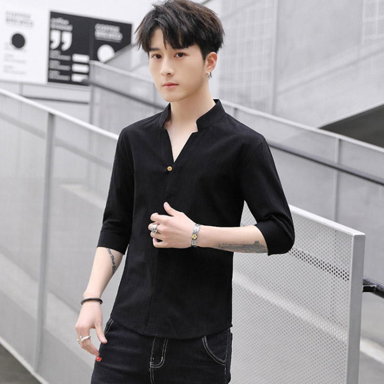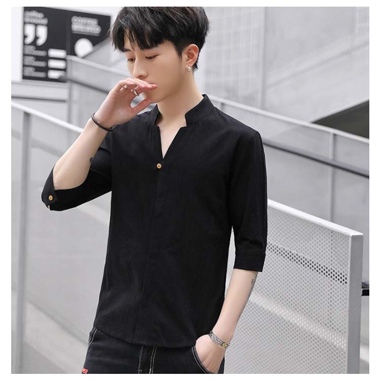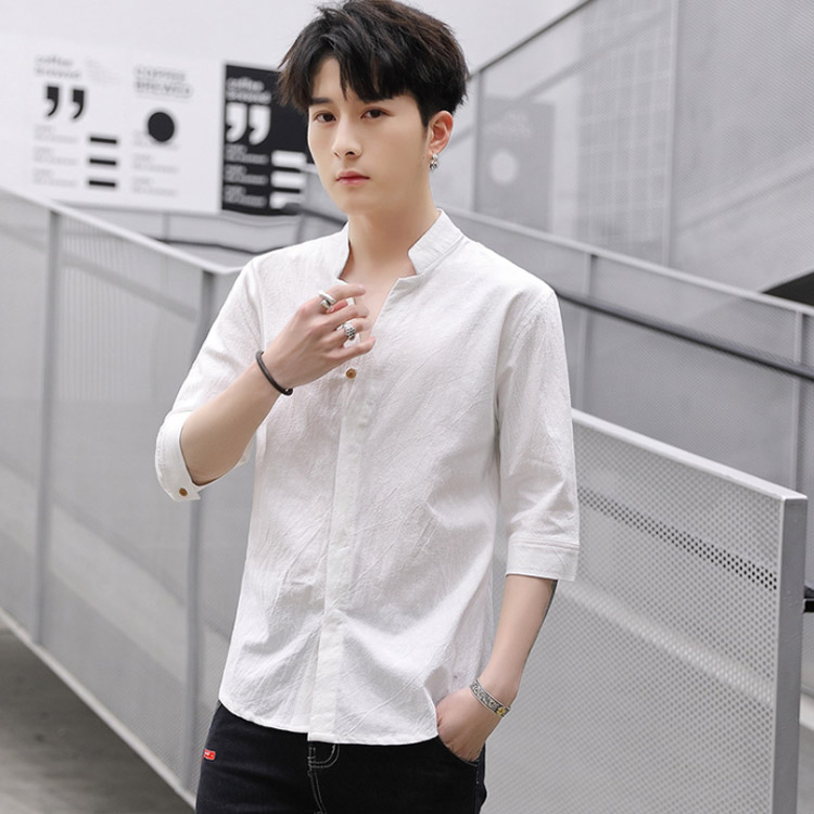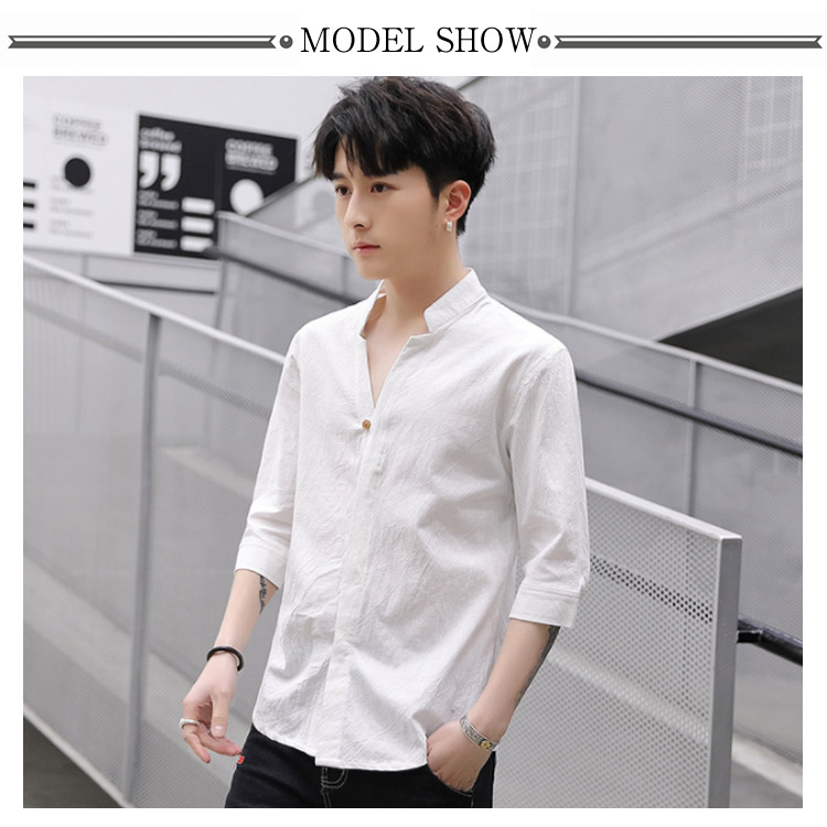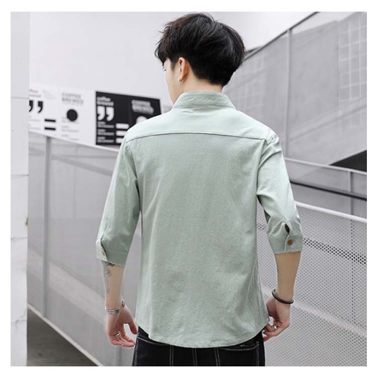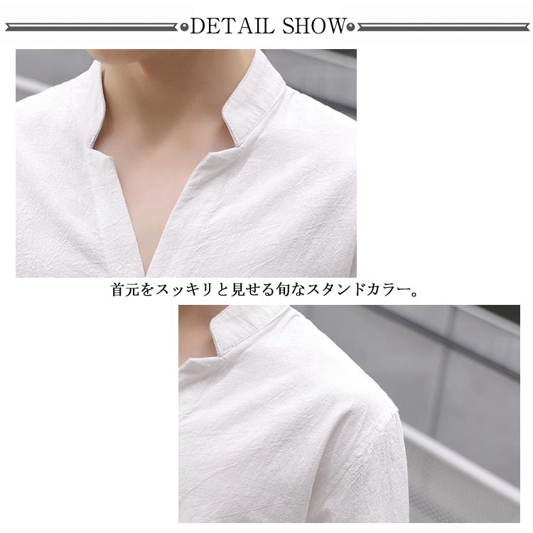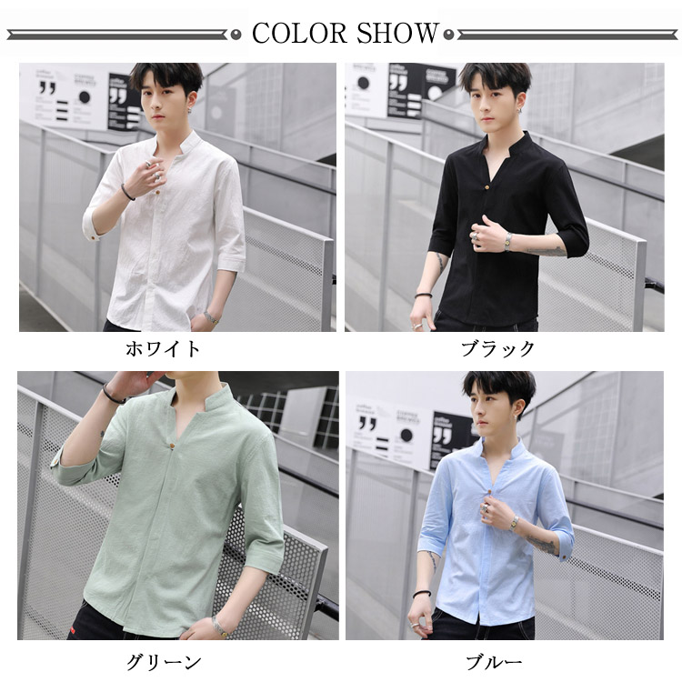 シャツ スタンドカラー シャツ 7分袖 メンズ 薄手 シャツ 無地 和風 立ち襟 バンドカラー シャツ カジュアル 春夏 春物