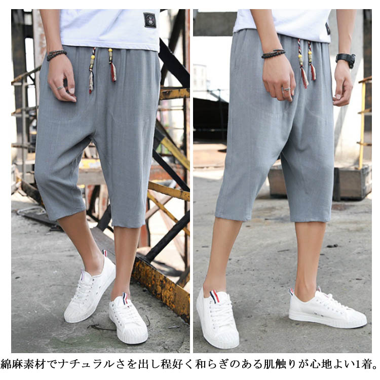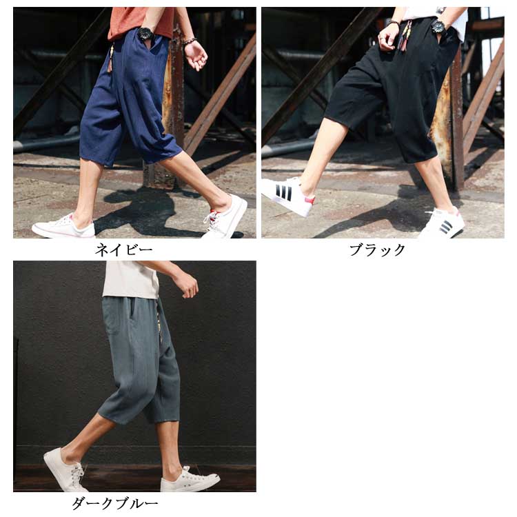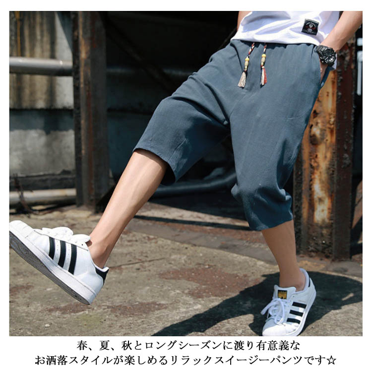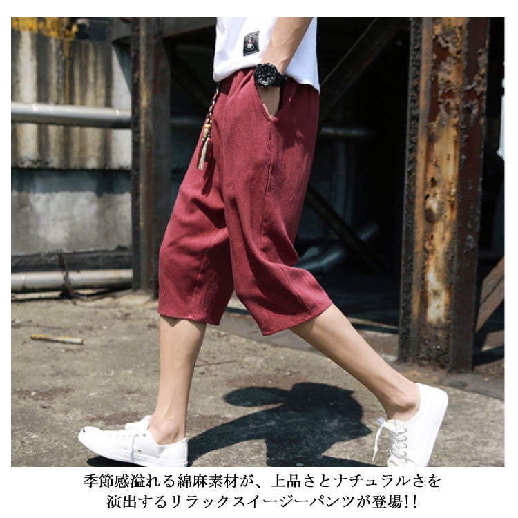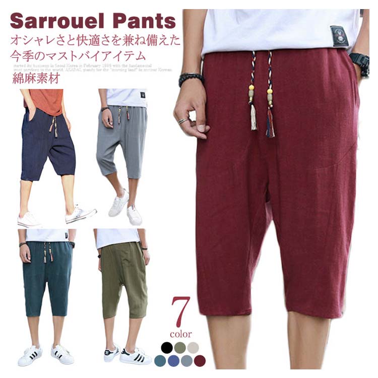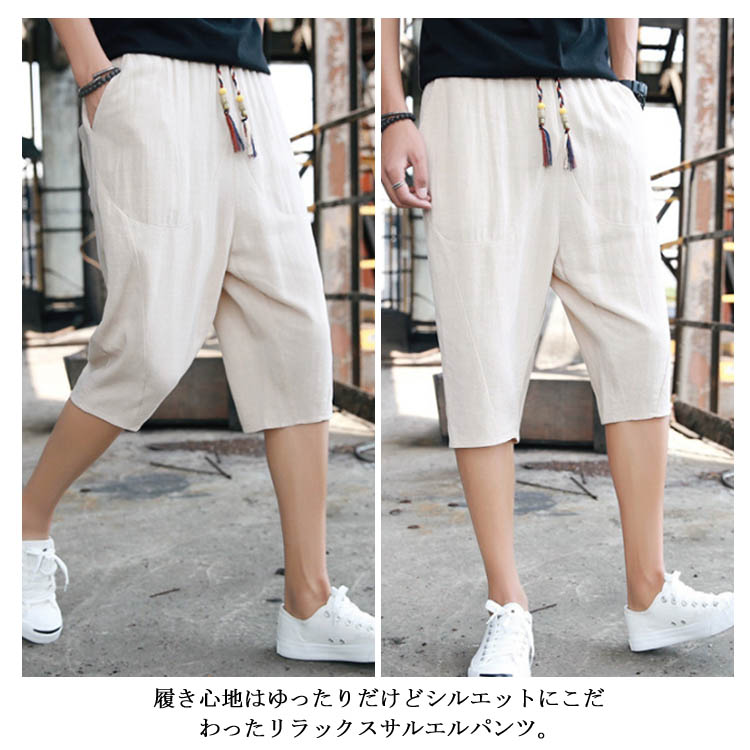 7分丈 パンツ リネンパンツ サルエルパンツ 綿麻 パンツ メンズ リネン パンツ ロングパンツ ワイドパンツ クロップドパンツ リラックス パンツ イージーパンツ リラックス